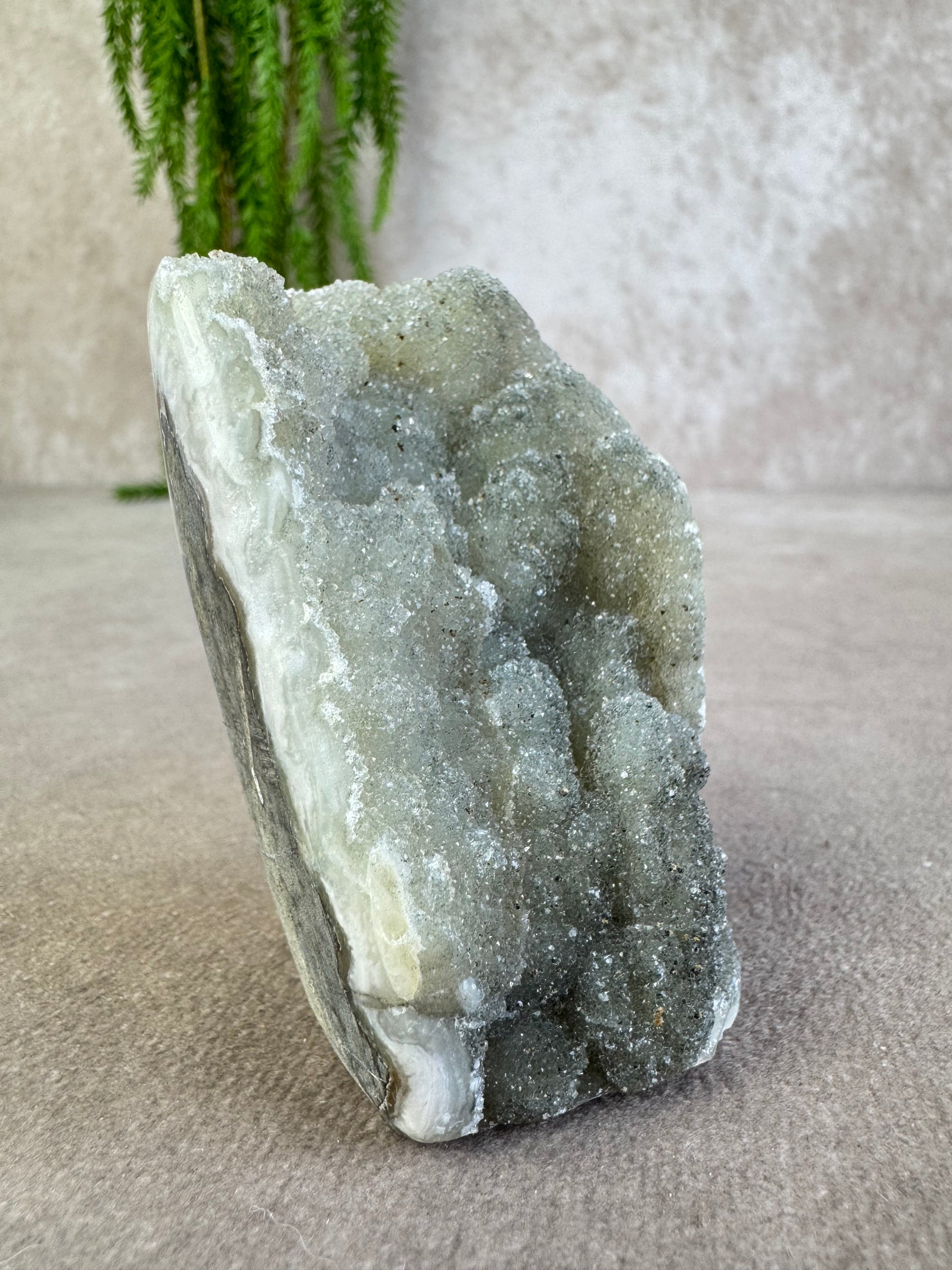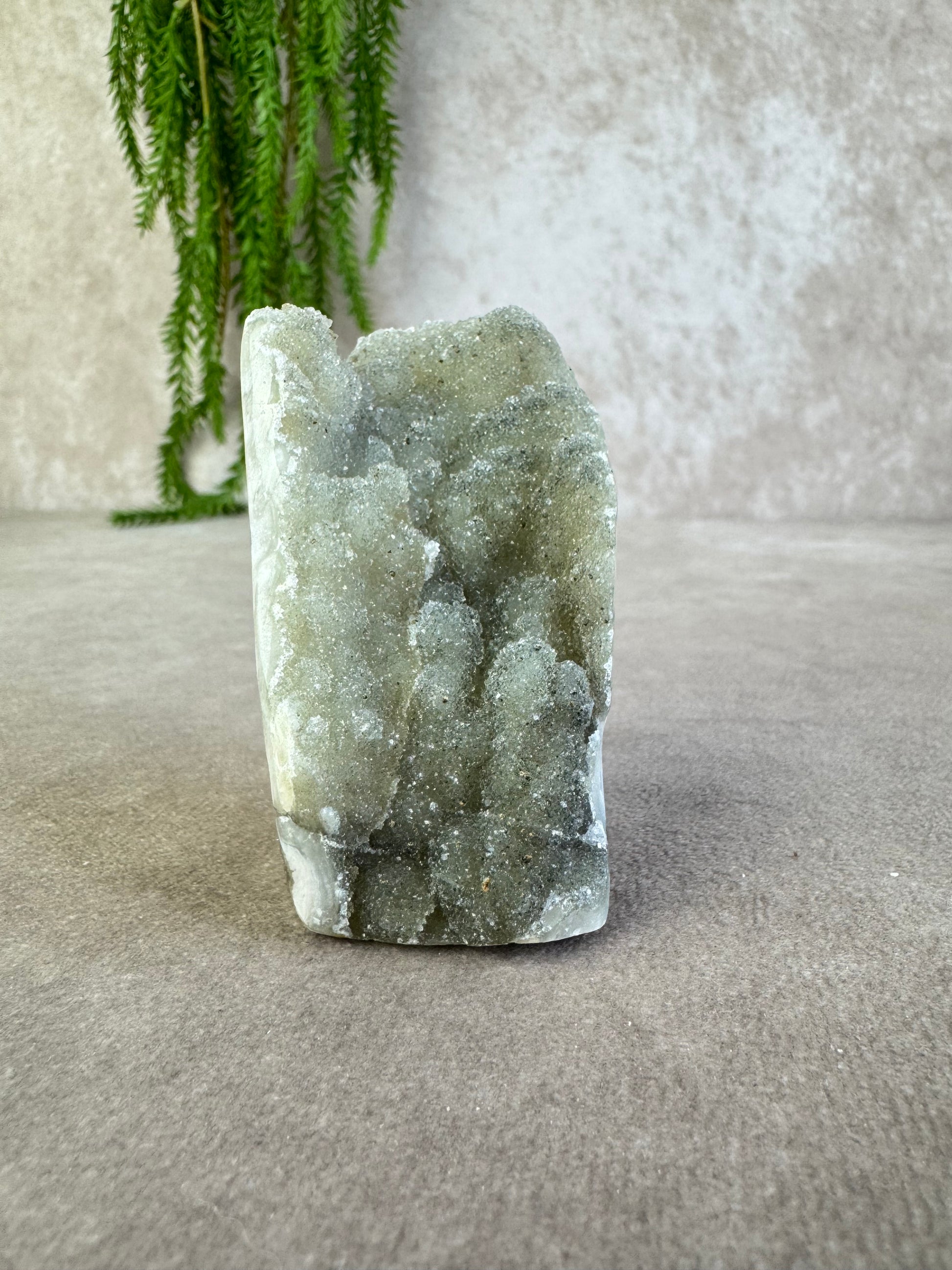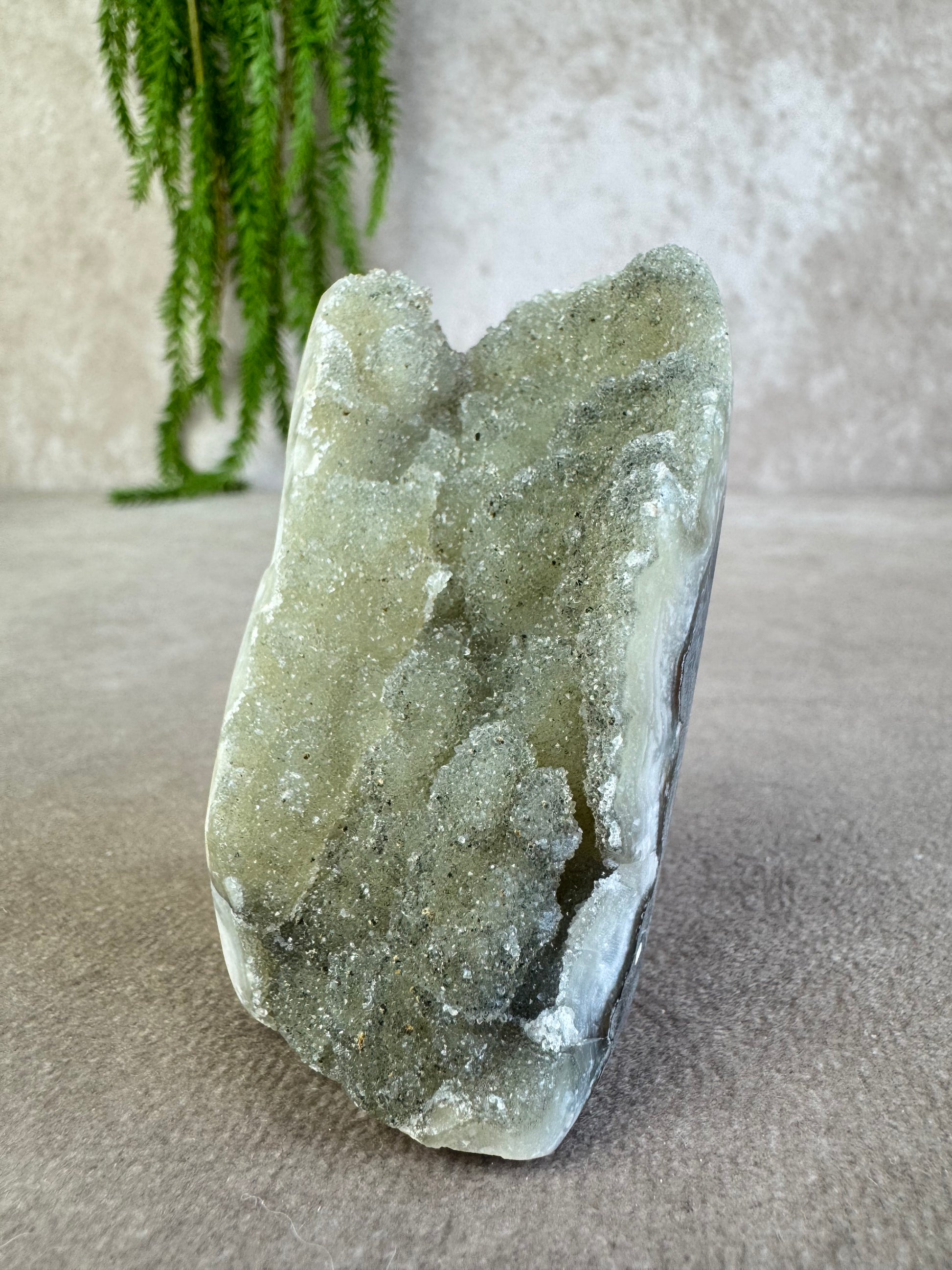 Amethist staat bekend om zijn kalmerende en zuiverende werking. De groenige kleurschakering voegt daar een extra gevoel van harmonie en balans aan toe, waardoor dit kristal zowel rustgevend als verfrissend aanvoelt.