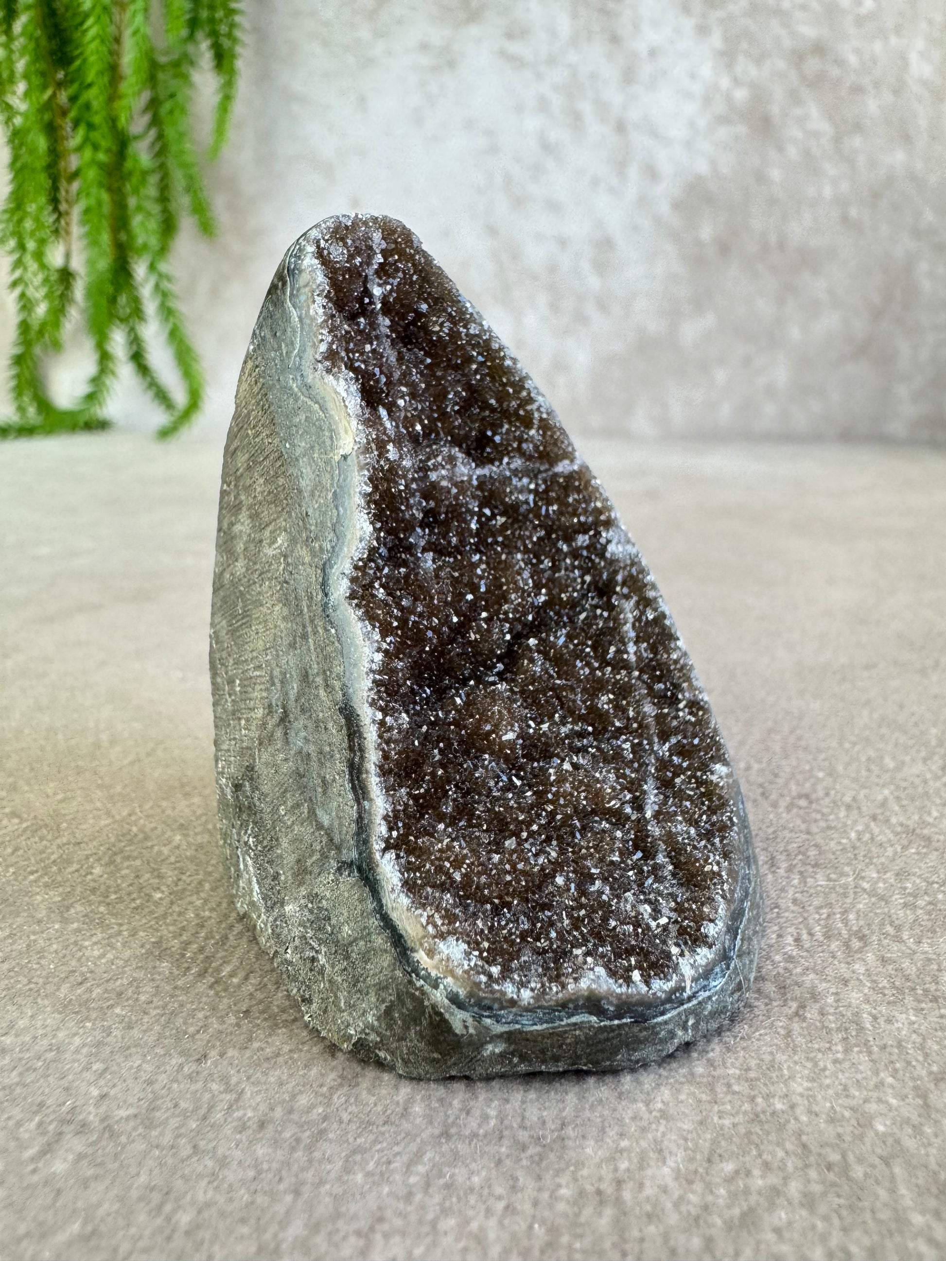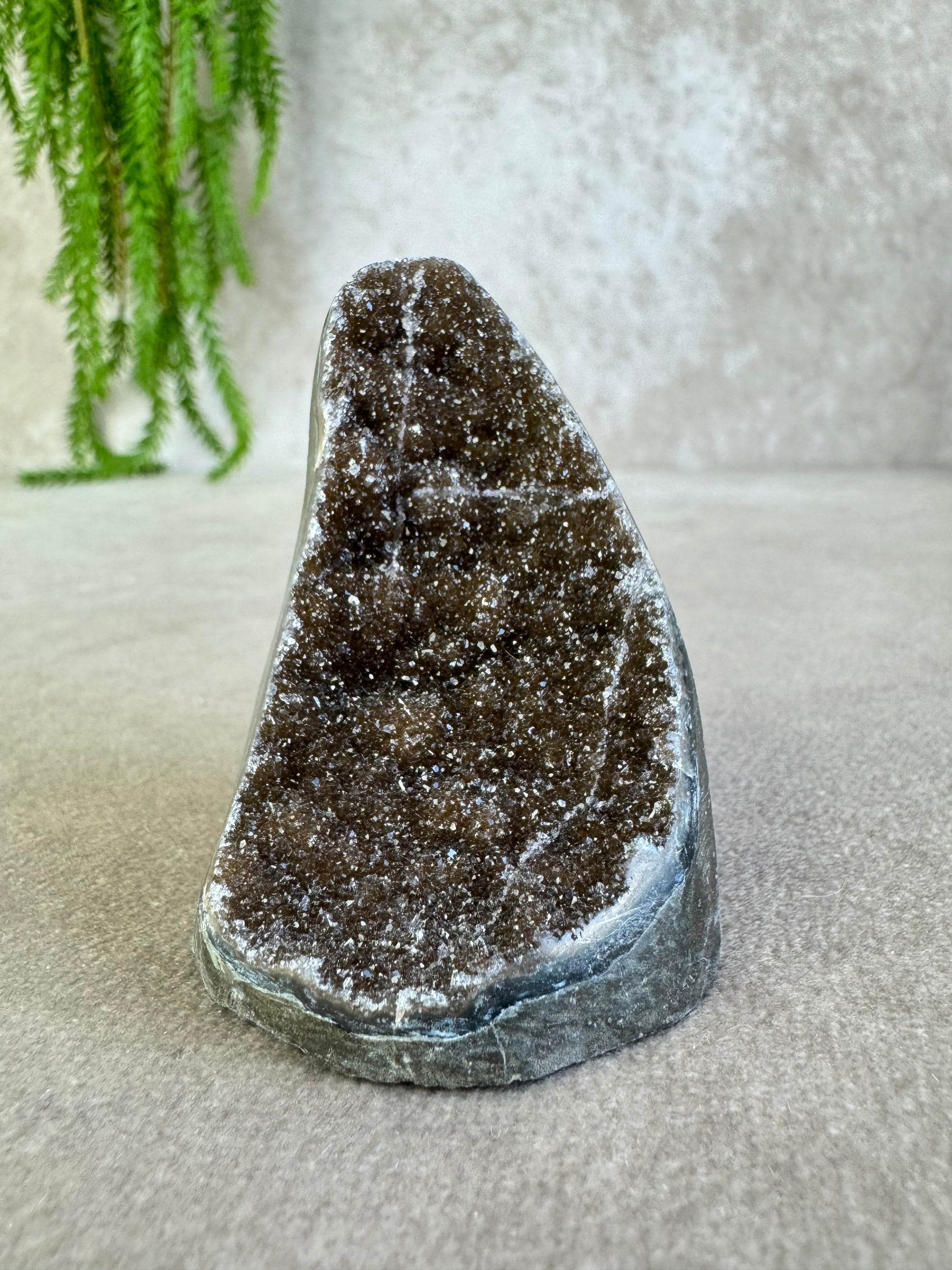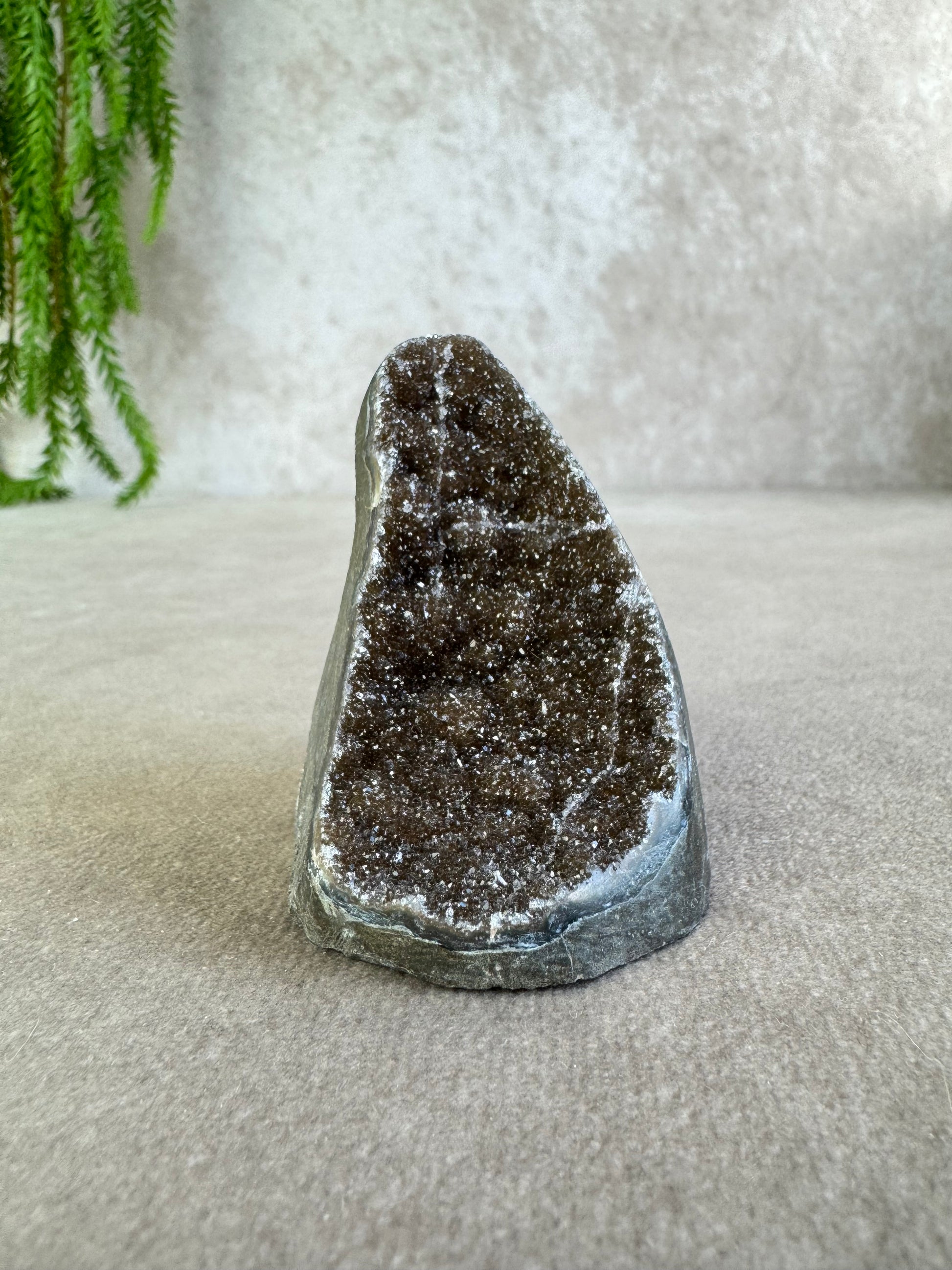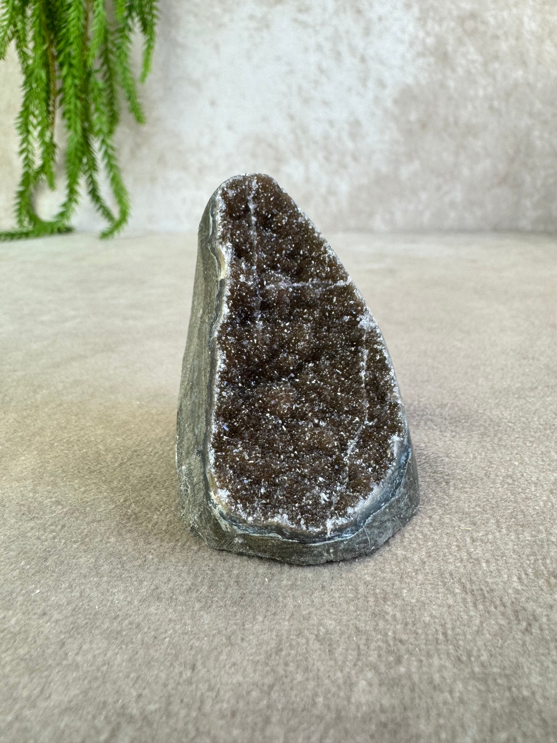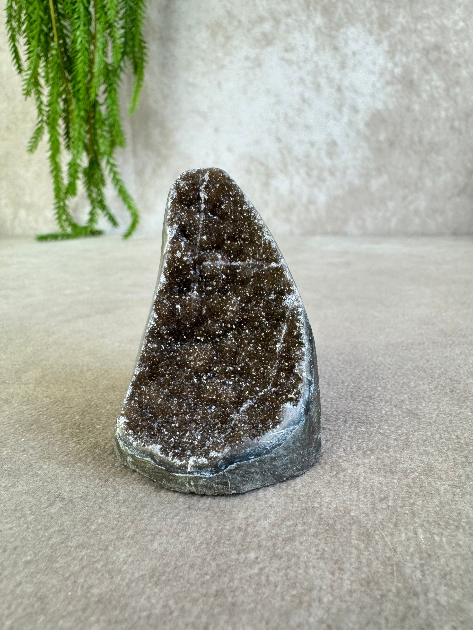 Amethist staat bekend om zijn rustgevende en zuiverende werking. De bruine kleurnuances voegen daar een aardende energie aan toe, waardoor dit kristal een harmonieuze combinatie van kracht en rust uitstraalt.
