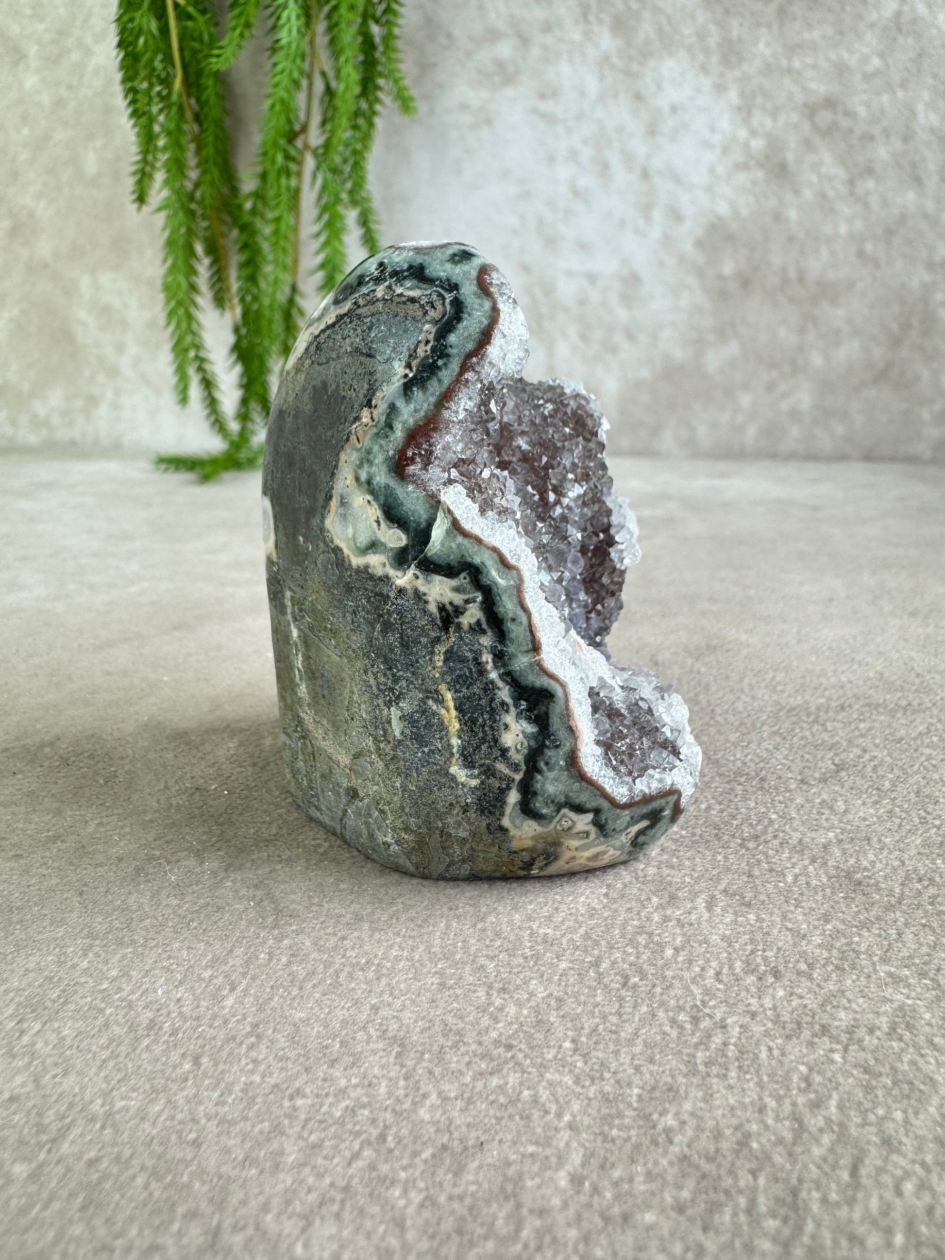 Amethist staat bekend om zijn rustgevende en zuiverende werking, ideaal voor ontspanning, meditatie en het creëren van een kalme sfeer in huis.