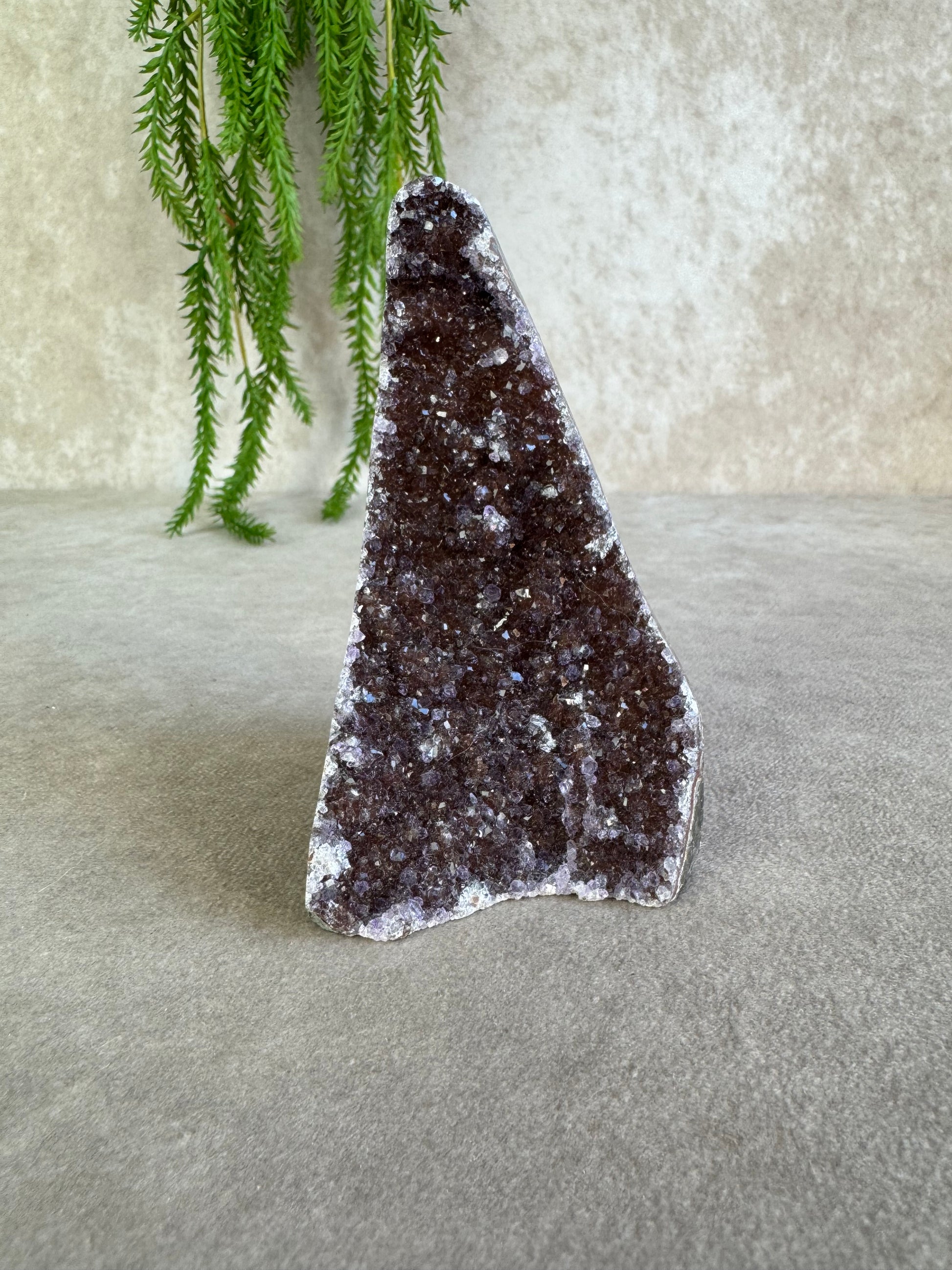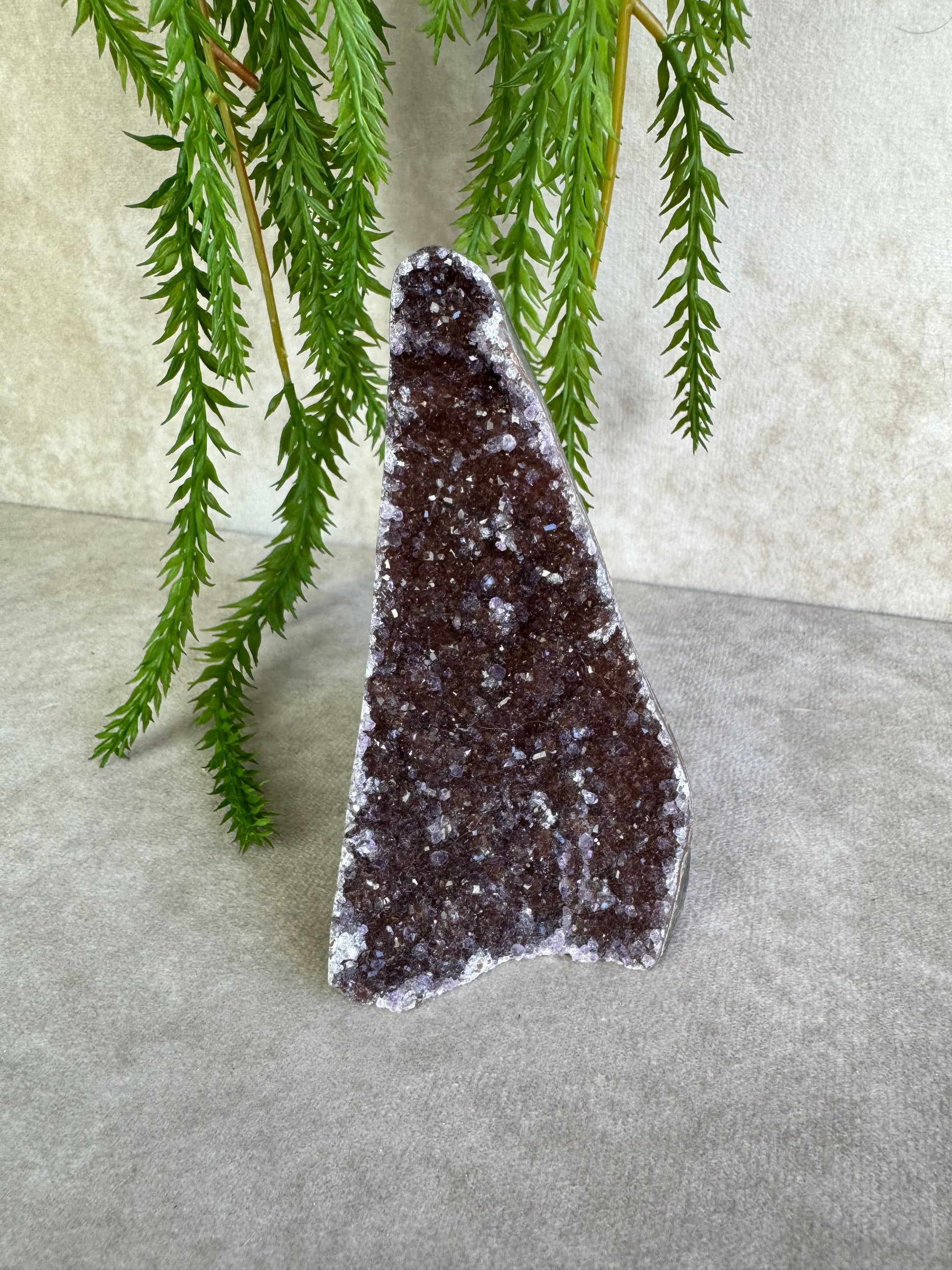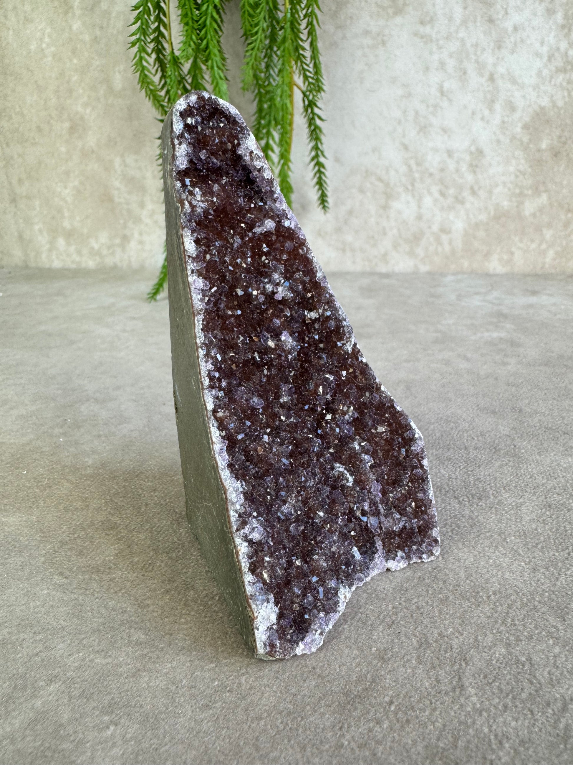 Amethist staat bekend om zijn rustgevende en zuiverende werking. De rode schakeringen voegen daar een extra dimensie van kracht en vitaliteit aan toe, waardoor dit kristal zowel balans als energie uitstraalt.