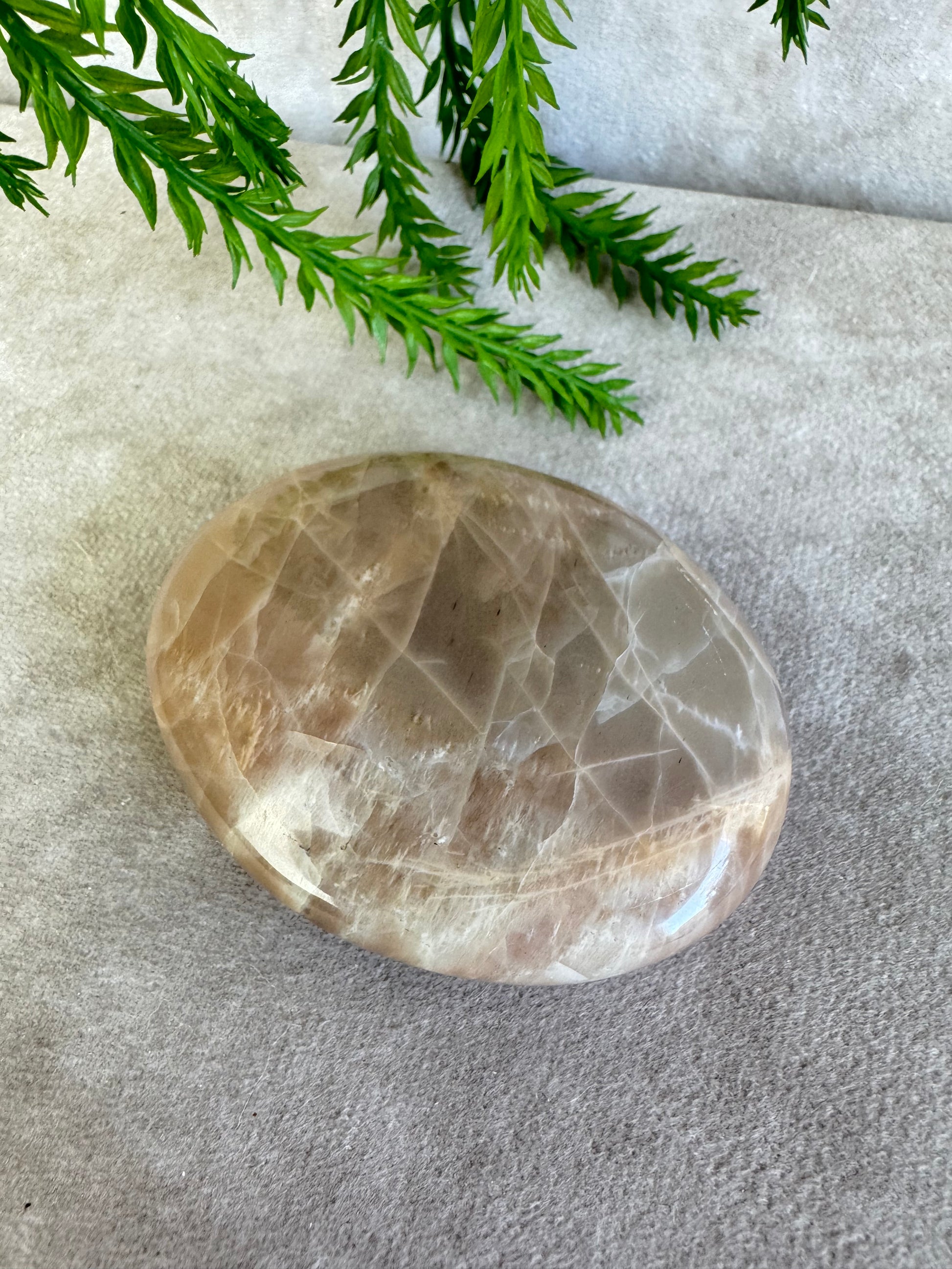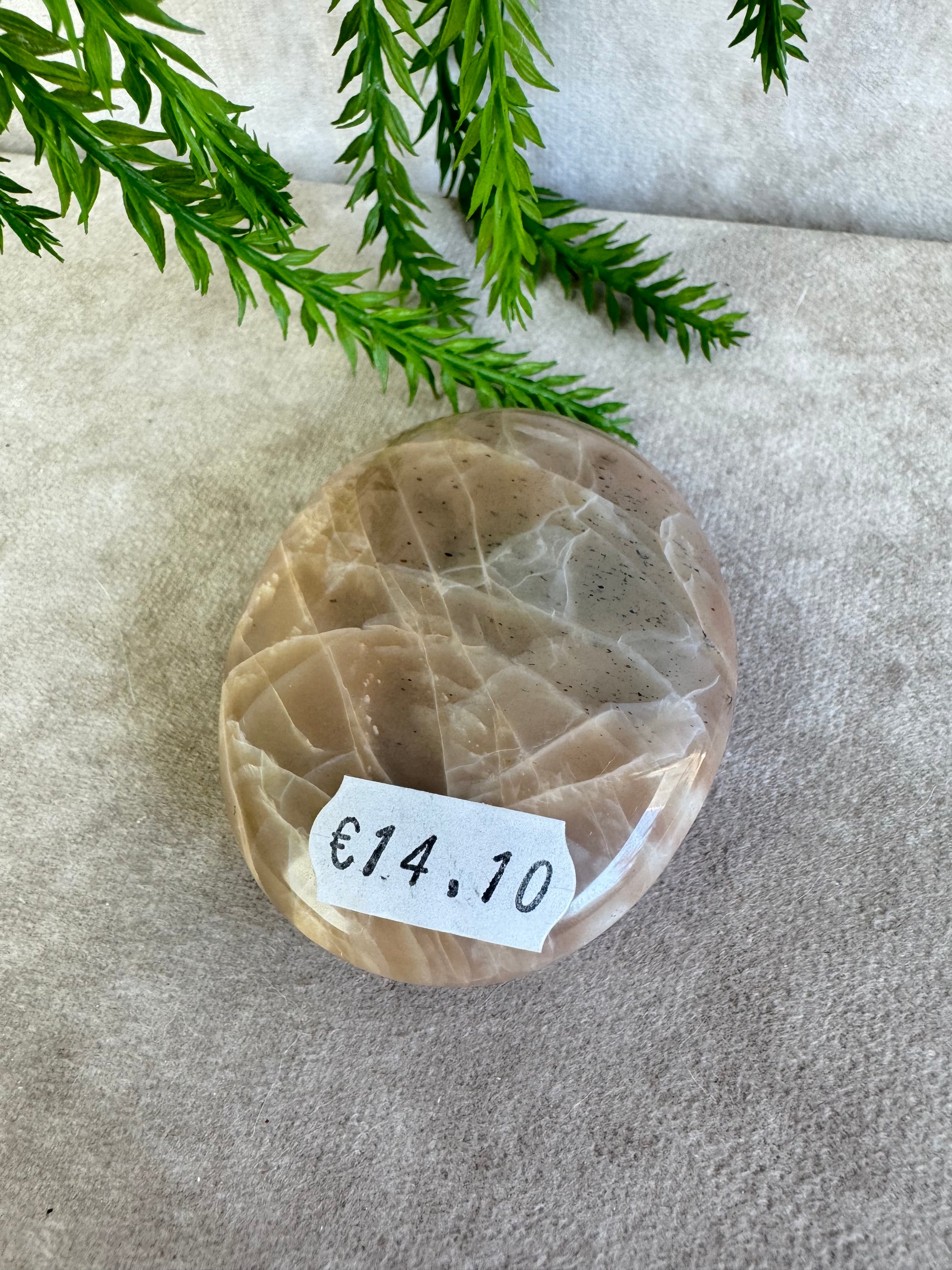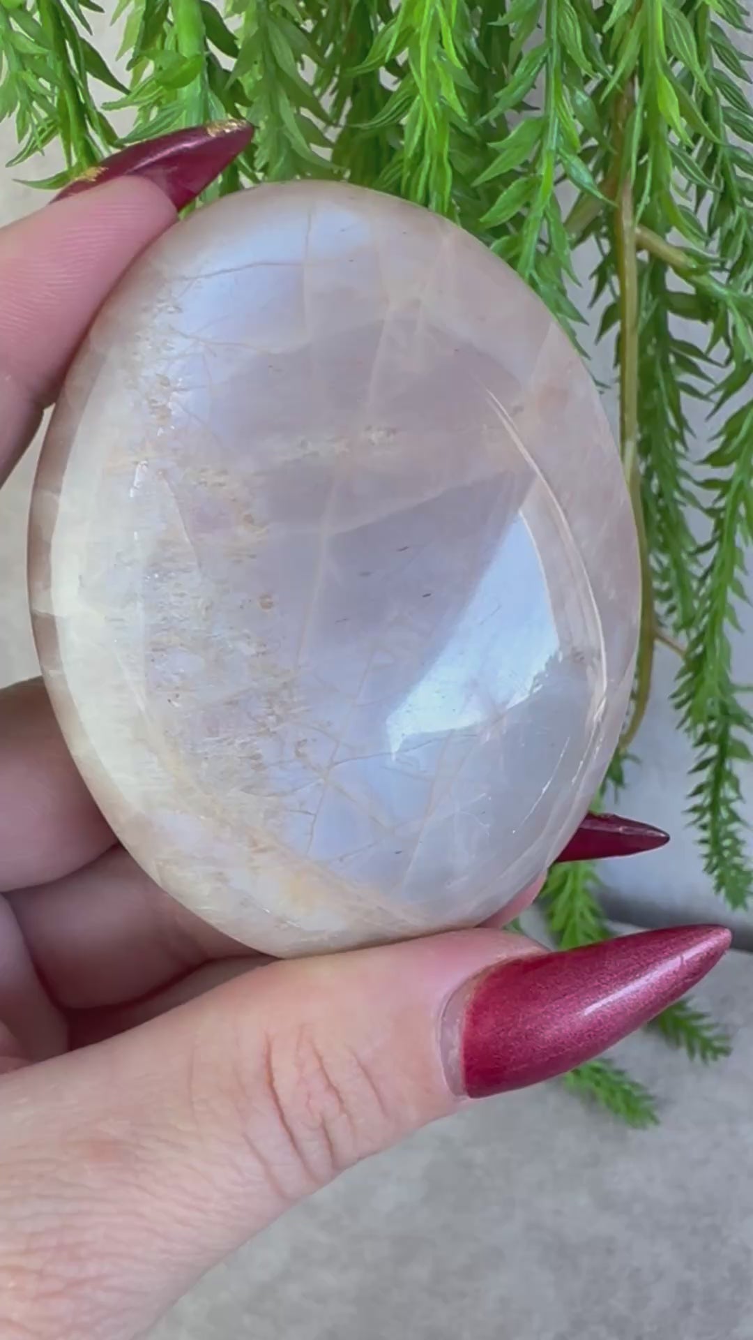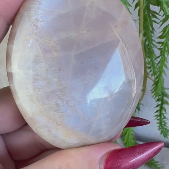 Perzik maansteen staat bekend om zijn kalmerende en liefdevolle energie. Het ondersteunt emotionele balans, intuïtie en een gevoel van zachtheid en warmte.