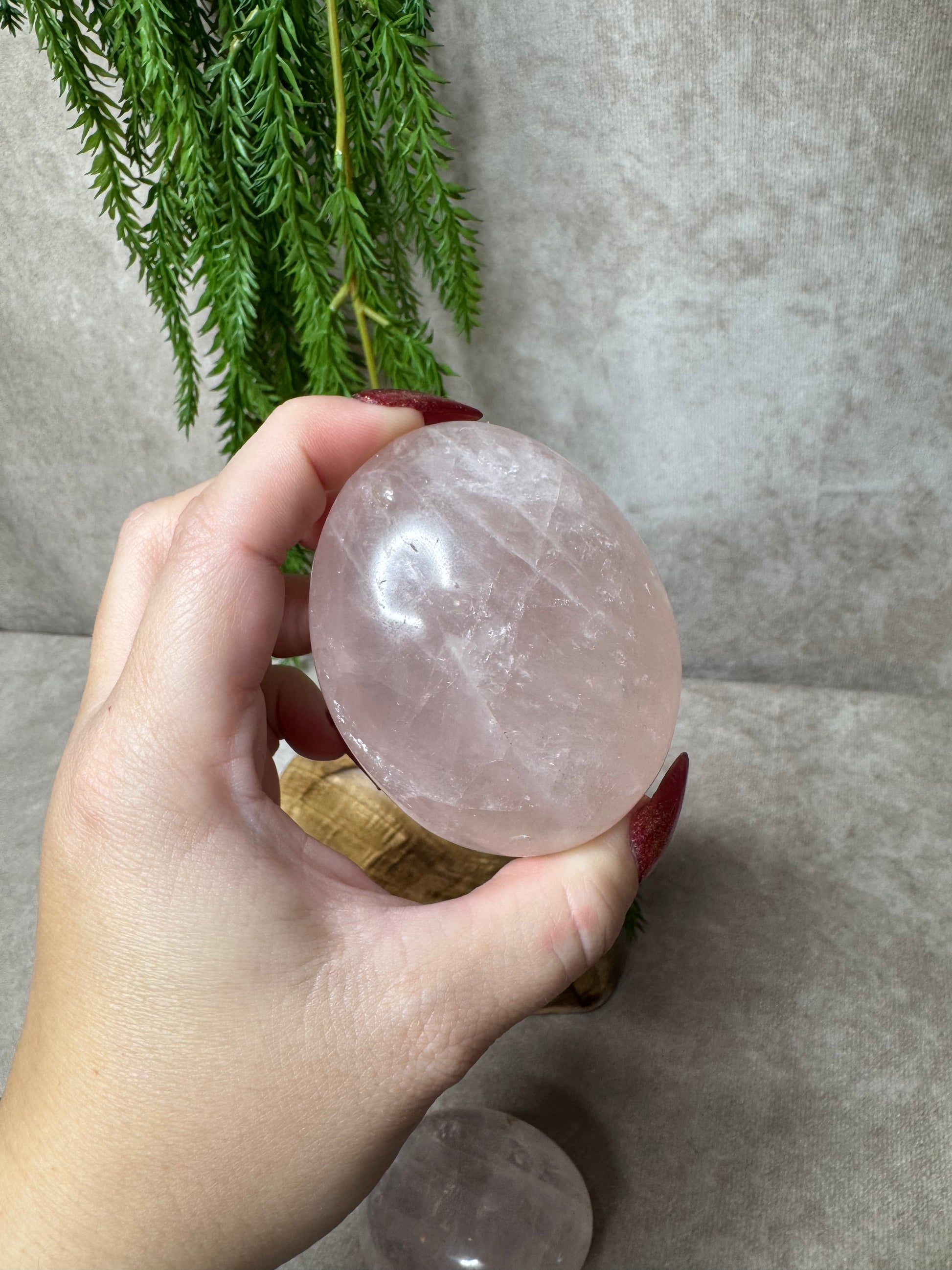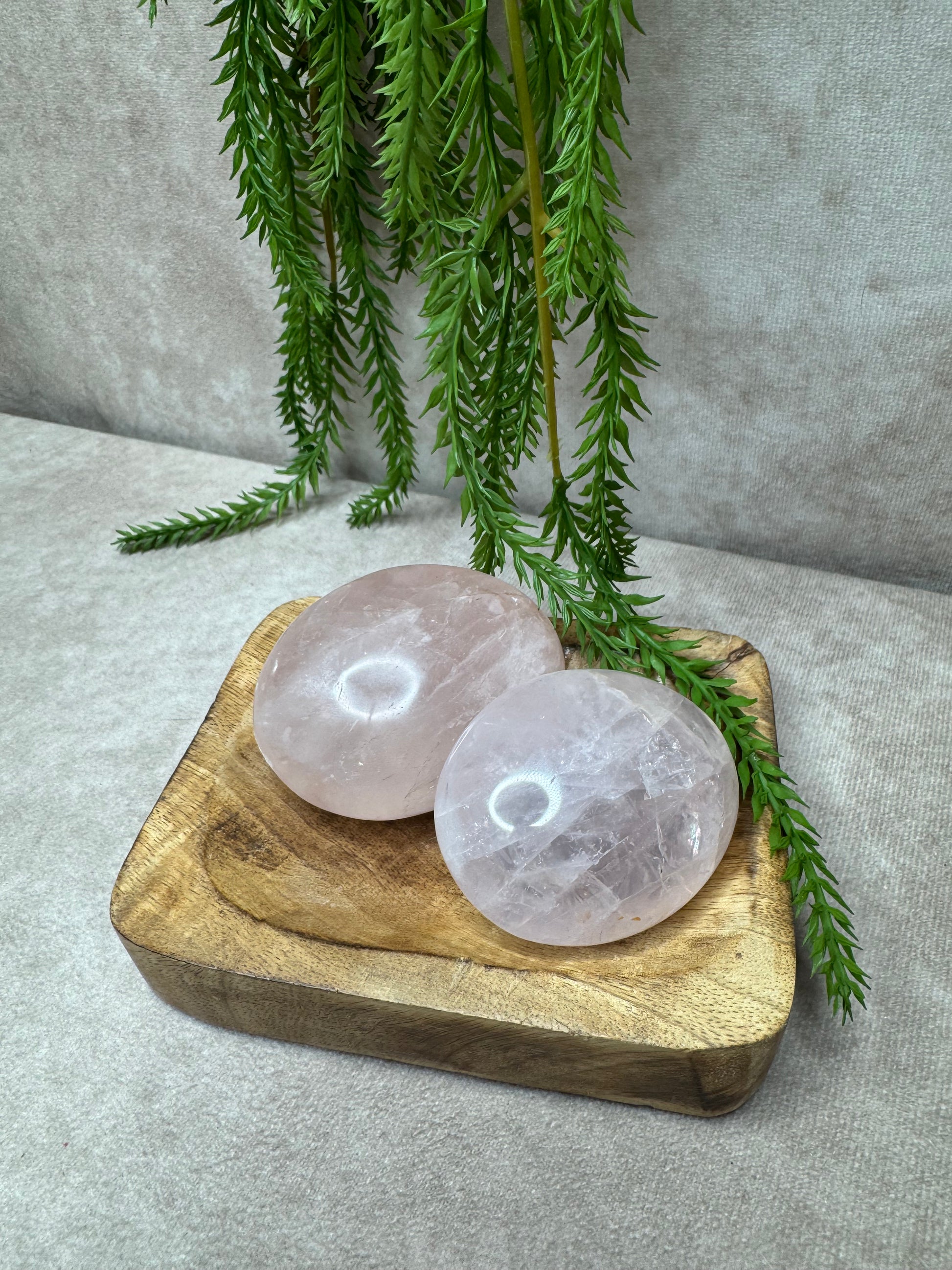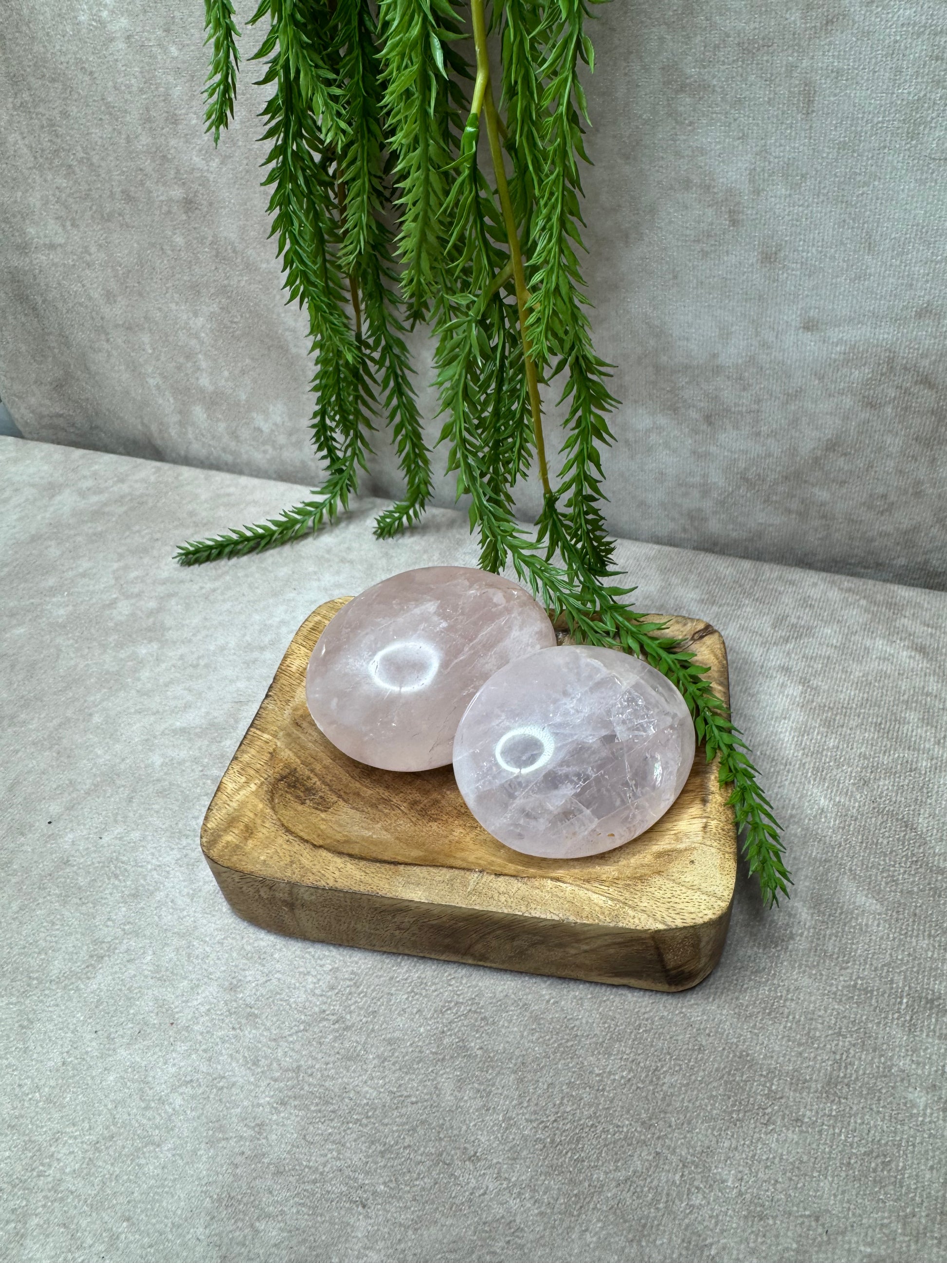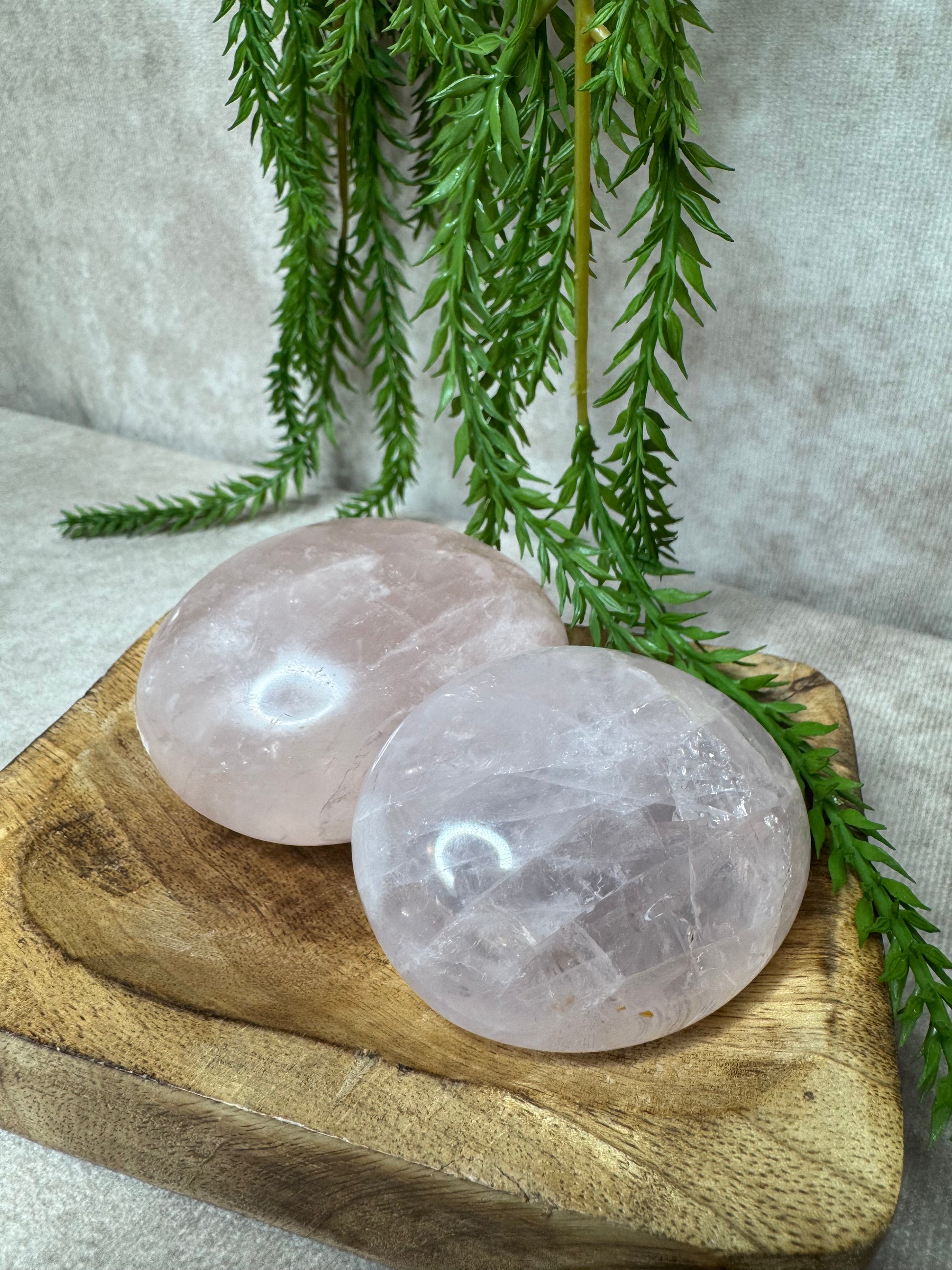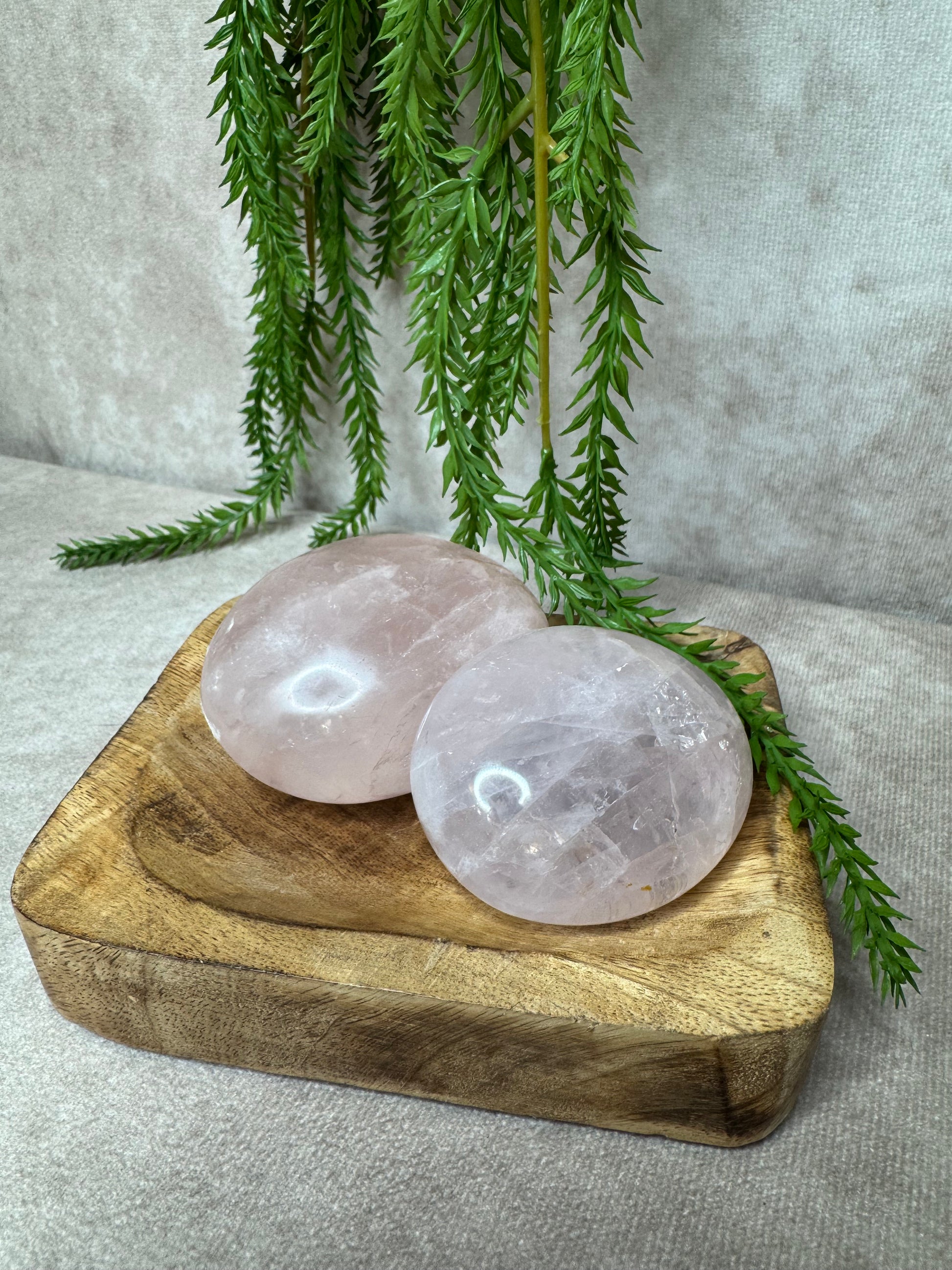 Deze hoge kwaliteit rozenkwarts handstenen liggen heerlijk in de hand, ideaal voor meditatie of ontspanning. Rozenkwarts staat symbool voor liefde en heeft een sterk kalmerende werking. Je ontvangt een soortgelijke steen, elk uniek in zijn vorm en energie.