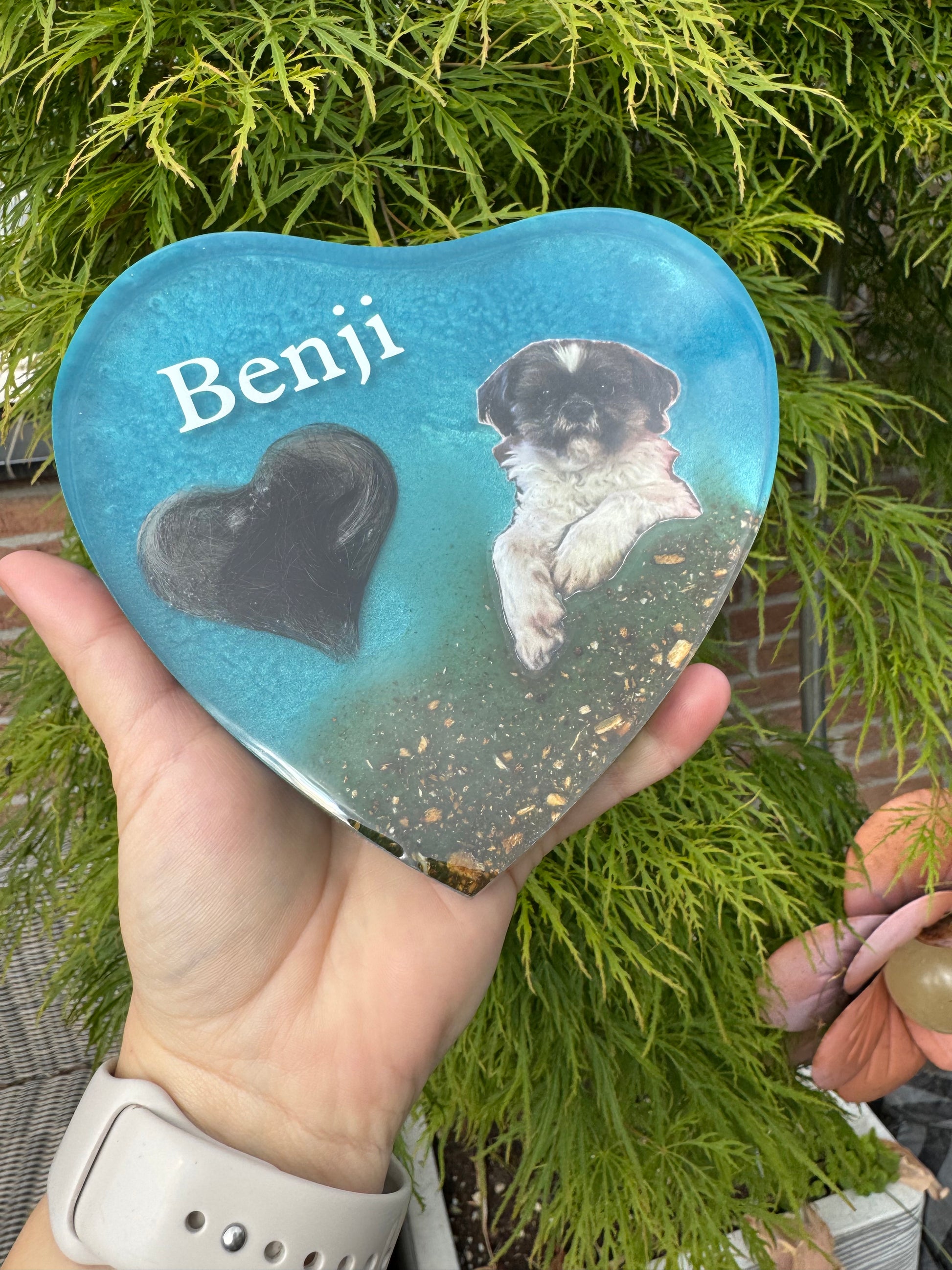 Dit grote hart van 17,5 cm hoog en 15 cm breed biedt een prachtige plek voor het bewaren van bijzondere elementen zoals foto's, haar, as, navelstreng of een zwangerschapstest. Ideaal als geboortecadeau. Het hart is volledig aan te passen qua kleur of glitter. Bekijk de kleuren onder het kopje kleur keuze. Na bestelling nemen wij binnen drie werkdagen contact op om de wensen te bespreken.