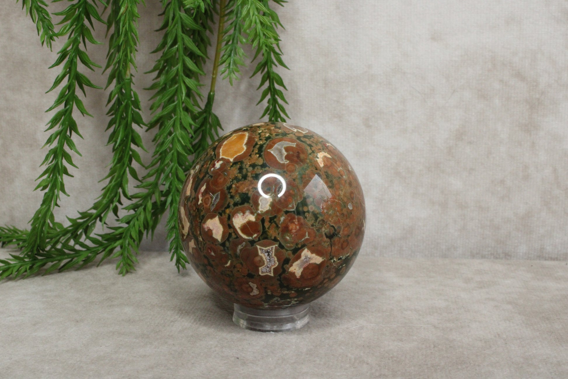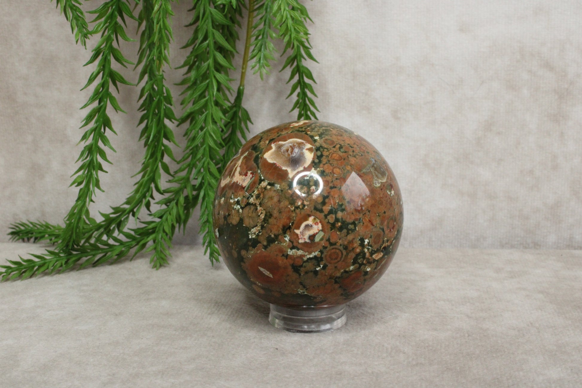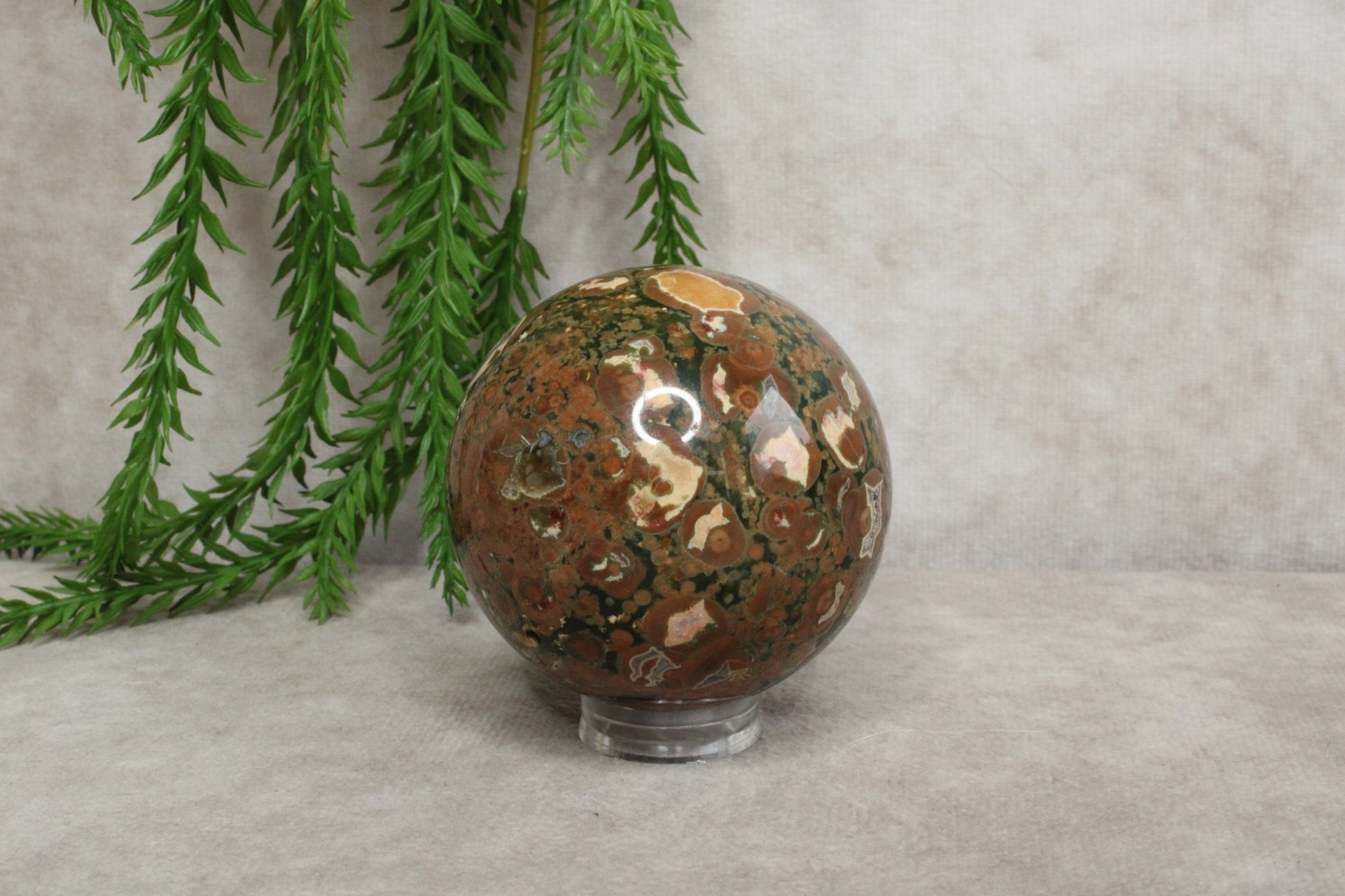 Deze prachtige jaspis bol van 6 cm en een gewicht van 276 gram laat de natuurlijke schoonheid van de steen goed zien. De warme kleuren en unieke patronen maken elke bol anders en geven hem een rustige, aardse uitstraling. Het is een stijlvol object dat mooi staat in huis of als onderdeel van een kristalcollectie.