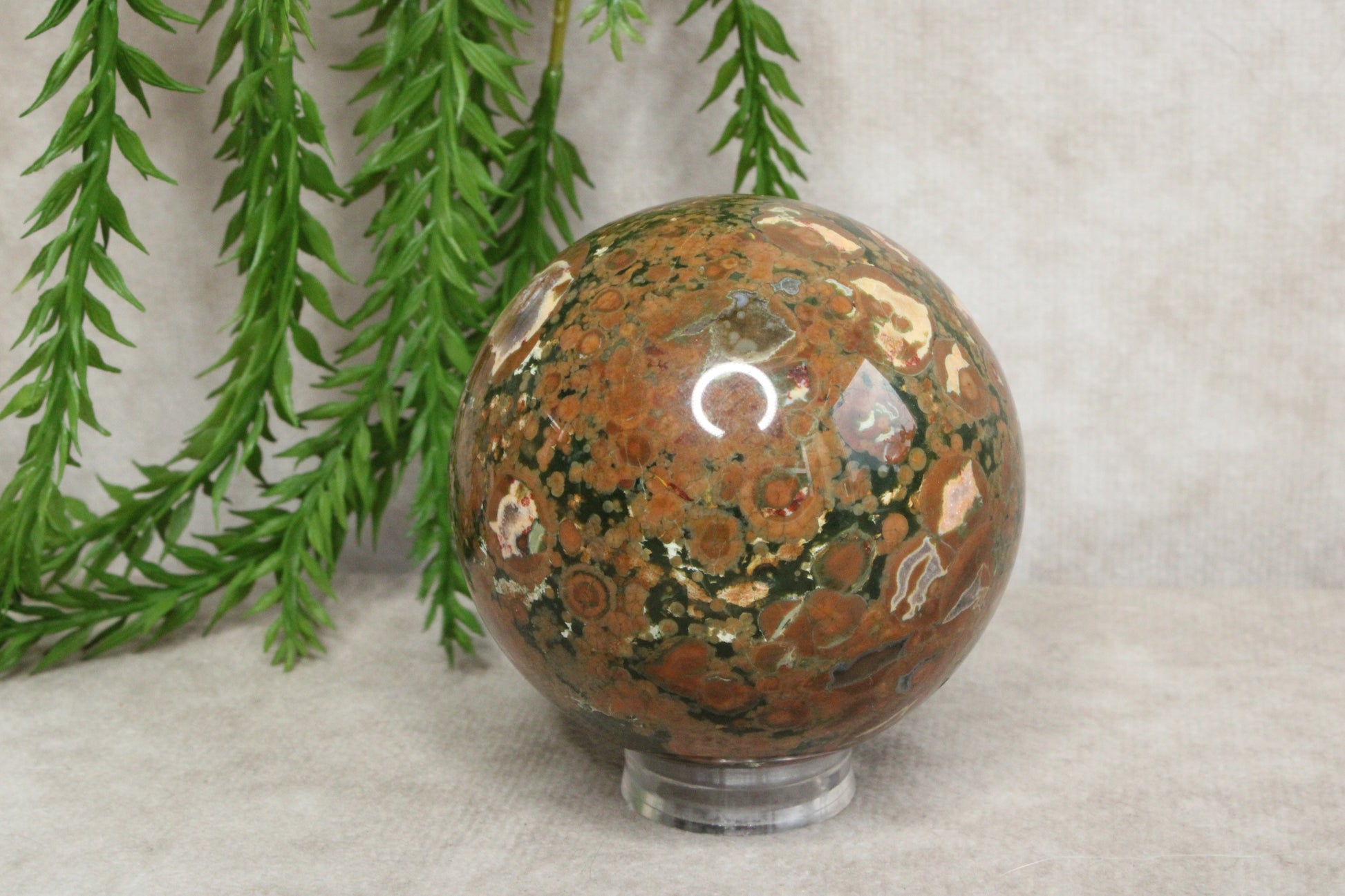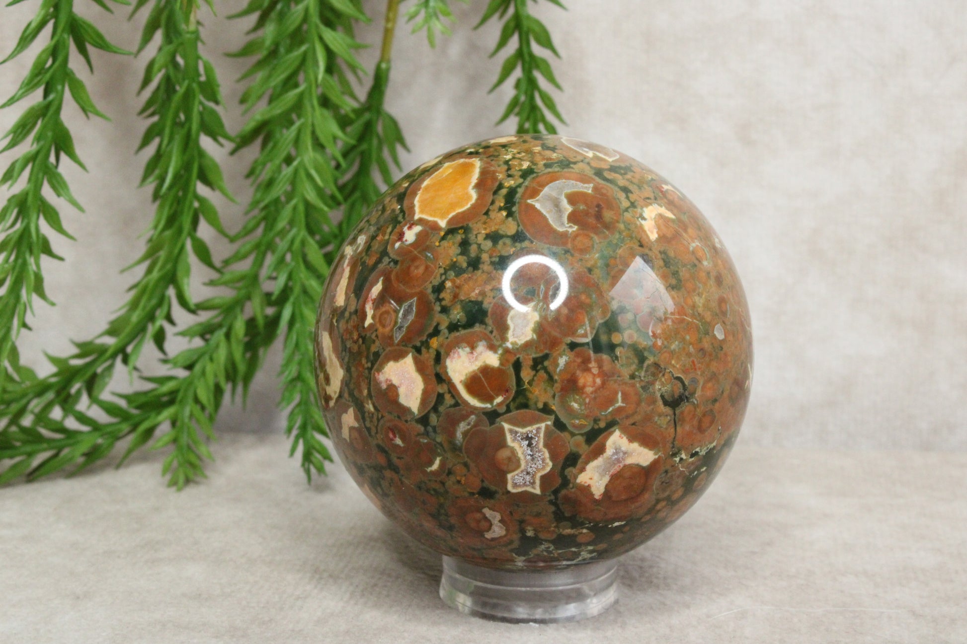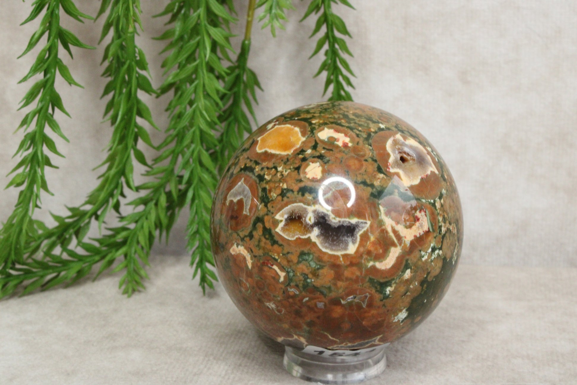 Deze prachtige jaspis bol van 6 cm en een gewicht van 276 gram laat de natuurlijke schoonheid van de steen goed zien. De warme kleuren en unieke patronen maken elke bol anders en geven hem een rustige, aardse uitstraling. Het is een stijlvol object dat mooi staat in huis of als onderdeel van een kristalcollectie.