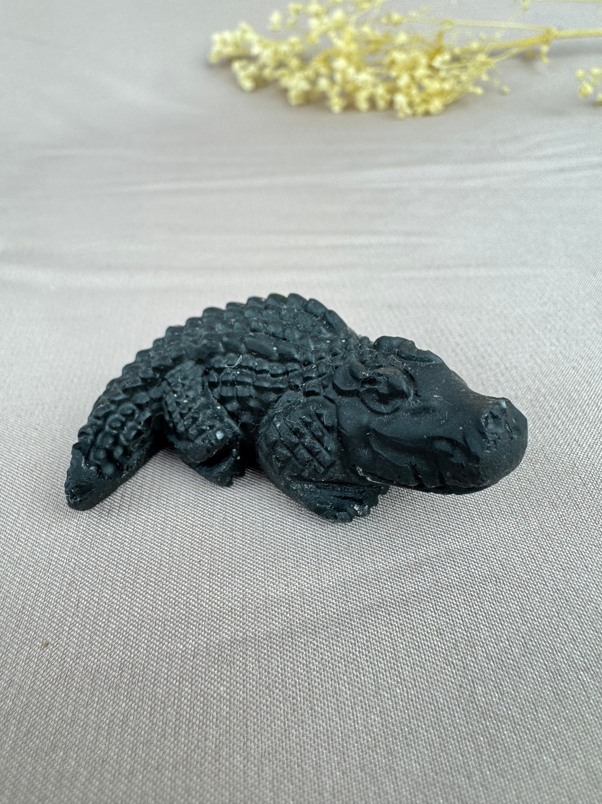 Deze stoere en gedetailleerd gesneden krokodil is gemaakt van natuurlijke edelsteen en vormt een bijzonder decoratief en symbolisch object. Elke krokodil is uniek in kleur en uitstraling, dankzij het gebruik van echte kristallen. Met een breedte van ongeveer 5 cm is dit een opvallend, maar handzaam beeldje dat in elke ruimte tot zijn recht komt.