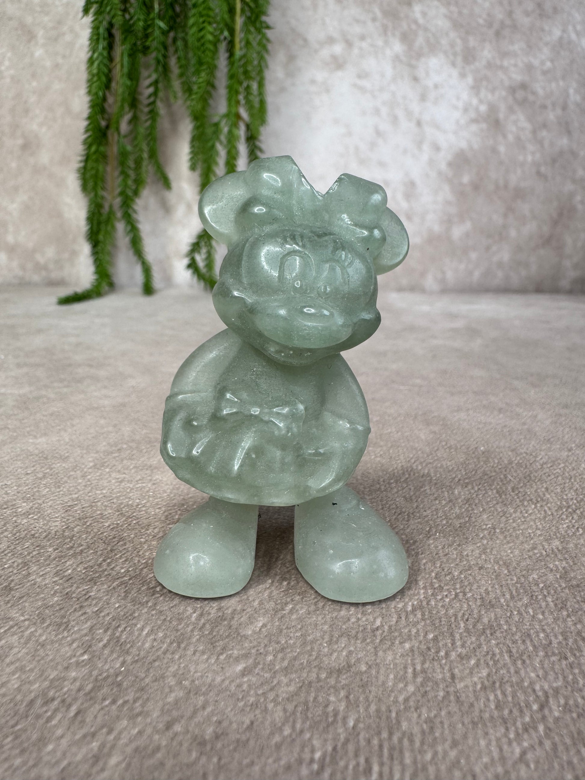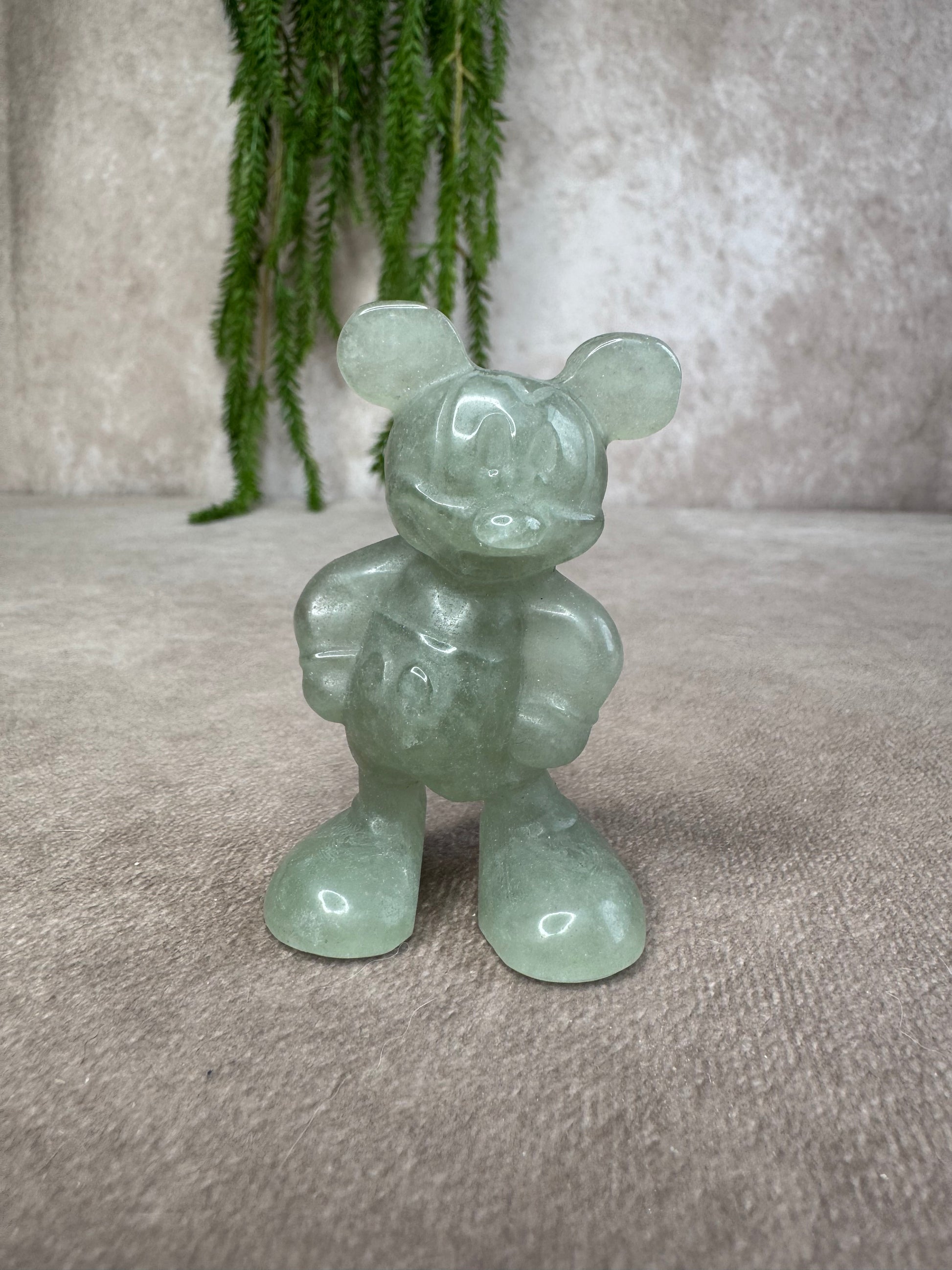 Deze schattige Mickey en Minnie beeldjes van aventurijn zijn met de hand gesneden uit natuurlijke steen en stralen een vrolijke, speelse energie uit.