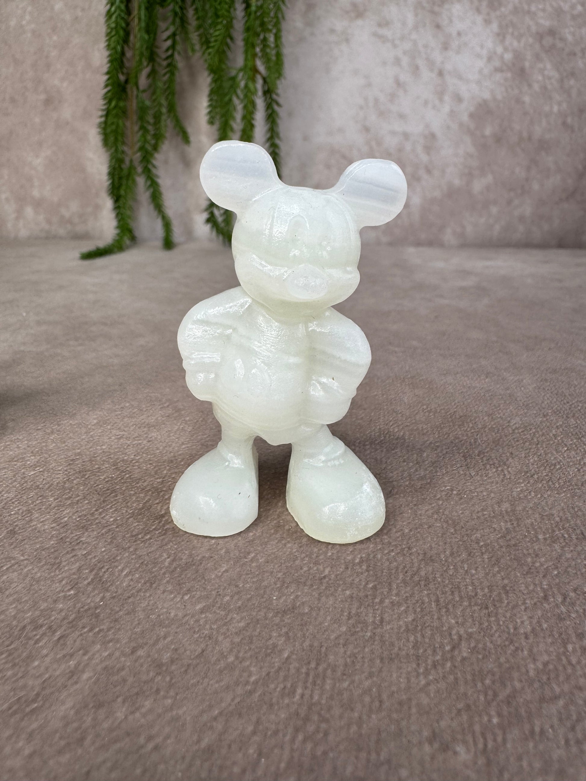 Deze vrolijke Mickey en Minnie beeldjes van calciet zijn met de hand gesneden uit natuurlijke steen en stralen warmte, positiviteit en levensvreugde uit.