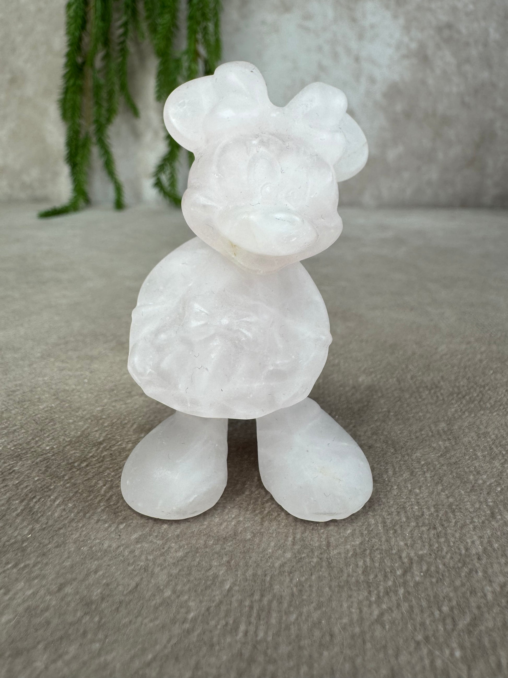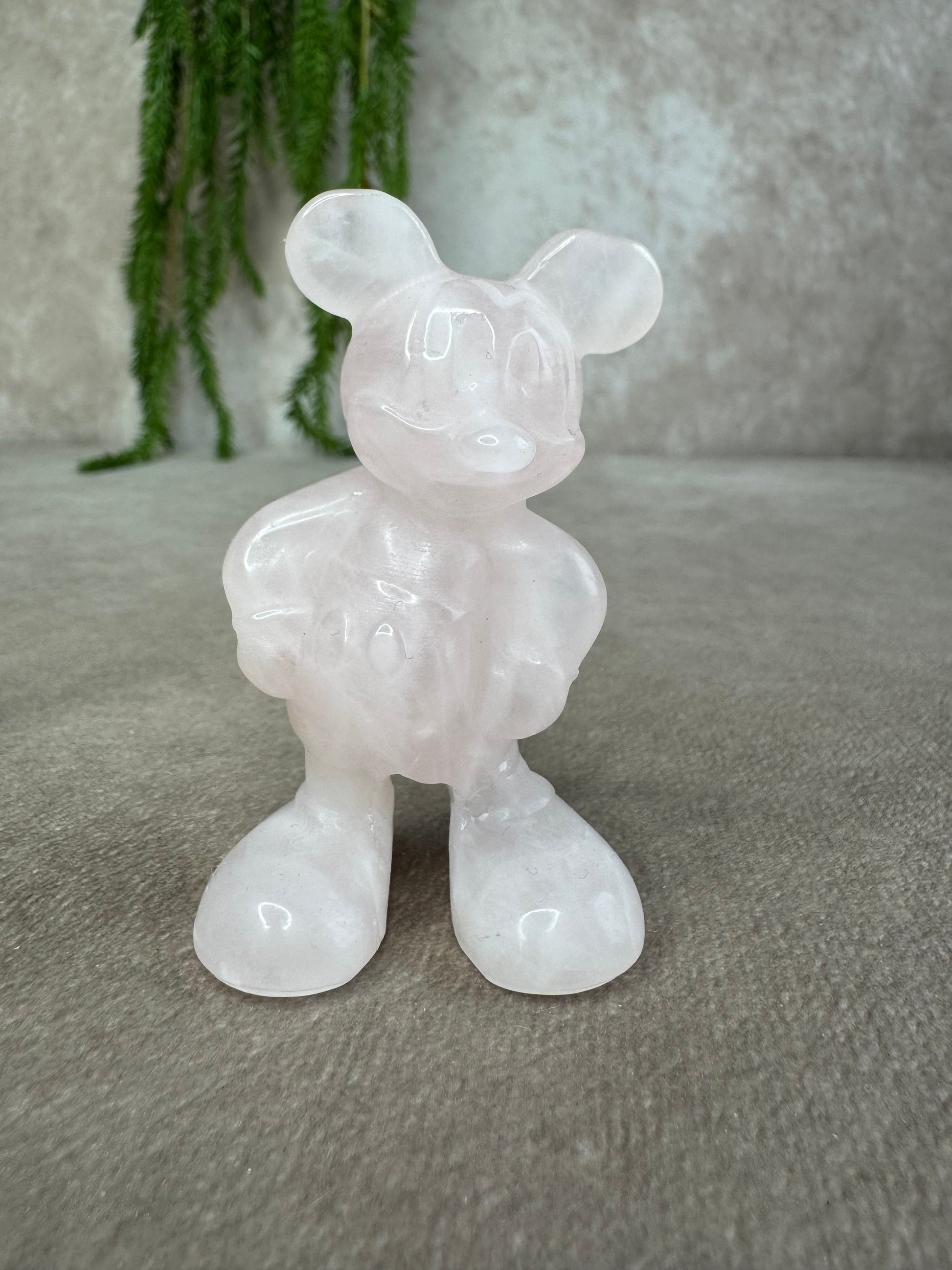 Deze liefdevolle Mickey en Minnie beeldjes van rozenkwarts zijn met de hand gesneden uit natuurlijke steen en stralen zachtheid, liefde en harmonie uit.