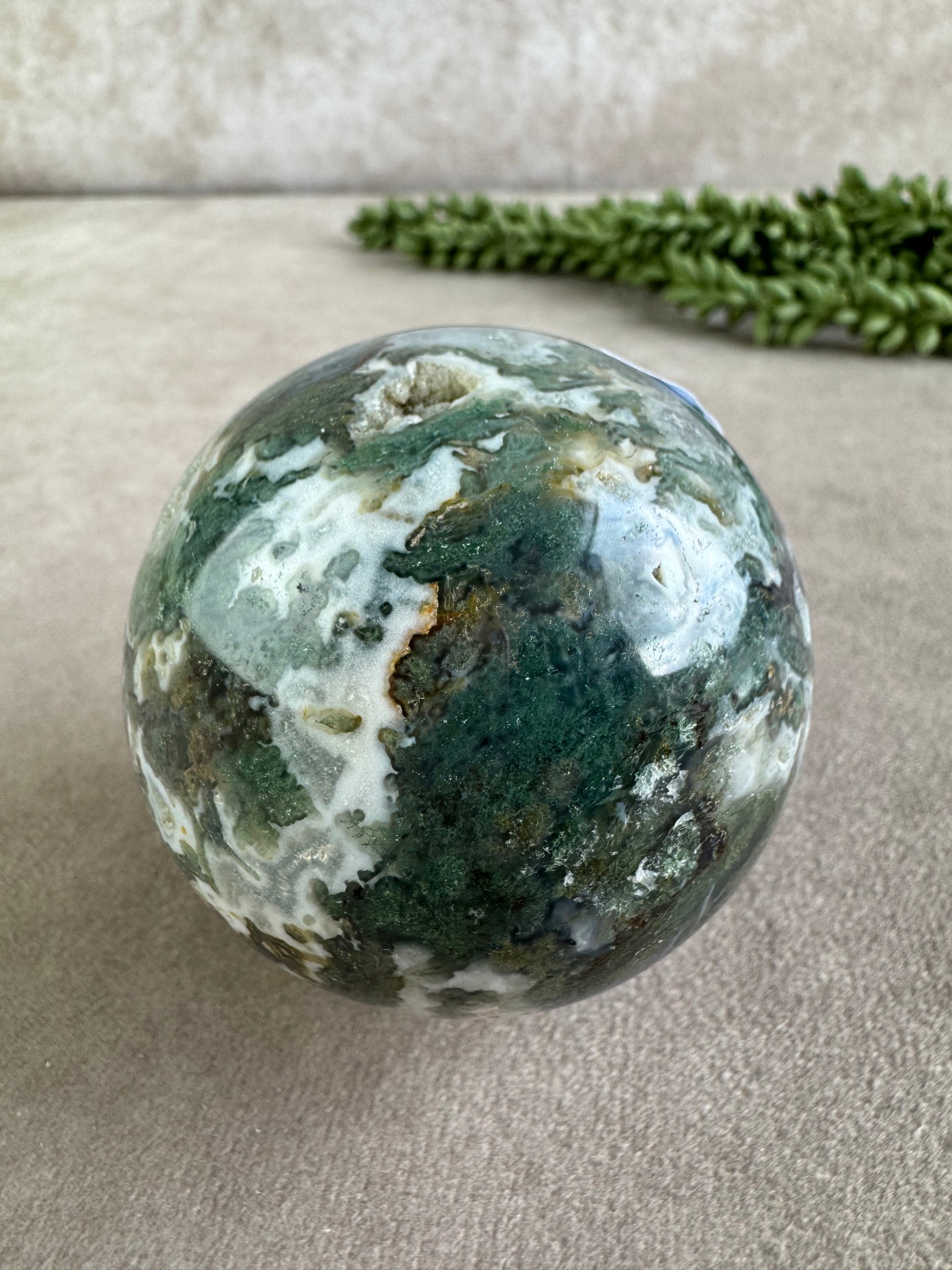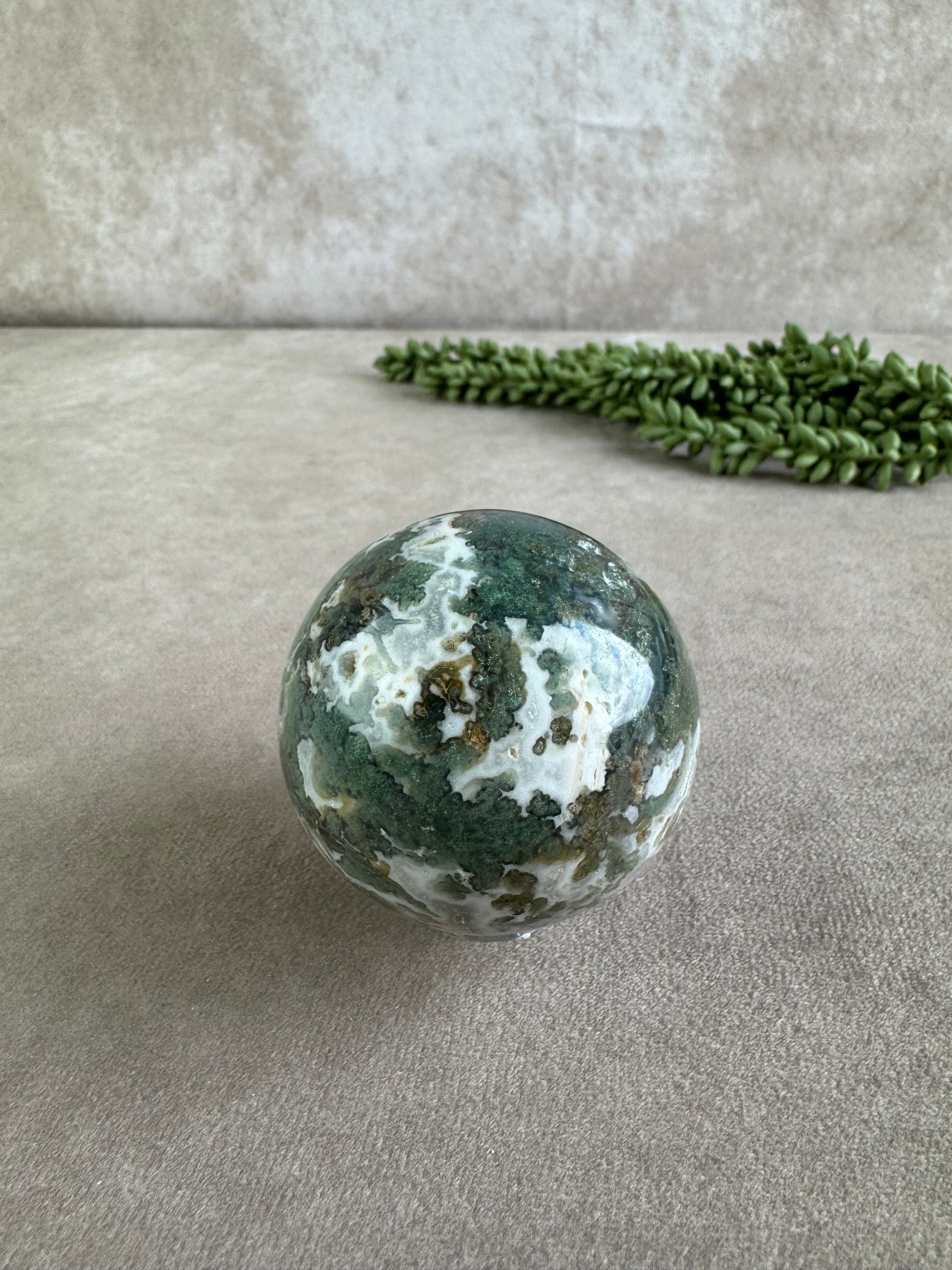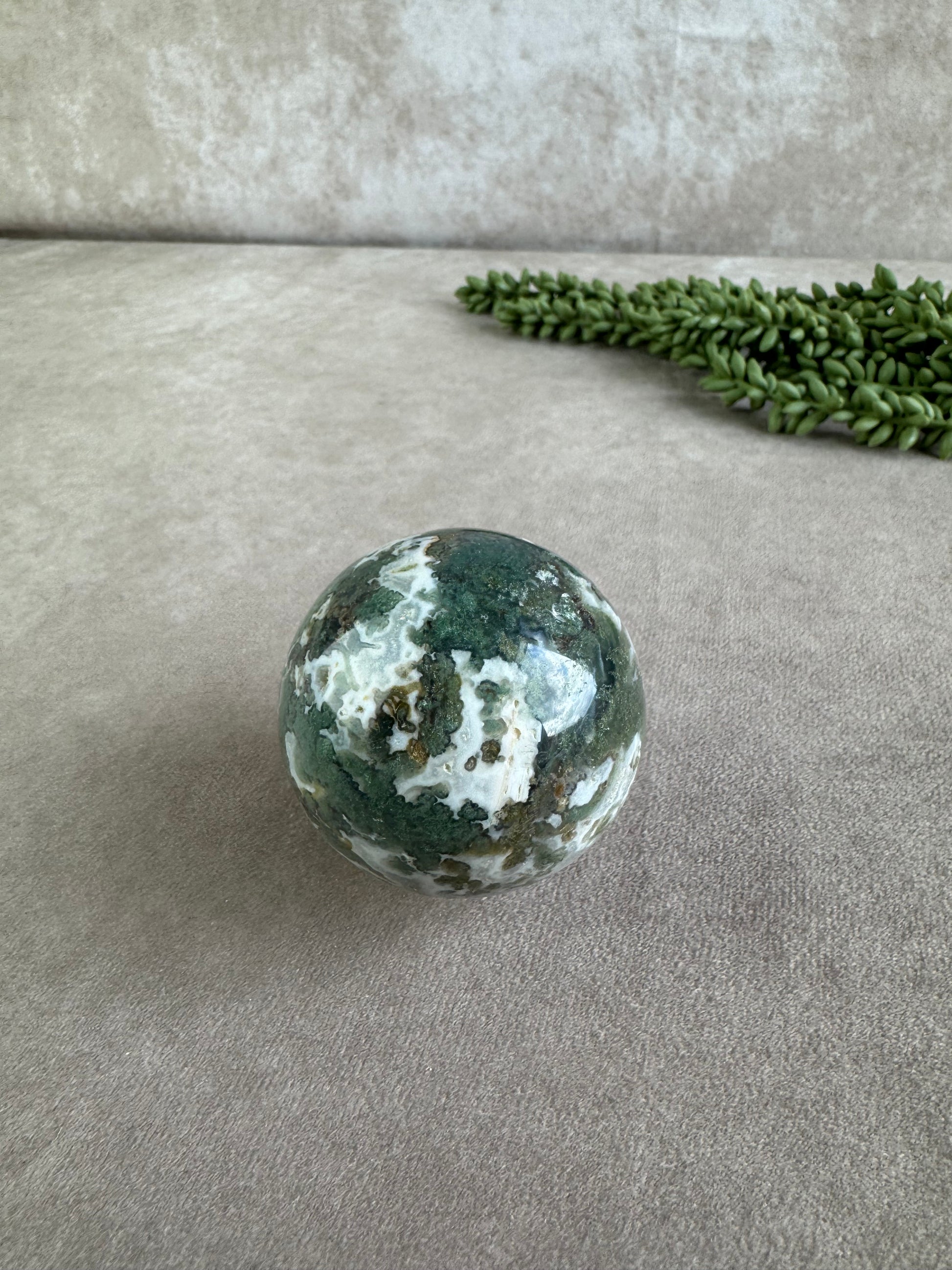 Mosagaat staat bekend om zijn rustgevende en herstellende werking. Het bevordert innerlijke groei, stabiliteit en een diep gevoel van verbondenheid met de aarde. Deze bol is perfect voor meditatie, als energetisch hulpmiddel of als decoratief object dat balans en harmonie in je ruimte brengt. Een tijdloos stuk dat zowel spiritueel als esthetisch krachtig is.