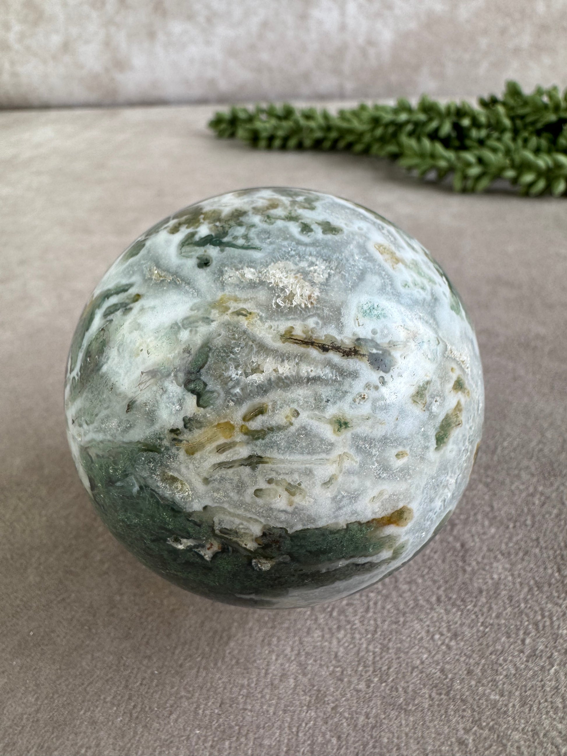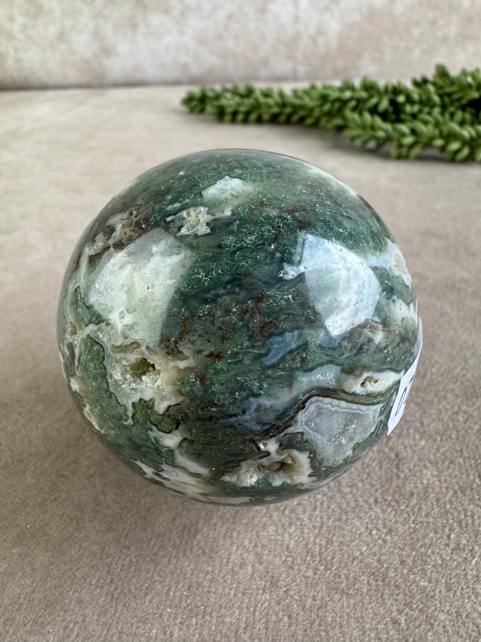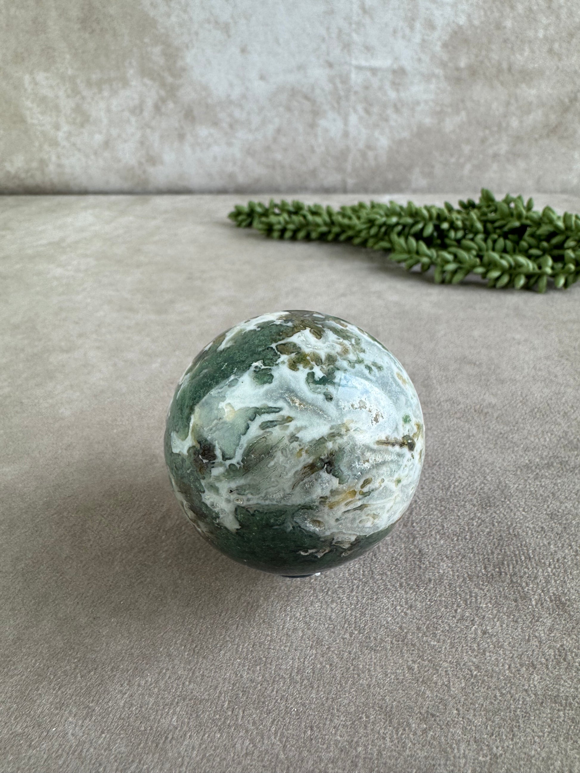 Mosagaat staat bekend om zijn rustgevende en herstellende werking. Het bevordert innerlijke groei, stabiliteit en een diep gevoel van verbondenheid met de aarde. Deze bol is perfect voor meditatie, als energetisch hulpmiddel of als decoratief object dat balans en harmonie in je ruimte brengt. Een tijdloos stuk dat zowel spiritueel als esthetisch krachtig is.