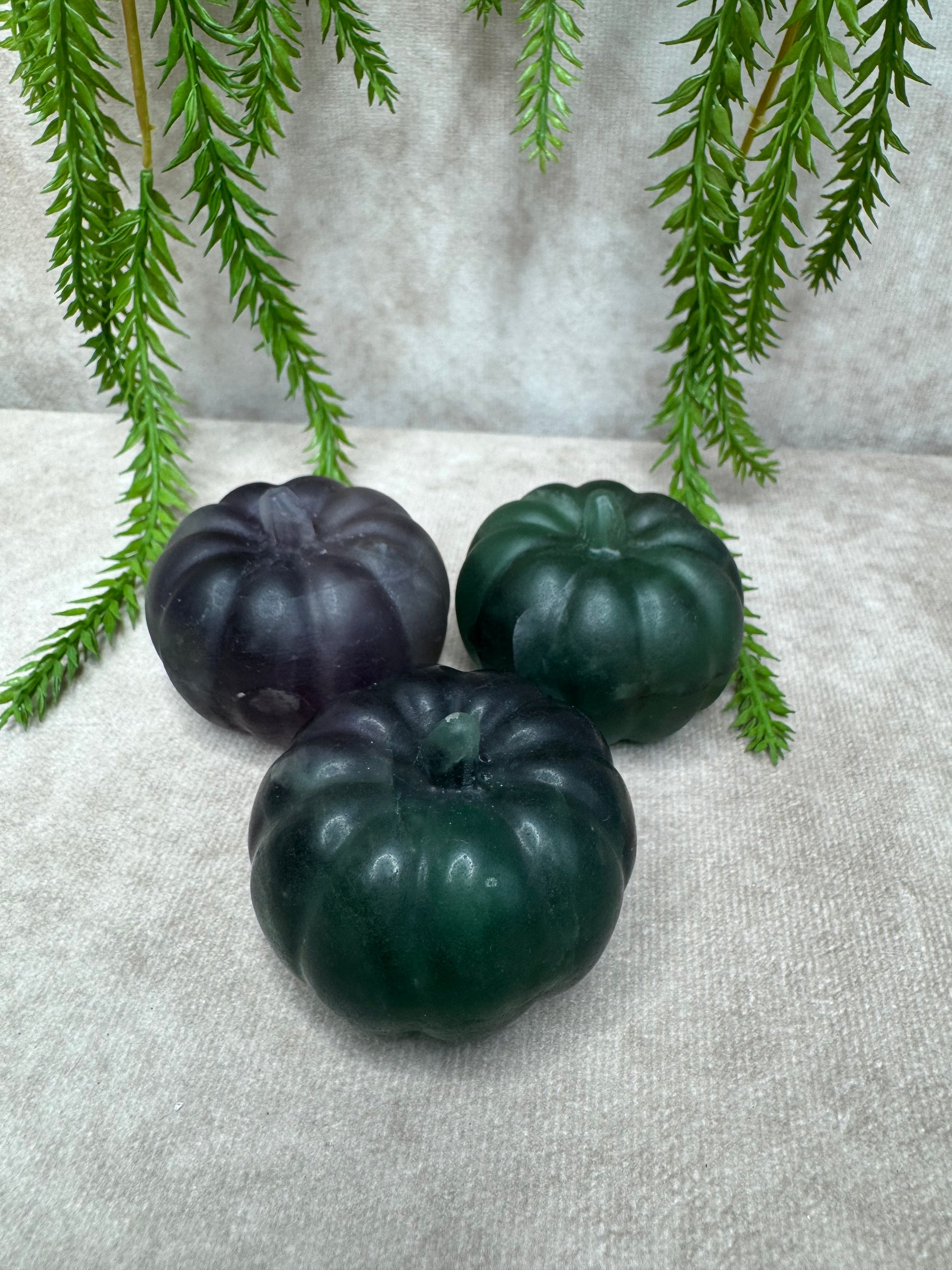 Deze prachtige pompoen van fluoriet betovert met haar natuurlijke groene, paarse en transparante tinten. Met een diameter van 5 cm en een hoogte van 4,1 cm is het een stijlvol en sfeervol edelstenen decoratiestuk.