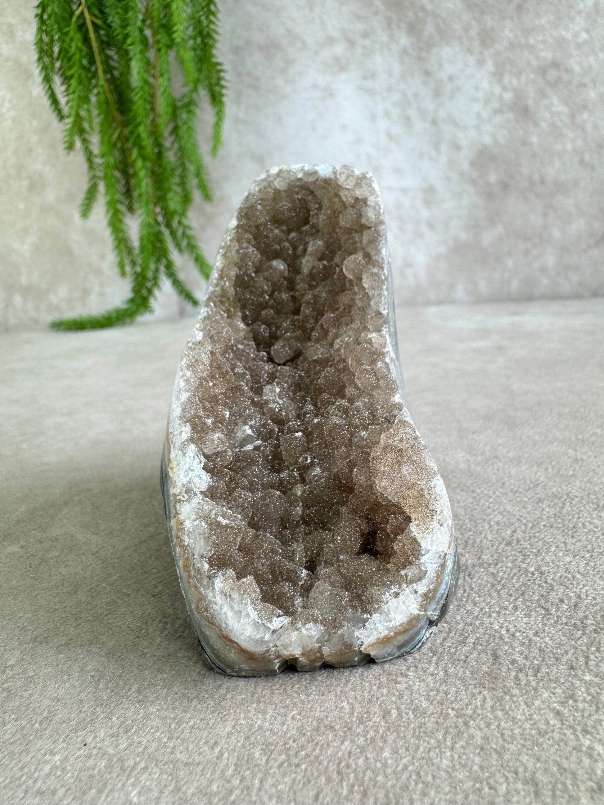 Deze Fantastische Rainbow amethist met hele fijne suikerdruzy weegt 348 gram en is 8x8cm.