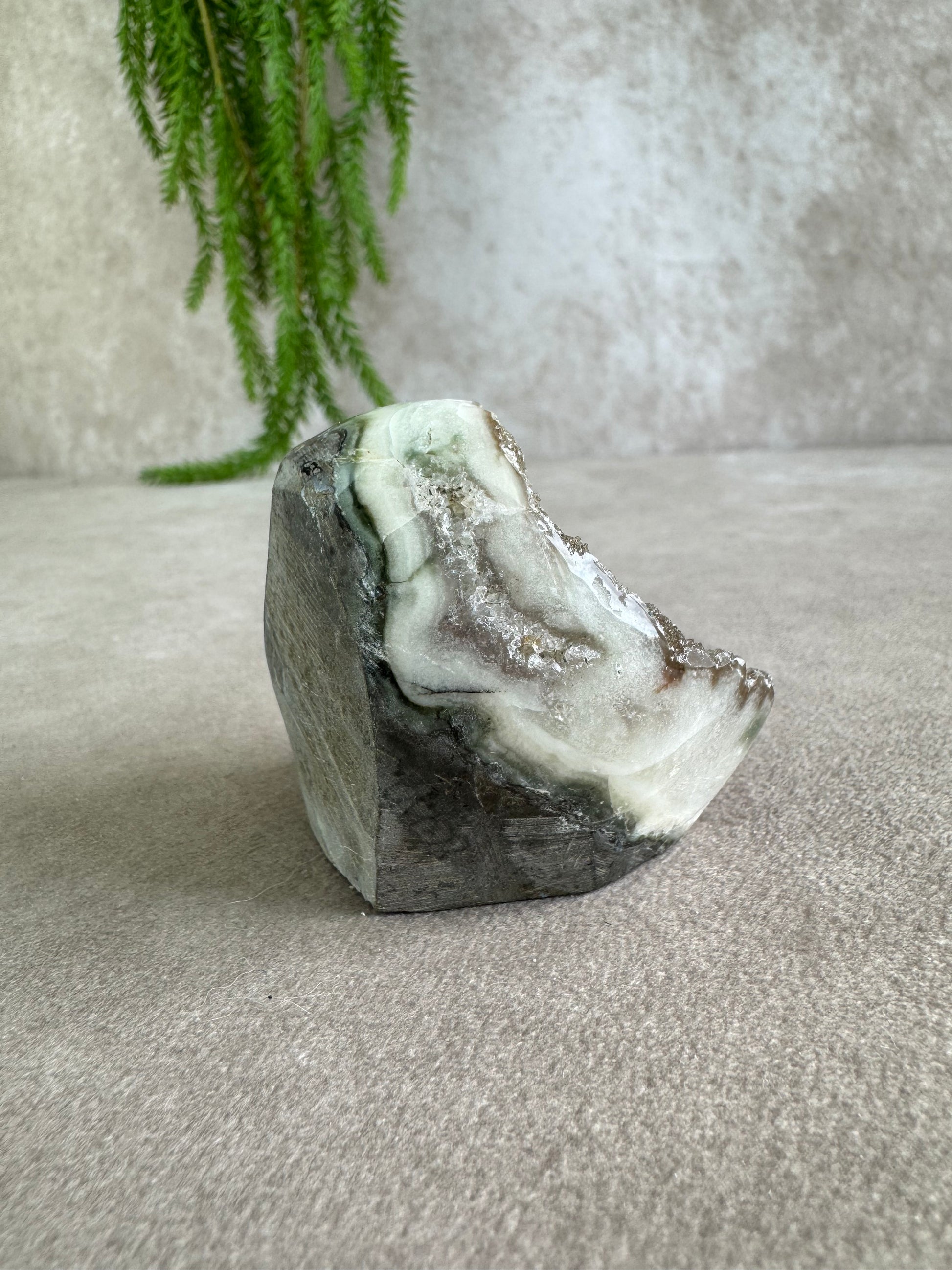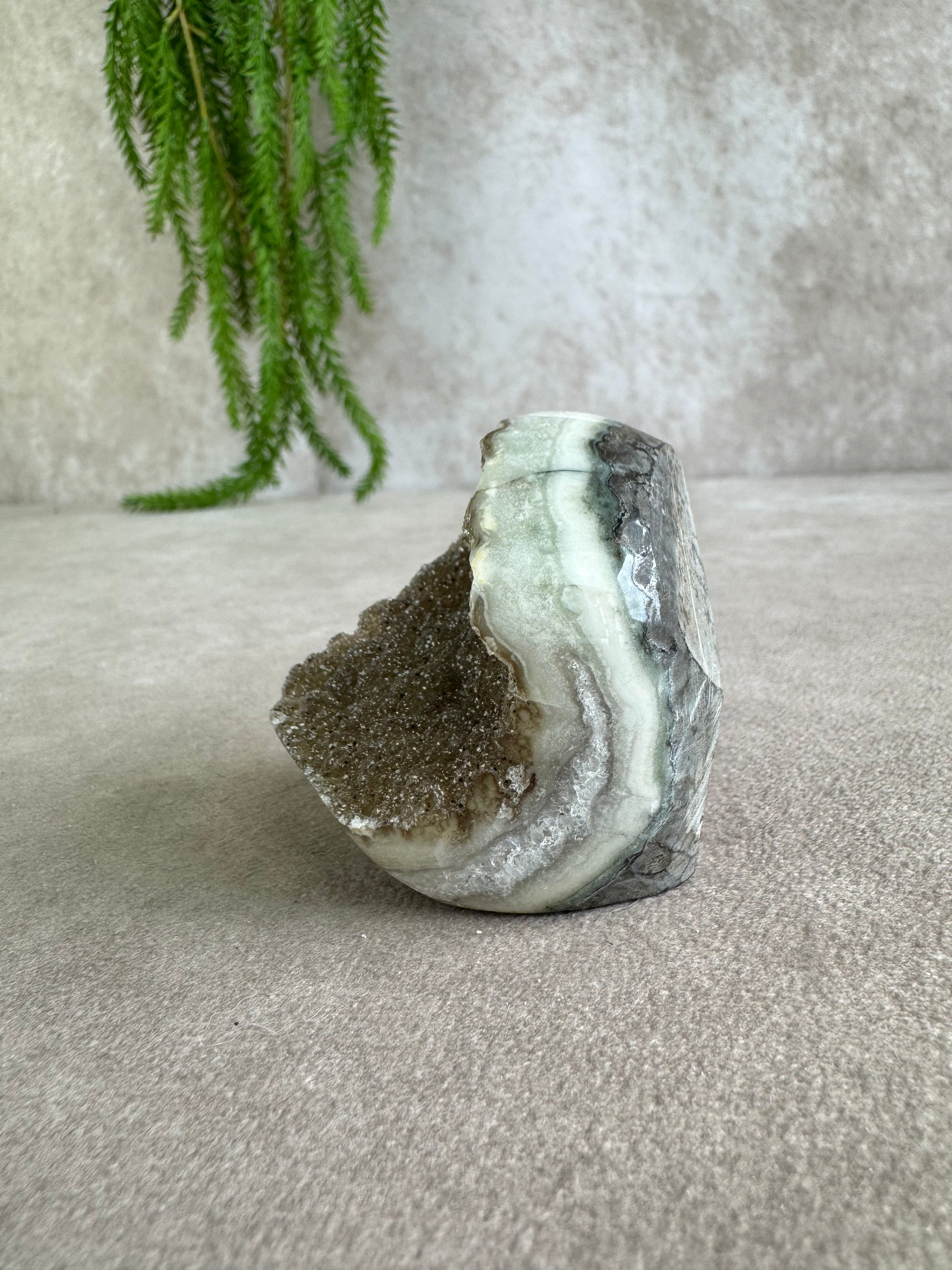 Amethist bevordert rust, helderheid en spirituele balans, terwijl agaat helpt aarden en beschermen. Samen vormen ze een krachtig en decoratief geheel – perfect voor je altaar, werkplek of kristalcollectie.