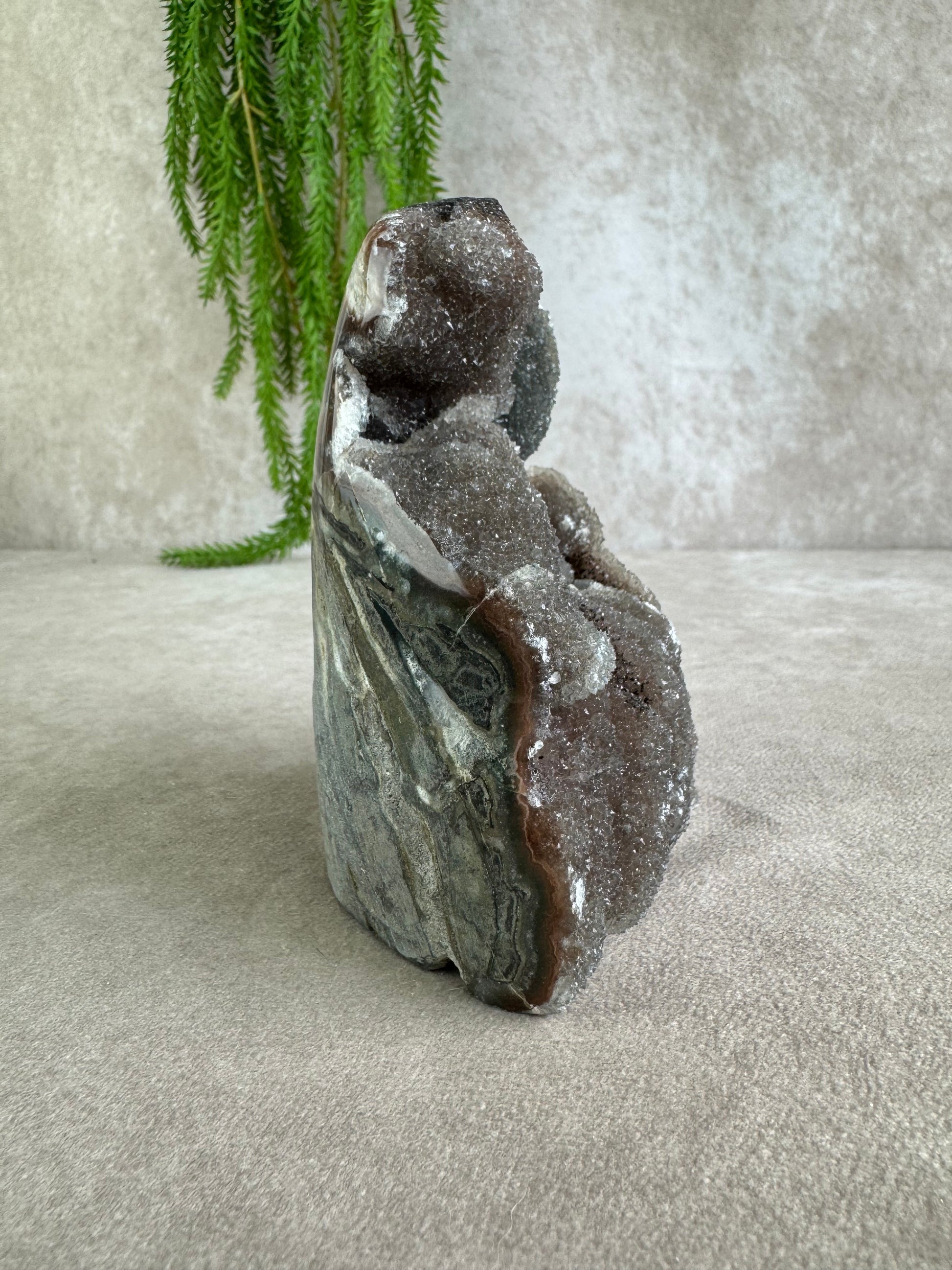 Amethist staat bekend om zijn rustgevende en zuiverende energie, en in combinatie met de warme kleuren straalt dit stuk ook kracht en stabiliteit uit. Een unieke mix van schoonheid en betekenis.