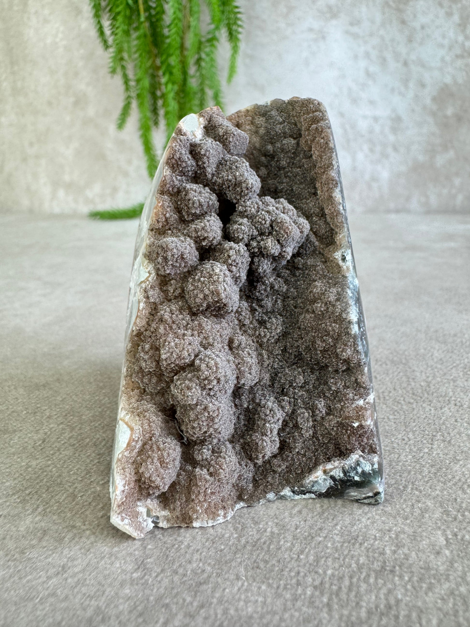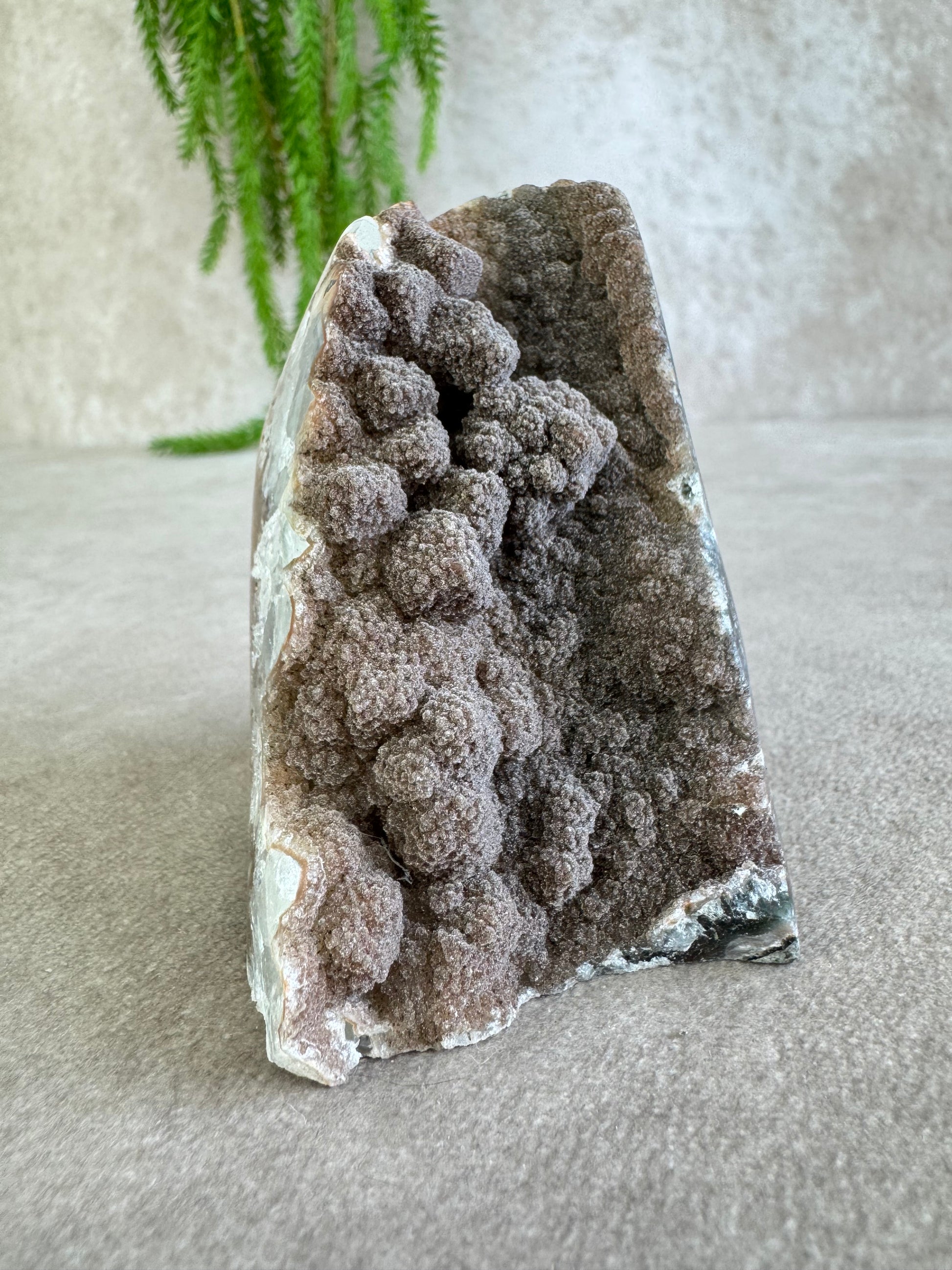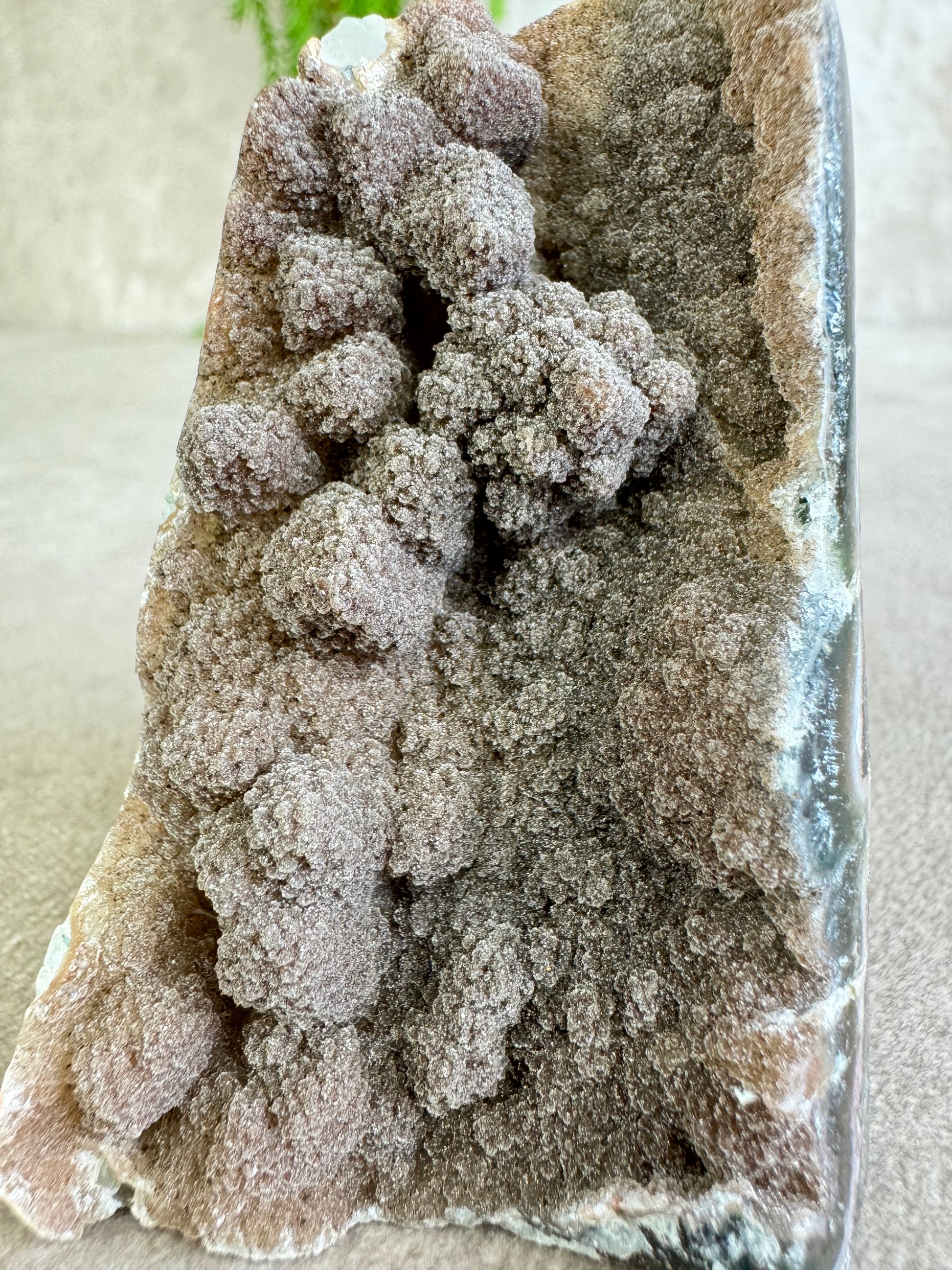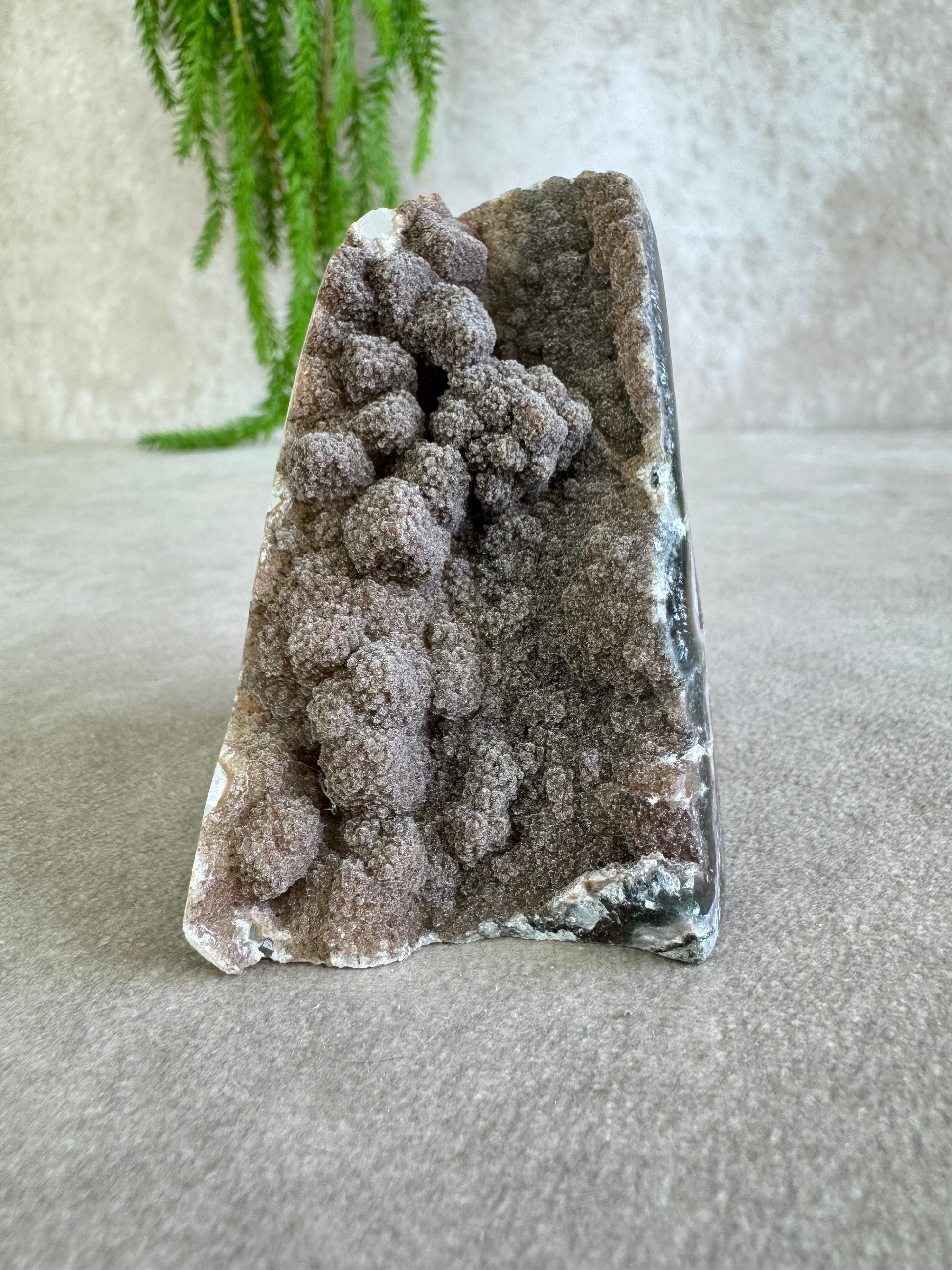 De glinstering die tussen de kristallen verschijnen wanneer het licht erop valt, geven dit stuk een extra magische uitstraling. Amethist staat bekend om zijn kalmerende en zuiverende werking, ideaal voor ontspanning en een harmonieuze sfeer.