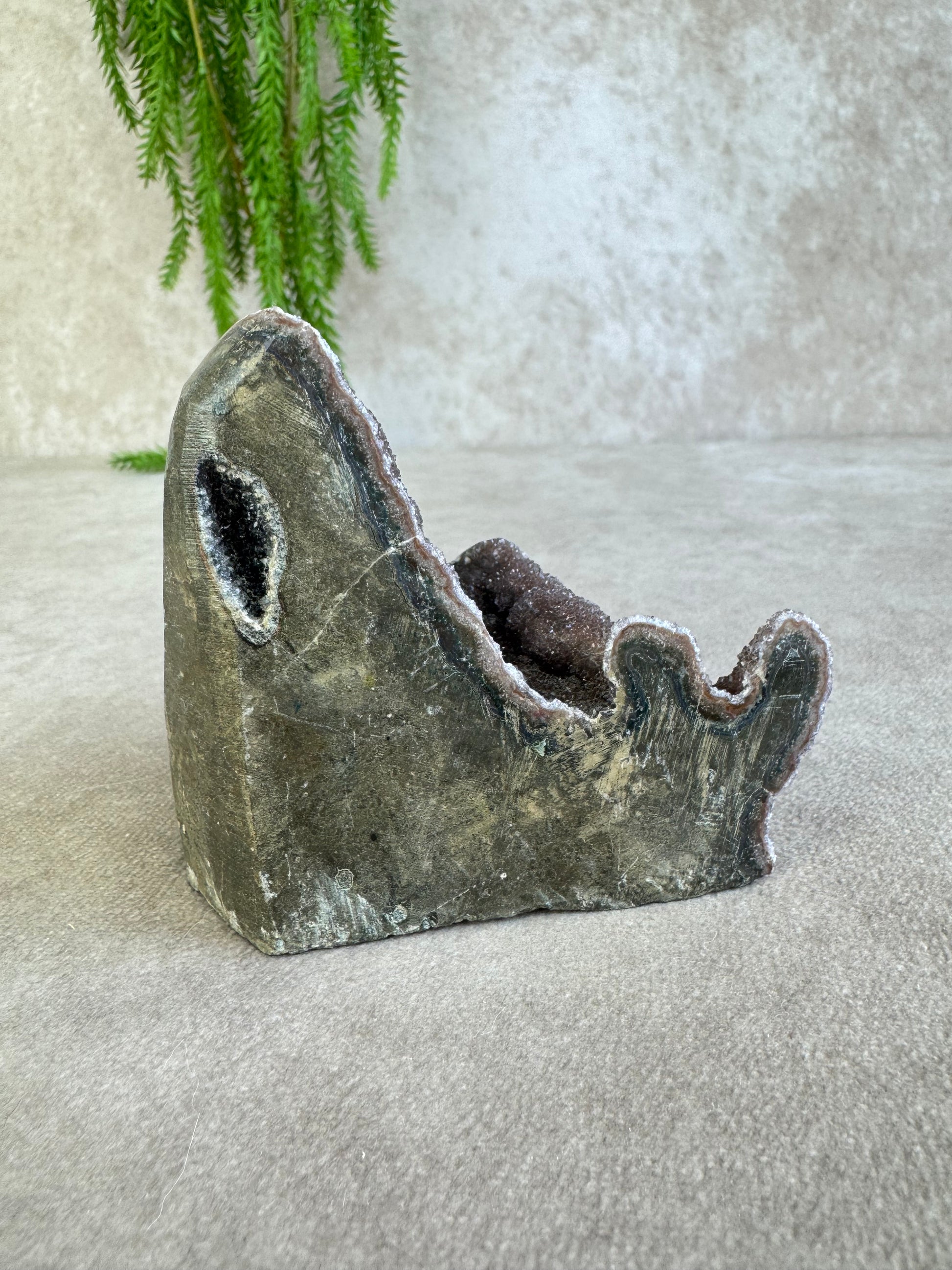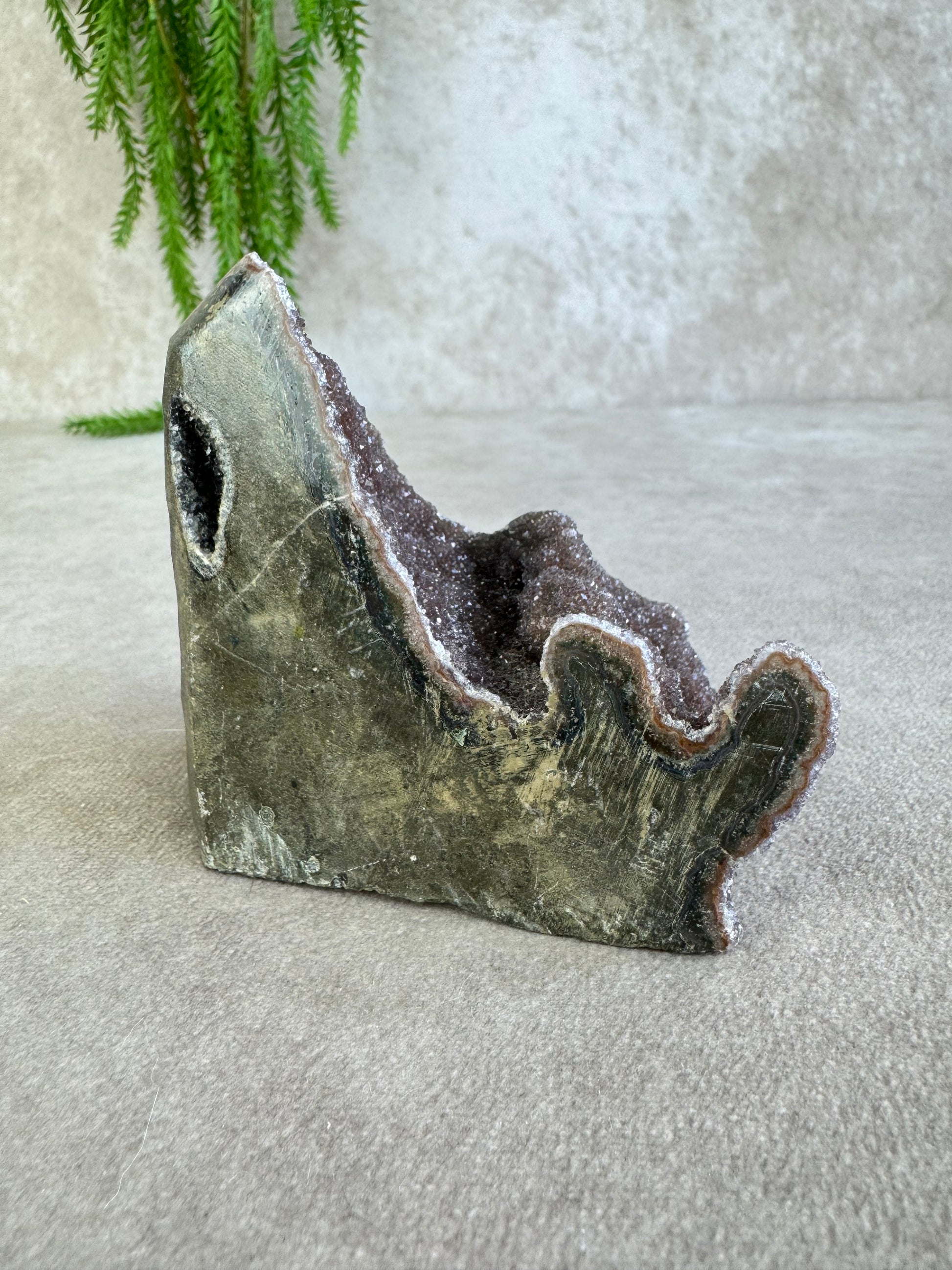 Amethist staat bekend om zijn rustgevende en zuiverende werking. Het helpt bij ontspanning, helder denken en het creëren van een kalme sfeer. De zachte rood bruine tinten in deze steen geven hem bovendien een aardse, harmonieuze uitstraling, waardoor hij moeiteloos in elk interieur past.
