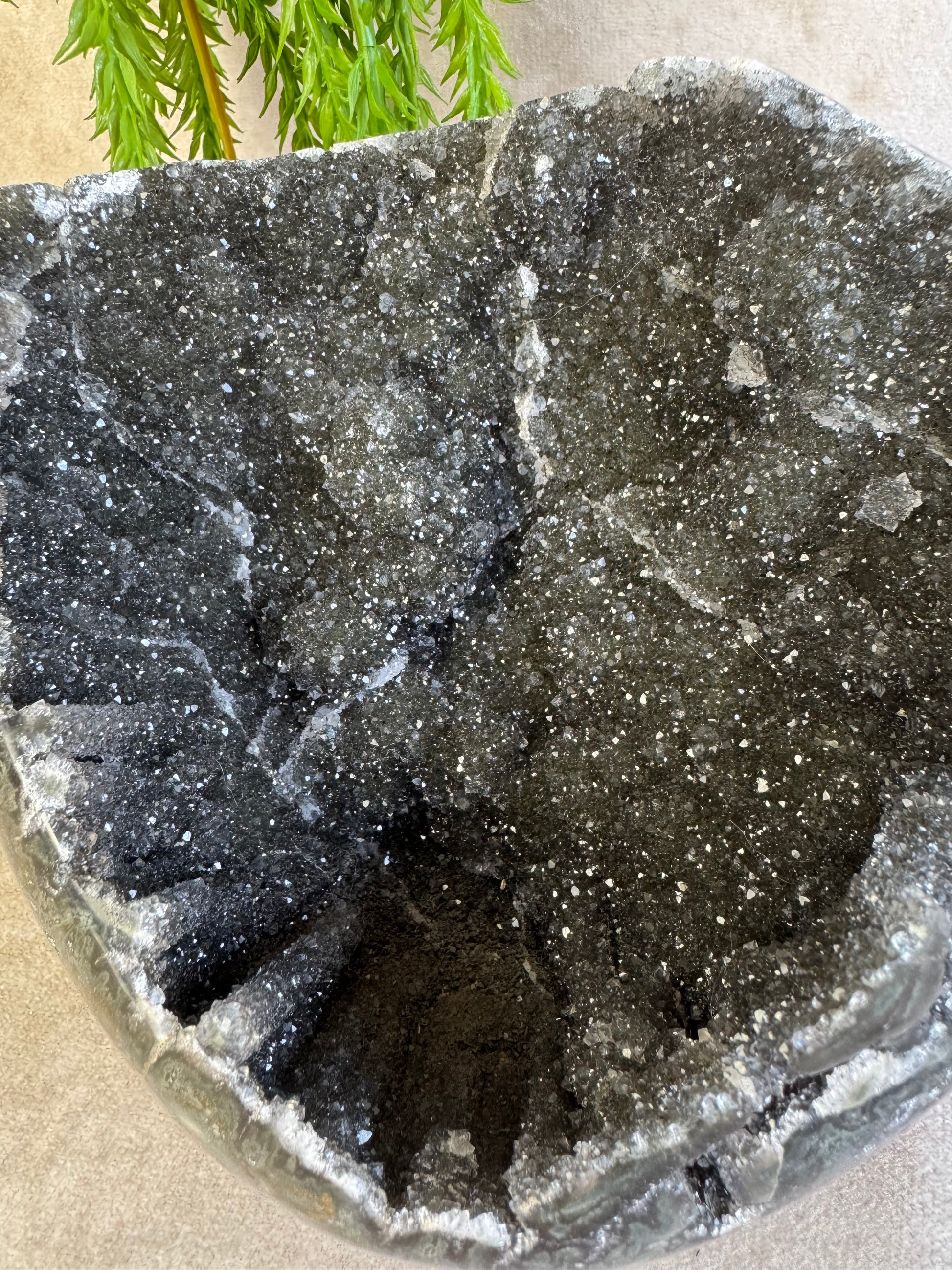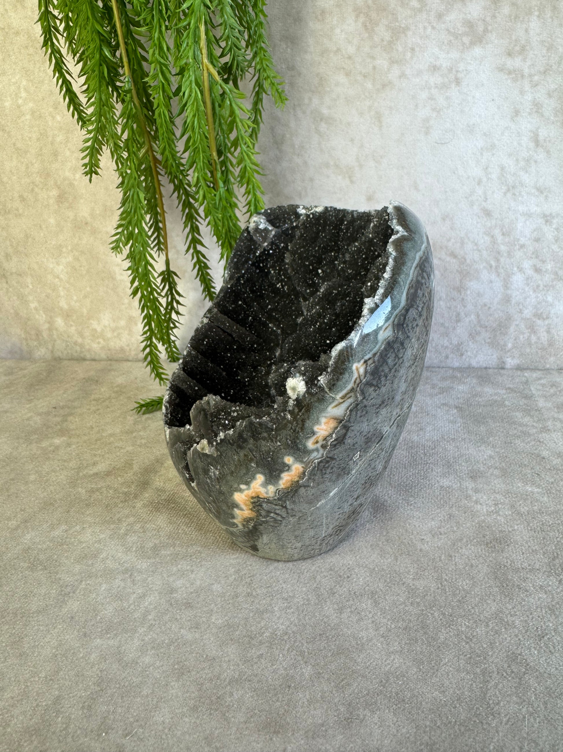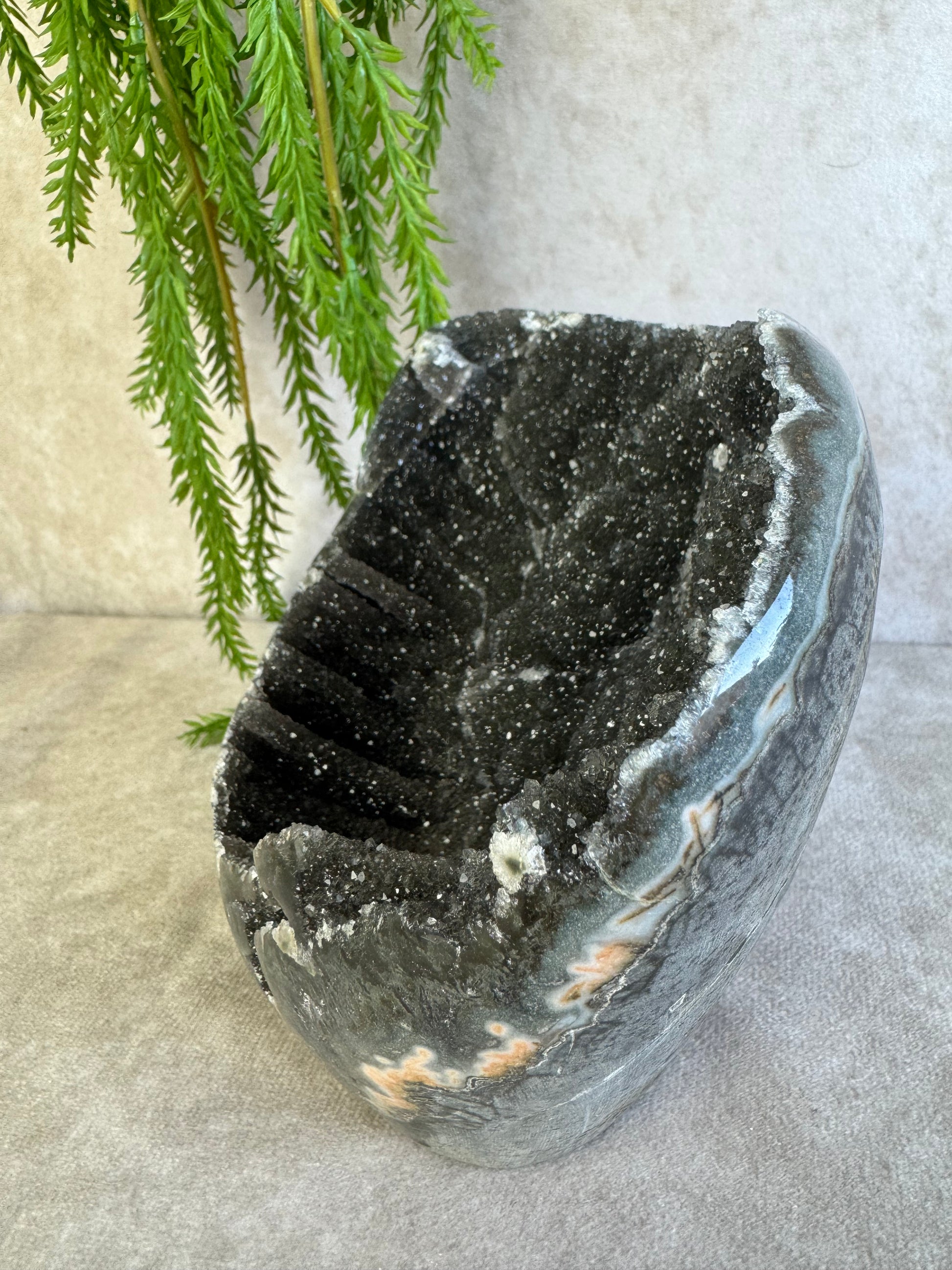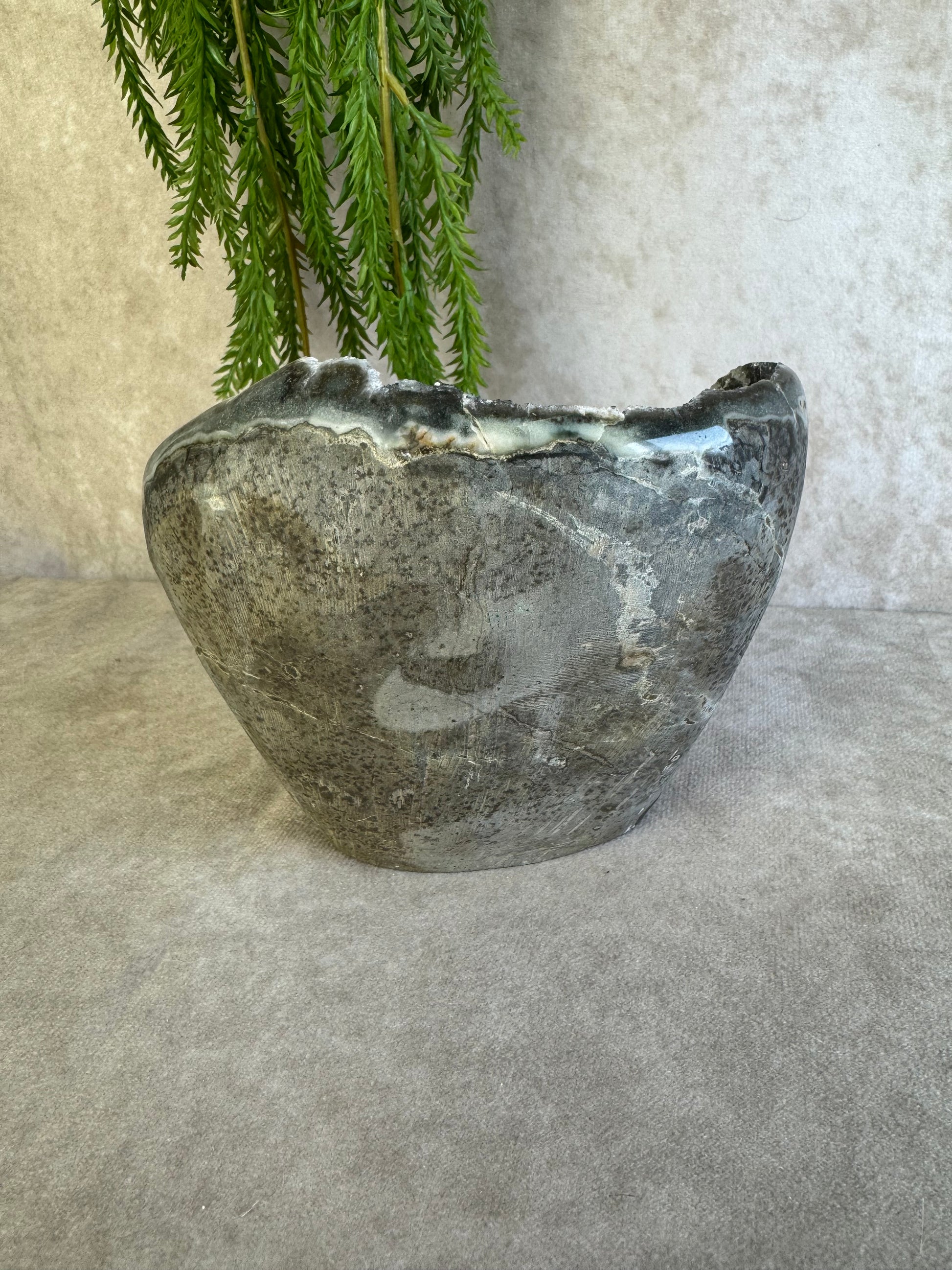 Het is ook echt een kommetje dus ook super leuk om er bijvoorbeeld sieraden of kleine trommelstenen in te leggen maar als parel opzich is hij ook echt prachtig voor in je edelstenen collectie.