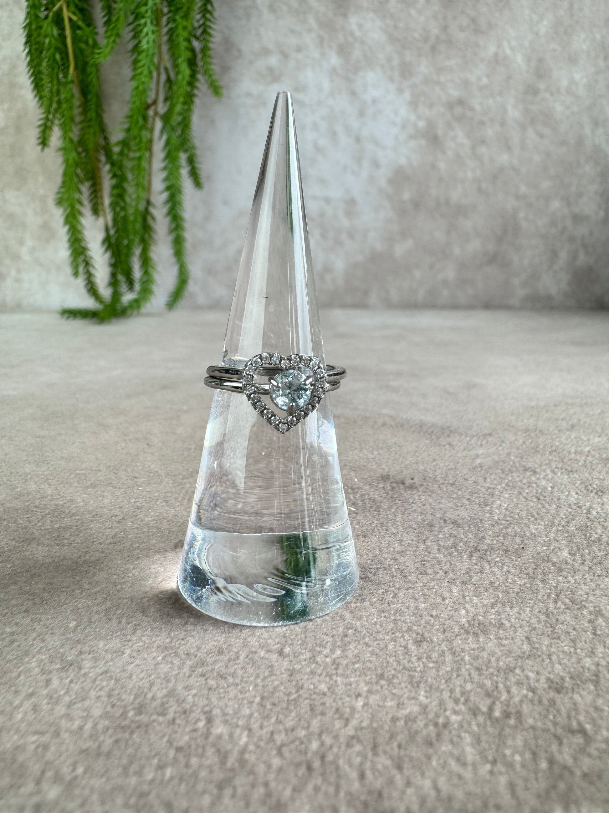 Deze elegante aquamarijn ring is vervaardigd uit hoogwaardig 925 sterling zilver en is verstelbaar, waardoor hij altijd comfortabel draagt. Het bijzondere ontwerp bestaat uit twee losse ringen die je stijlvol in elkaar schuift, wat zorgt voor een speelse en moderne uitstraling.