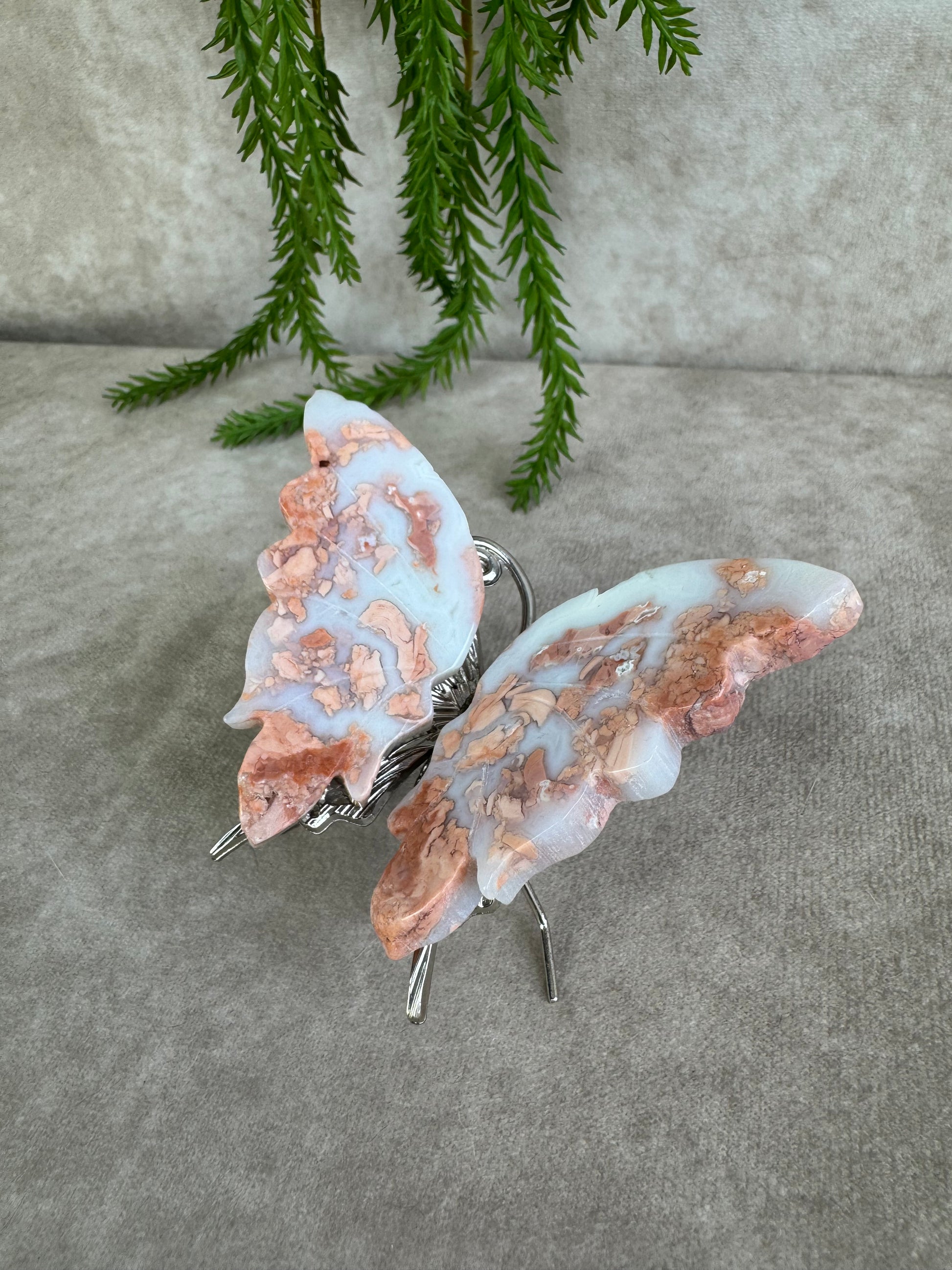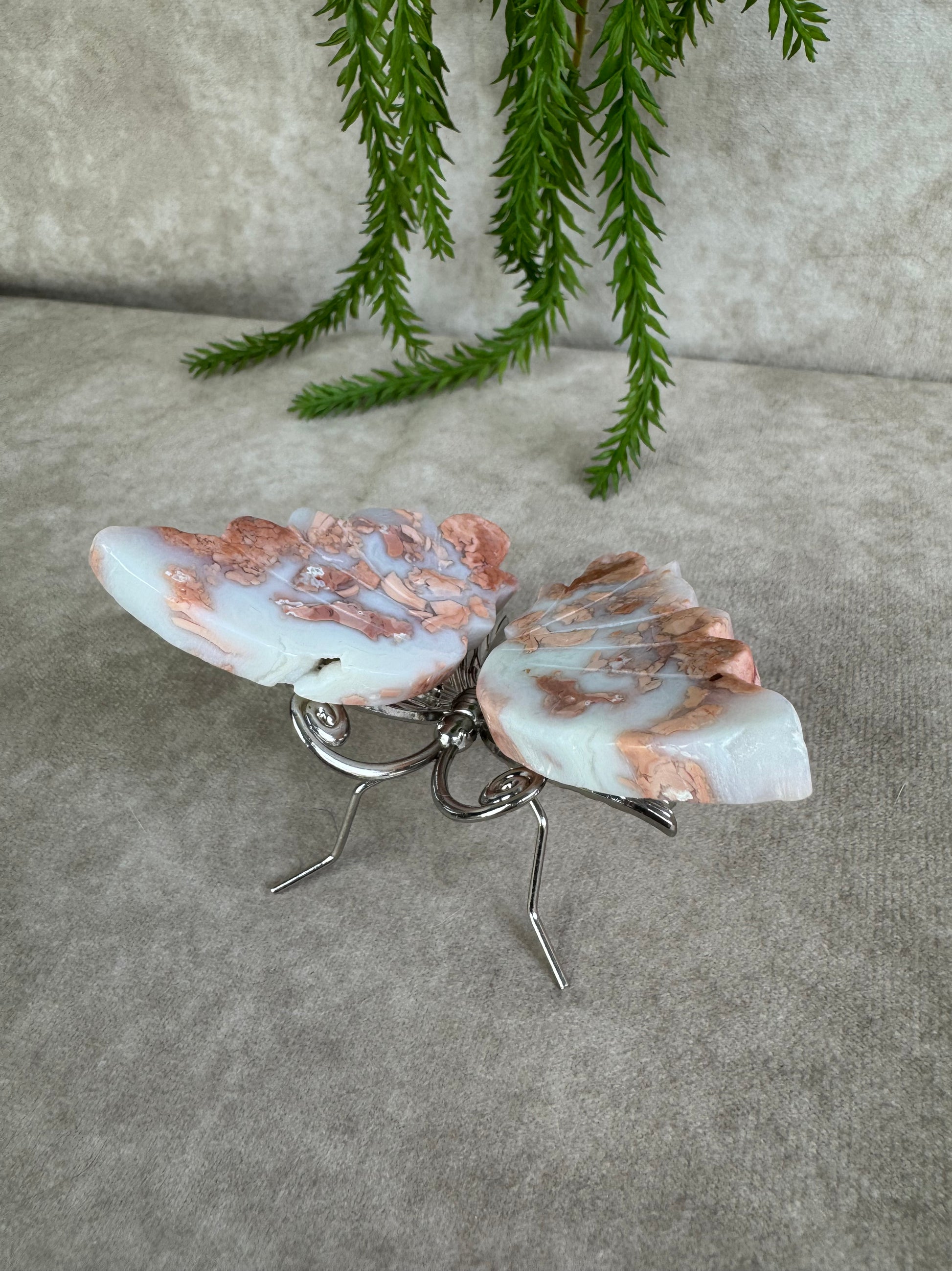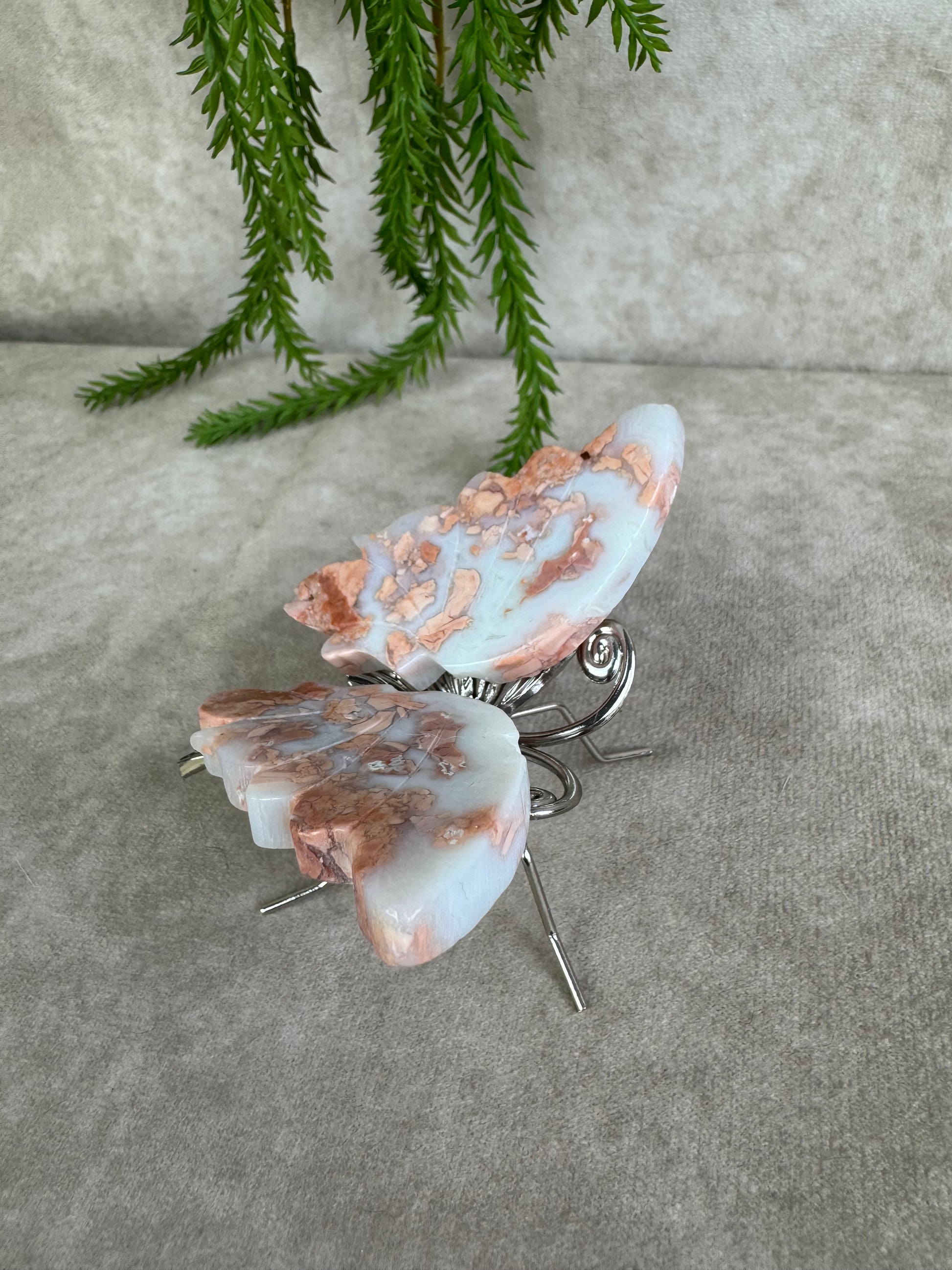Roze agaat is een steen van rust, harmonie en emotionele heling. In de vorm van een vlinder het symbool van transformatie en lichtheid versterkt deze steen gevoelens van liefde, zelfzorg en innerlijke balans.