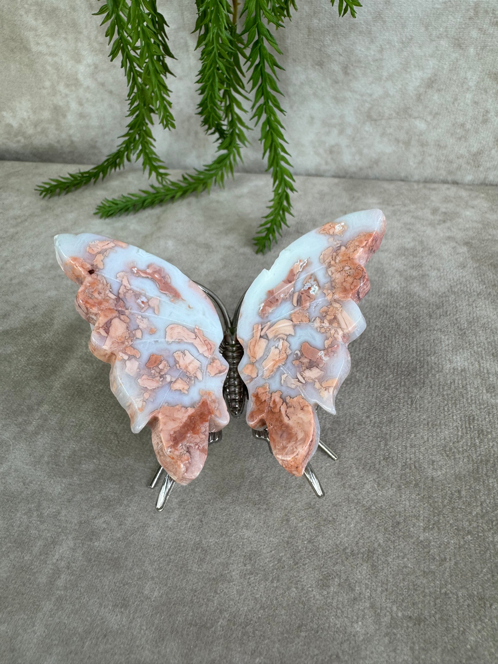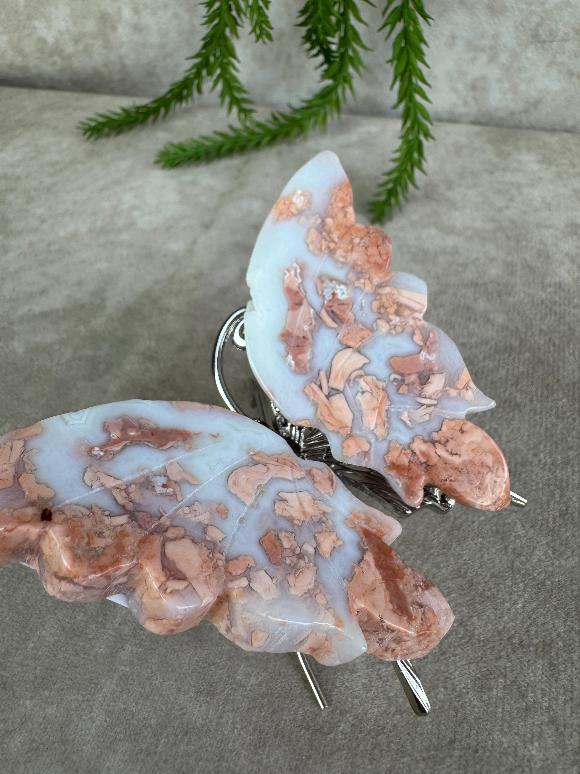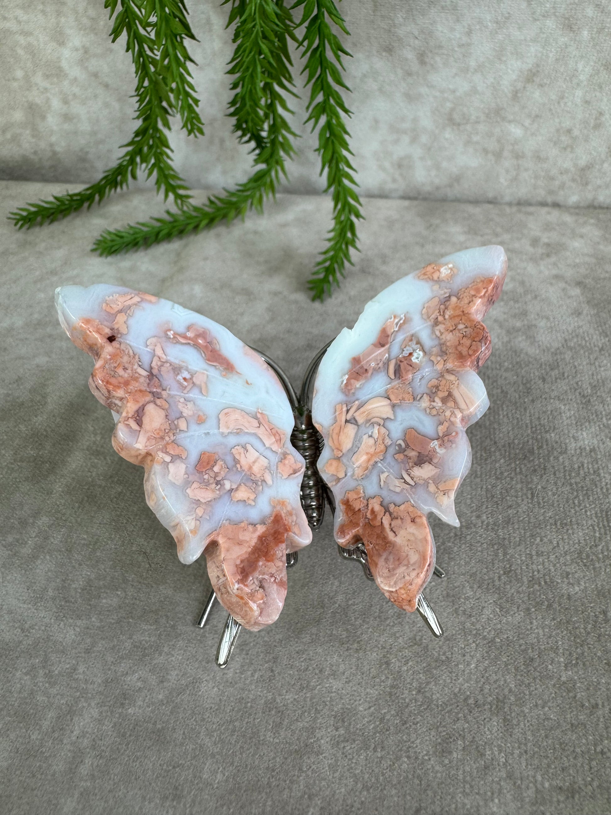 Roze agaat is een steen van rust, harmonie en emotionele heling. In de vorm van een vlinder het symbool van transformatie en lichtheid versterkt deze steen gevoelens van liefde, zelfzorg en innerlijke balans.