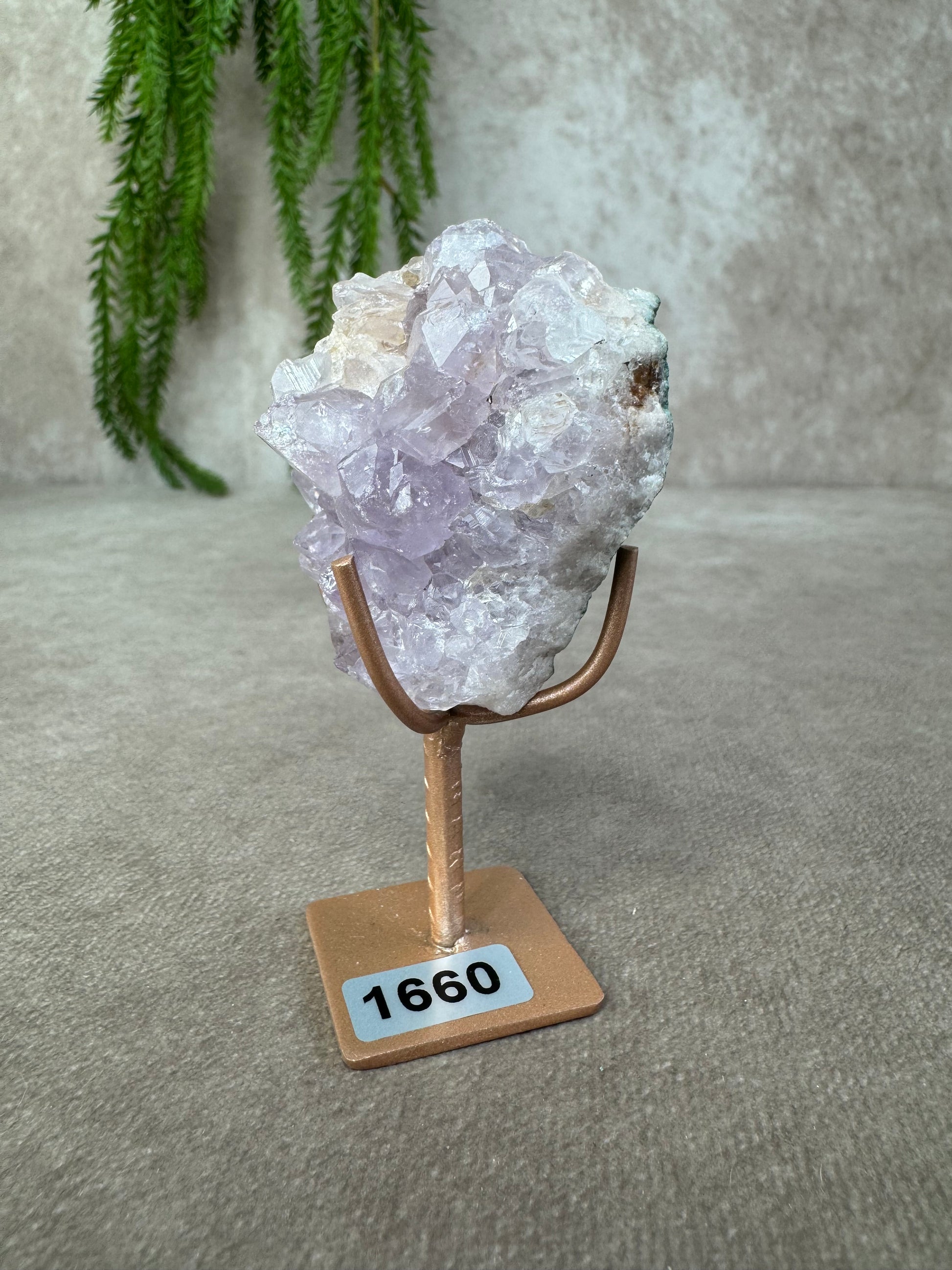 Deze schitterende roze amethist cluster is een compact maar opvallend stuk vol natuurlijke schoonheid. Het meet 8,5 cm hoog en 4,3 cm breed.