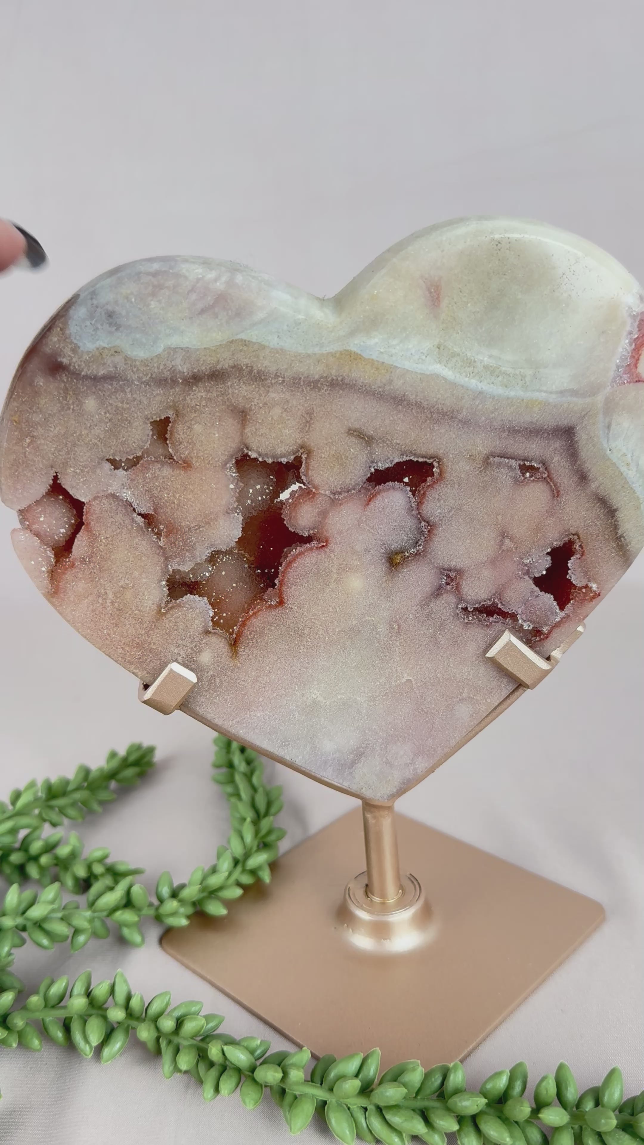 Deze roze amethist/chalcedoon op standaard weegt 782 gram, is 9 cm breed en 24 cm hoog. De standaard is draaibaar, waardoor je hem gemakkelijk naar wens kunt neerzetten. Roze amethist heeft een sterk kalmerende werking, bevordert zelfliefde en emotionele genezing, en is daarom ideaal om een rustige, liefdevolle sfeer in huis te creëren. Geschikt voor meditatie, spirituele sessies of een praktijkruimte.