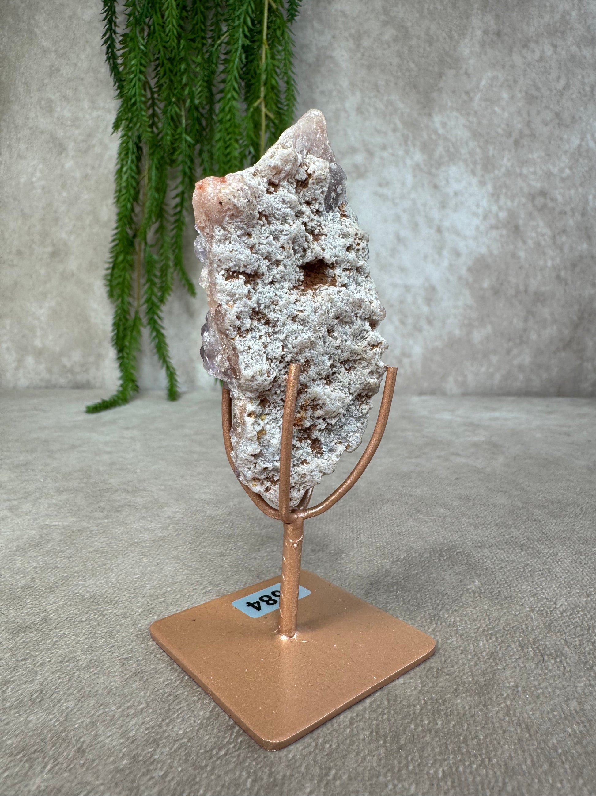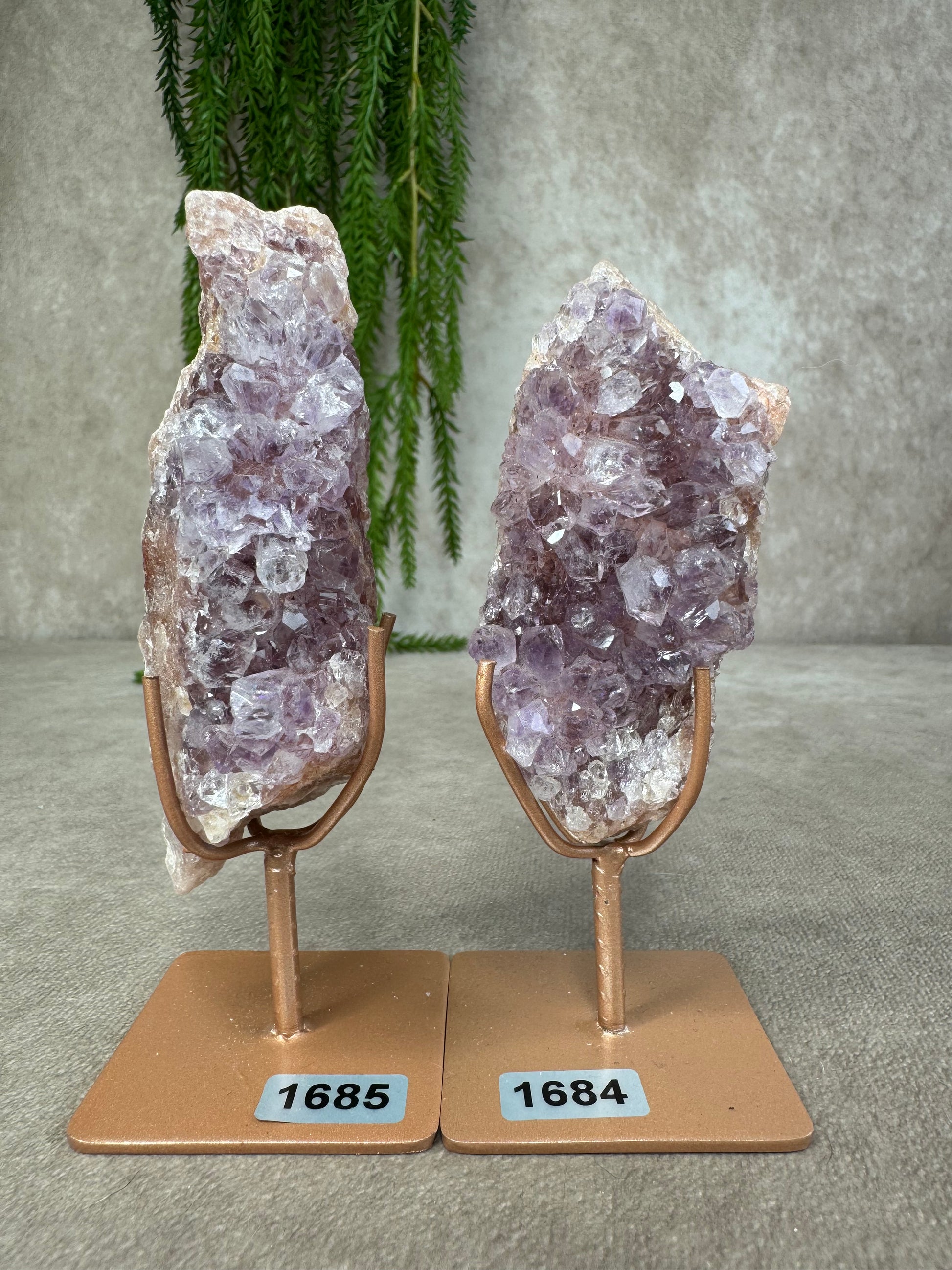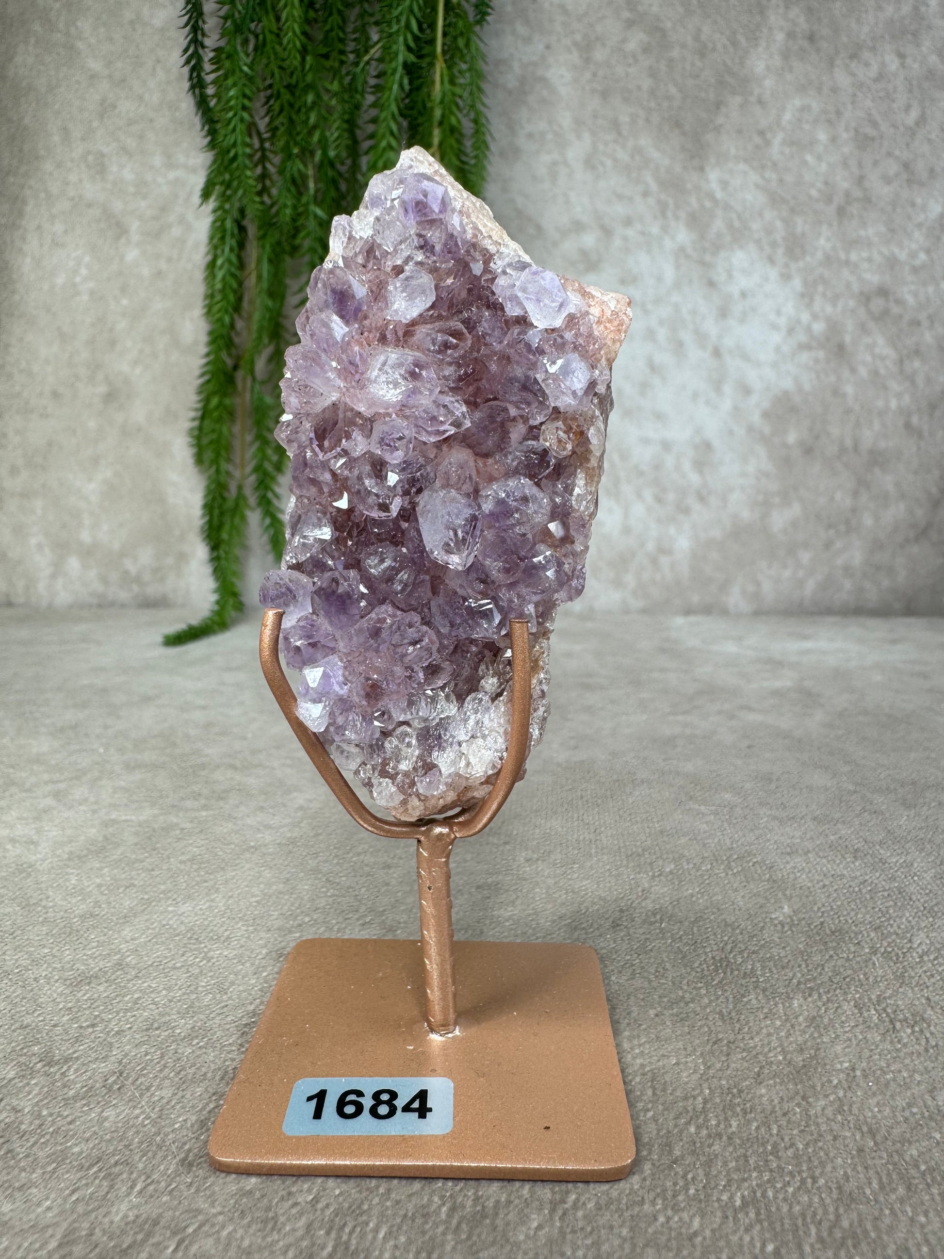 Deze prachtige roze amethist cluster is een elegant en verfijnd stuk van 11,7 cm hoog en 4,9 cm breed, geplaatst op een bijpassende standaard. De cluster toont zachte roze tinten met natuurlijke kristalstructuren die prachtig fonkelen in het licht.