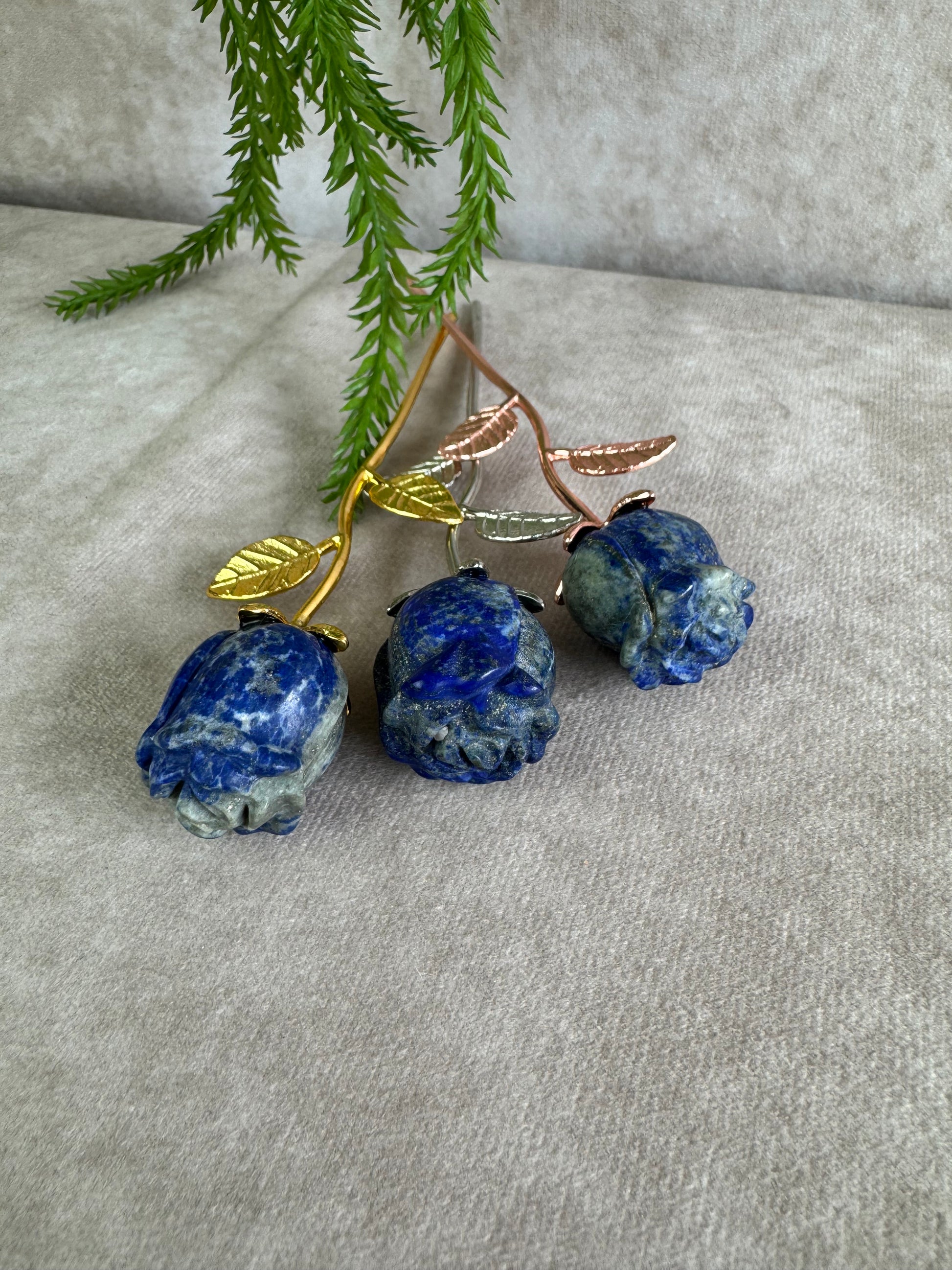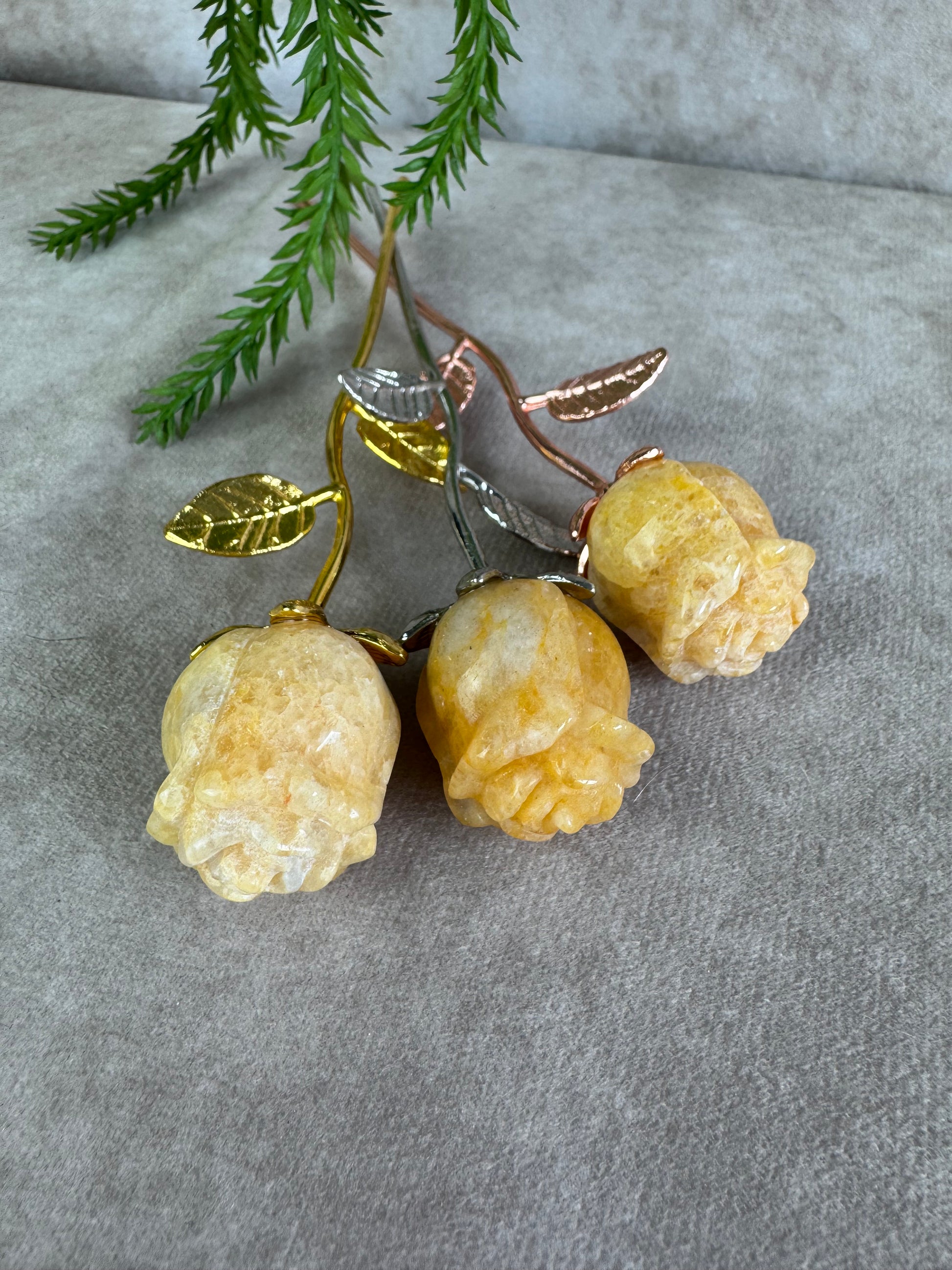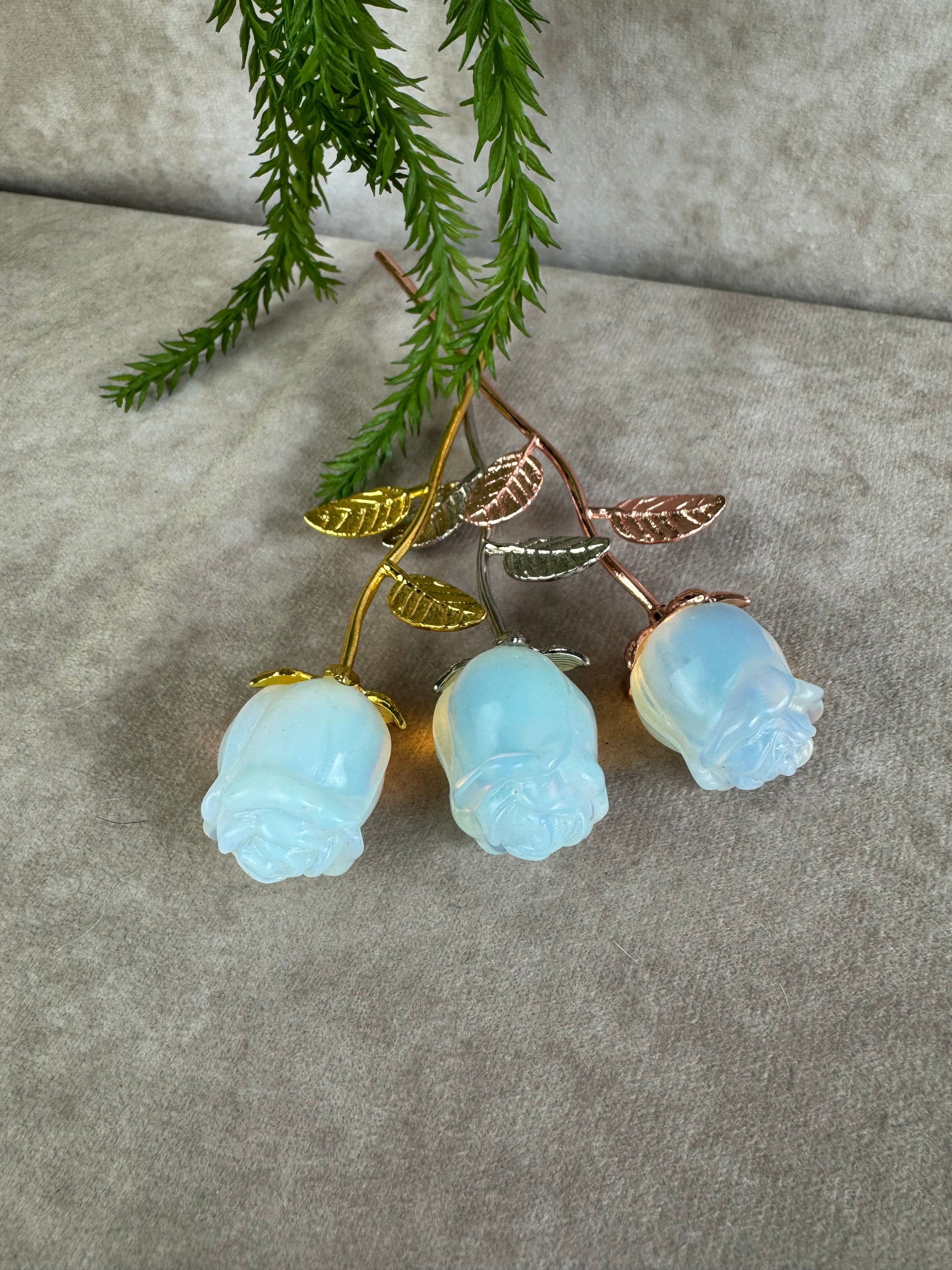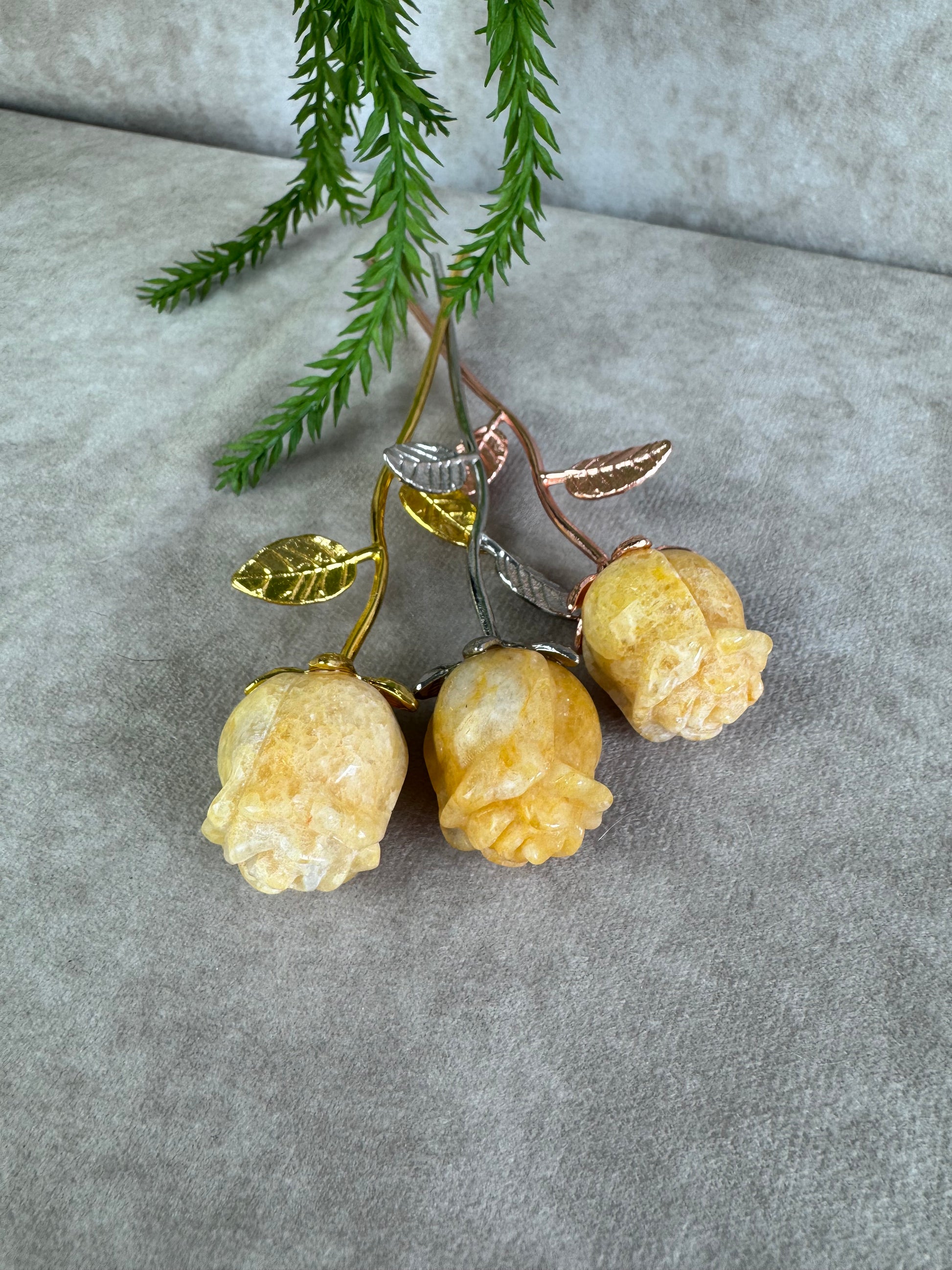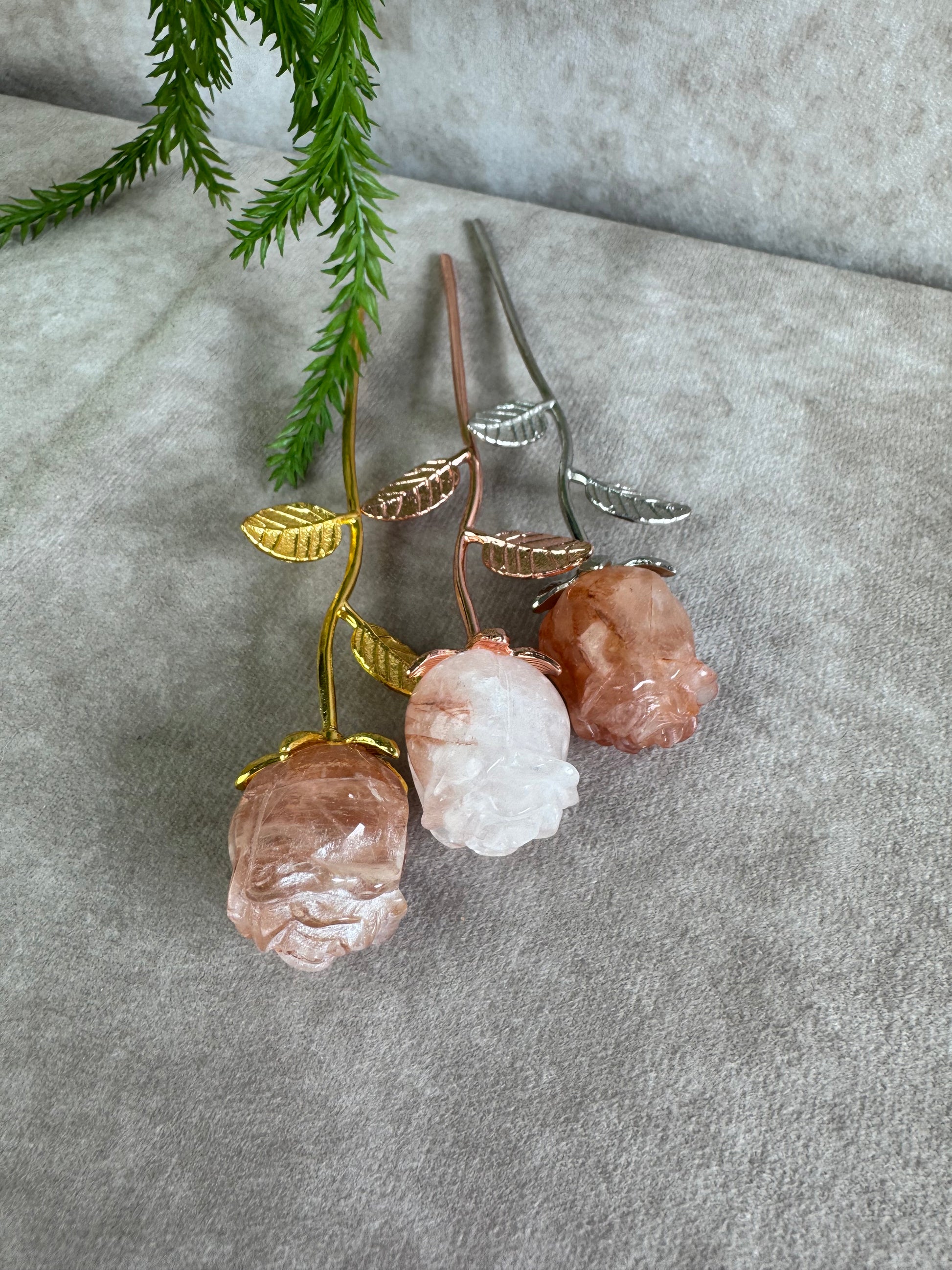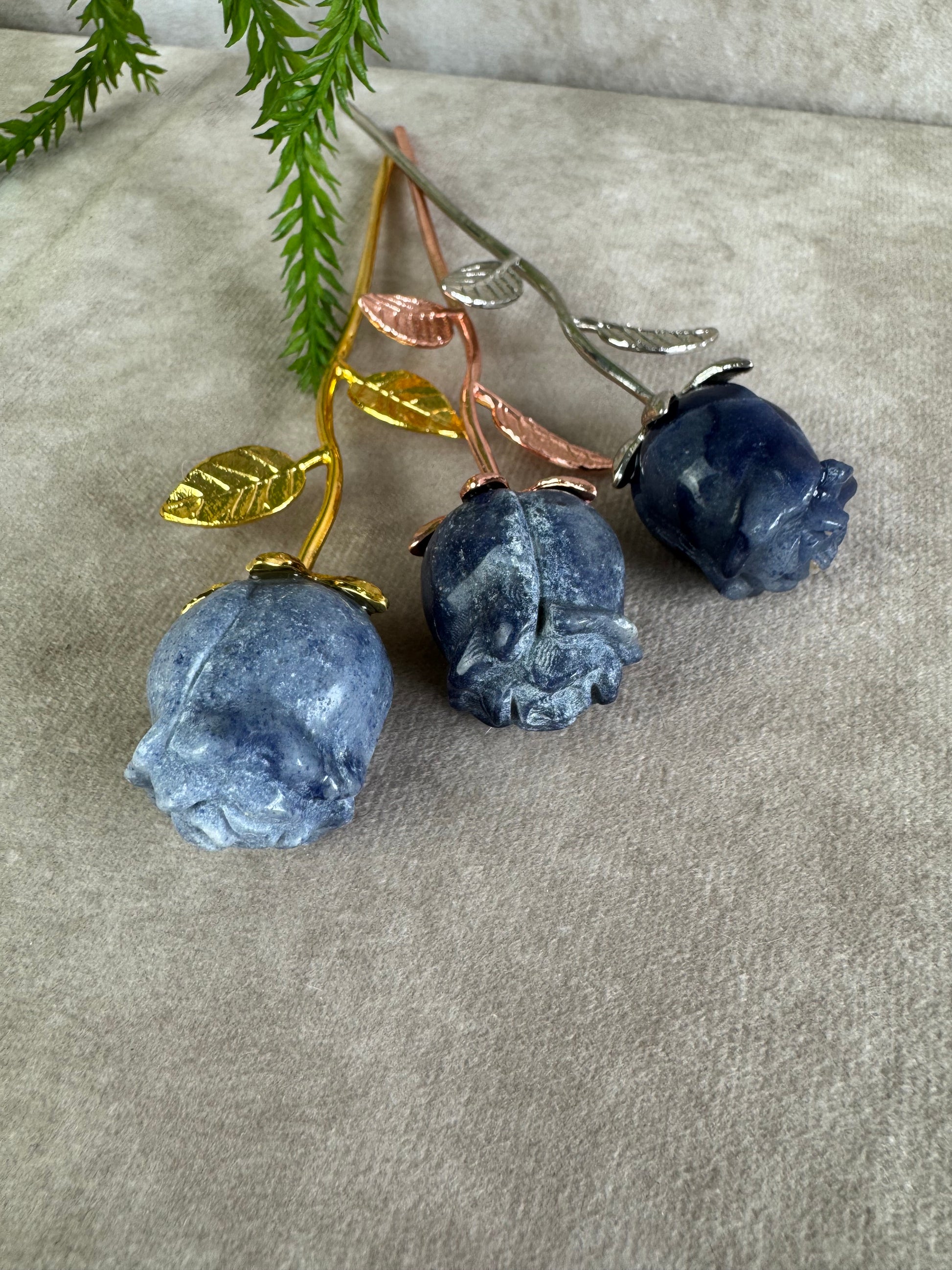 Deze prachtige edelstenen roosjes combineren de symboliek van de roos met de kracht van kristallen. Elke roos is met zorg geslepen uit een echte edelsteen en bevestigd op een verfijnde metalen steel in jouw keuze: goud, roségoud of zilver. Het resultaat is een tijdloos, elegant en energetisch waardevol decoratiestuk.