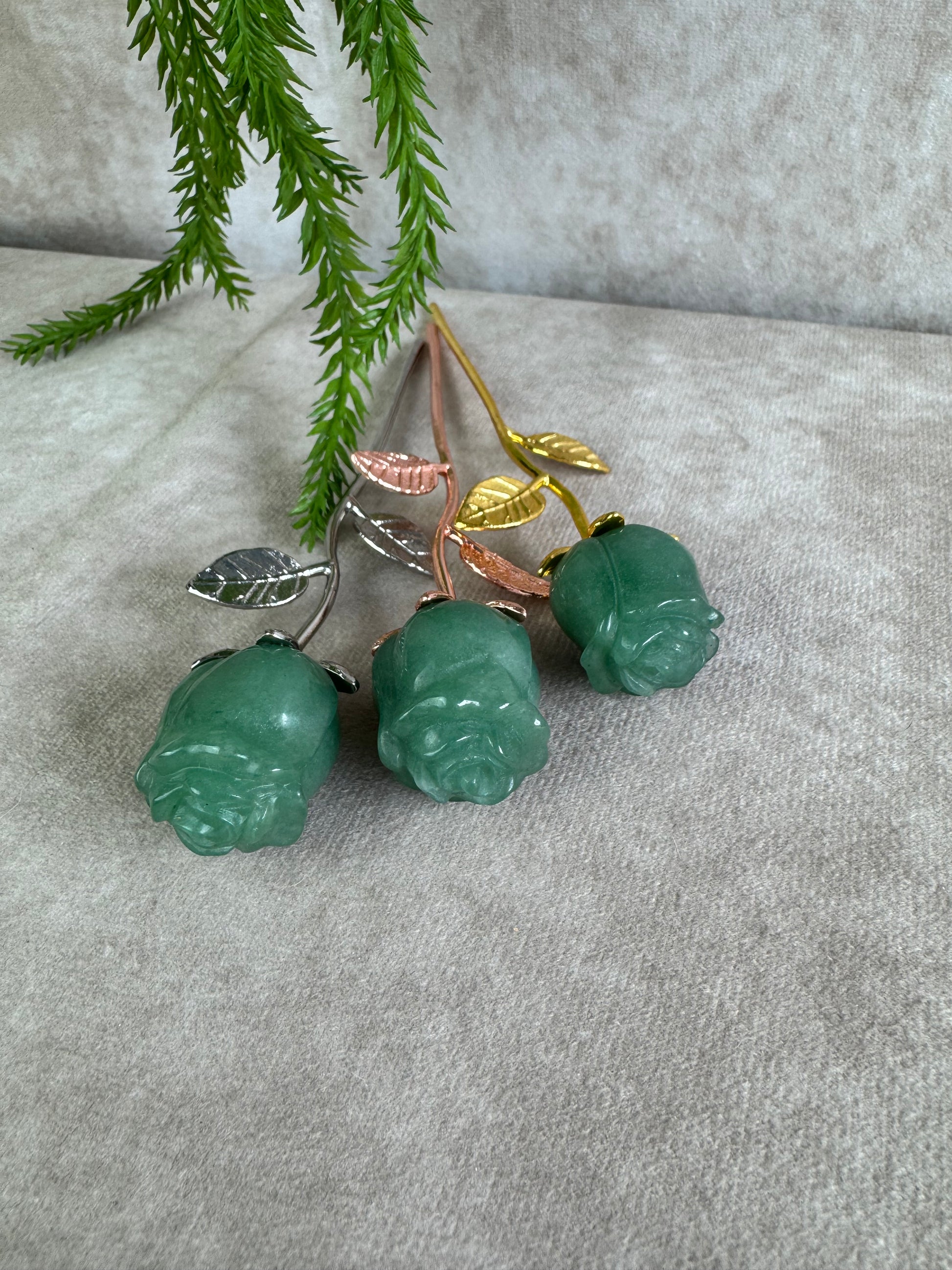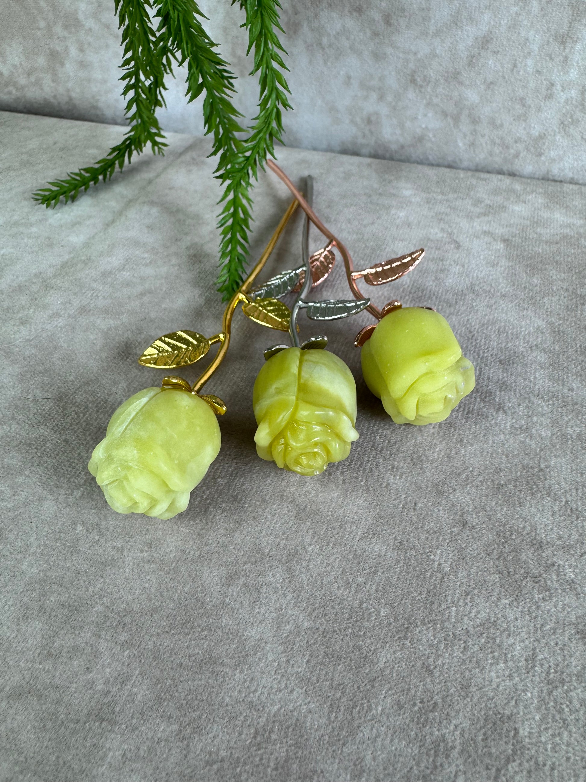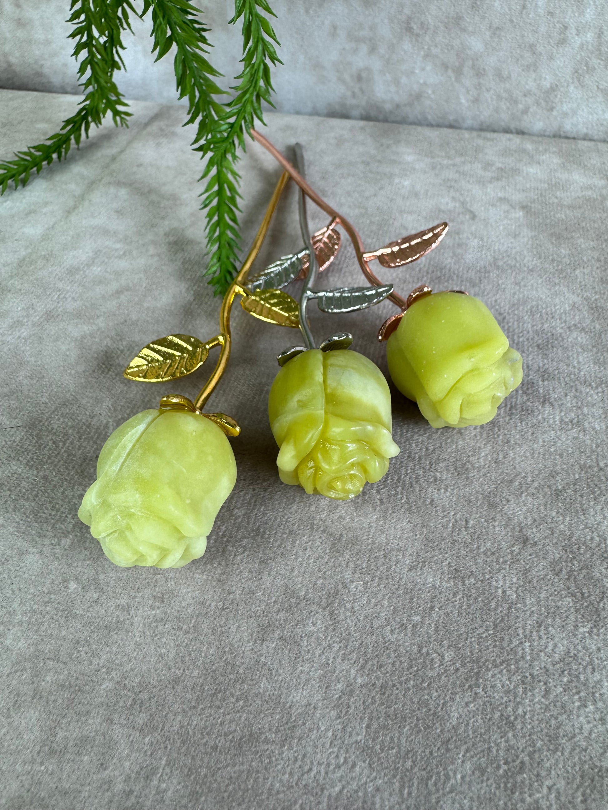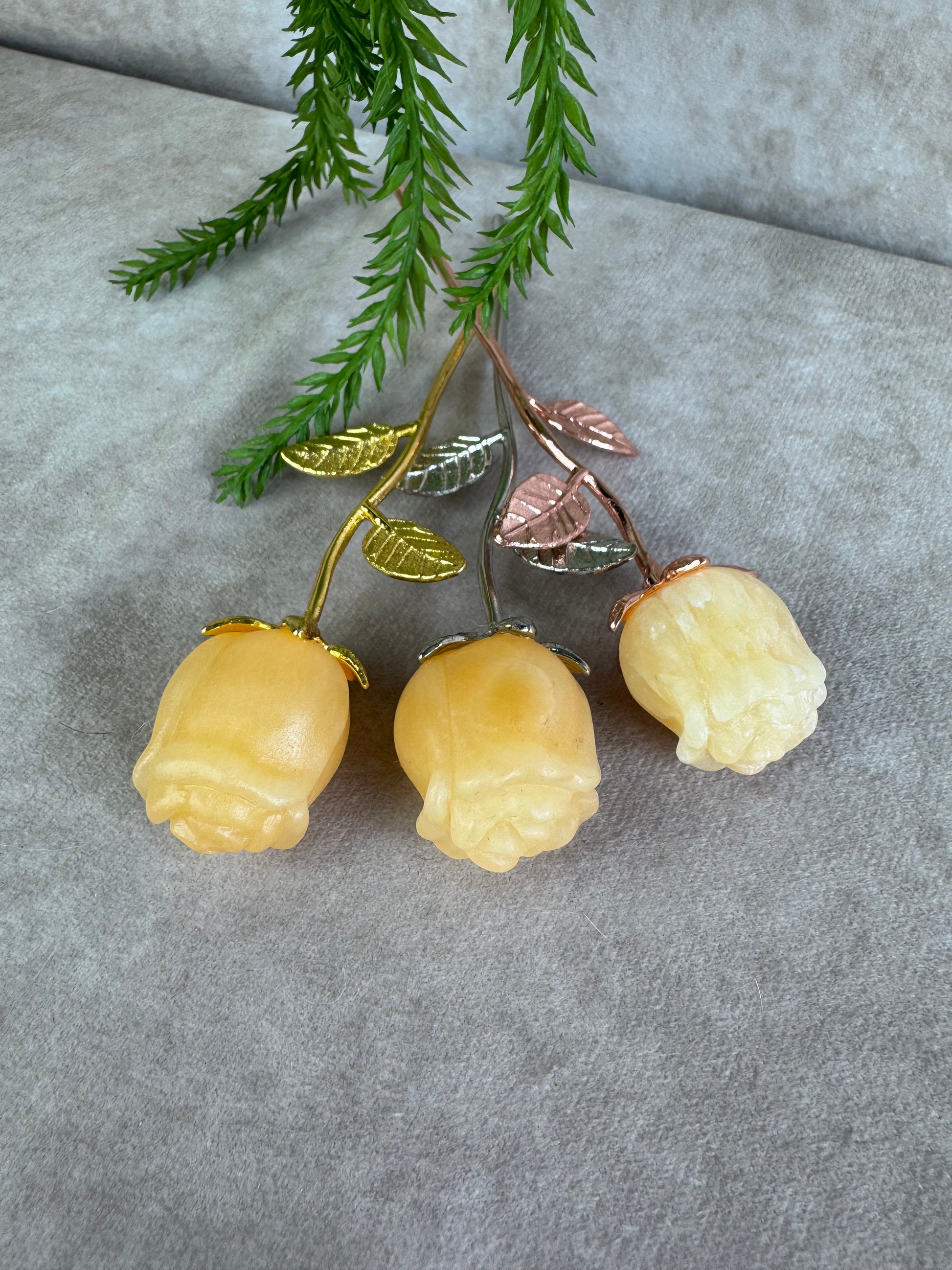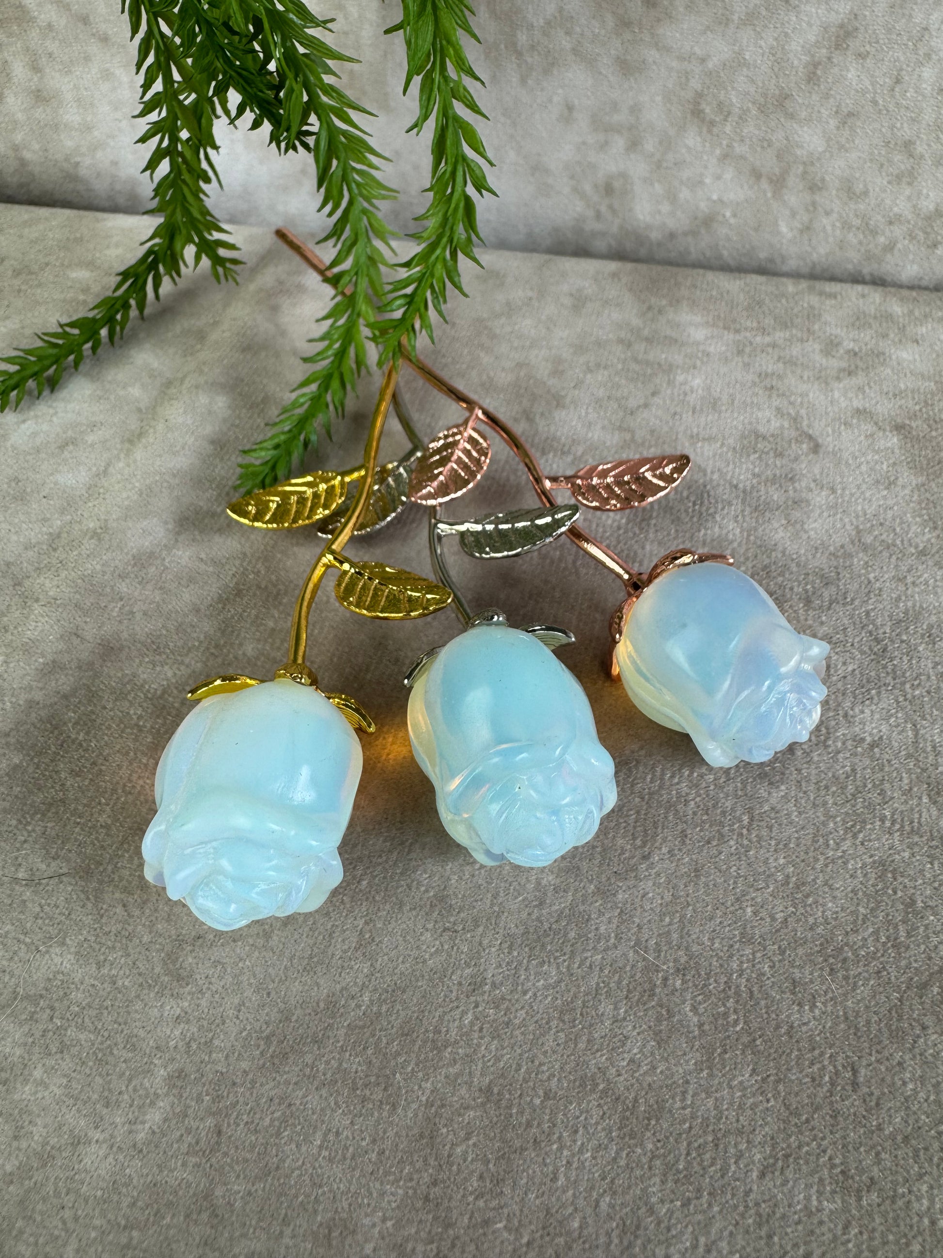 Deze prachtige edelstenen roosjes combineren de symboliek van de roos met de kracht van kristallen. Elke roos is met zorg geslepen uit een echte edelsteen en bevestigd op een verfijnde metalen steel in jouw keuze: goud, roségoud of zilver. Het resultaat is een tijdloos, elegant en energetisch waardevol decoratiestuk.