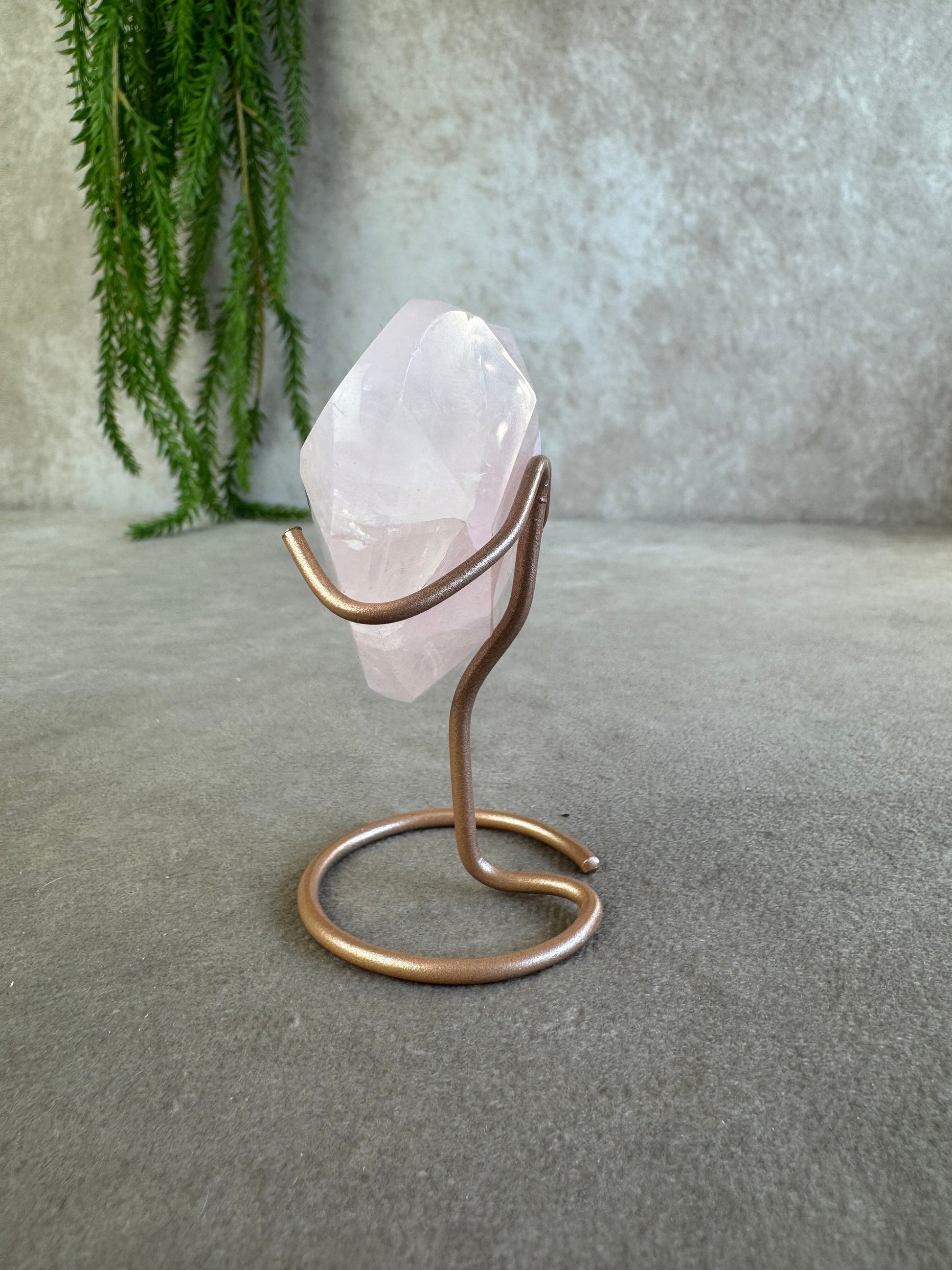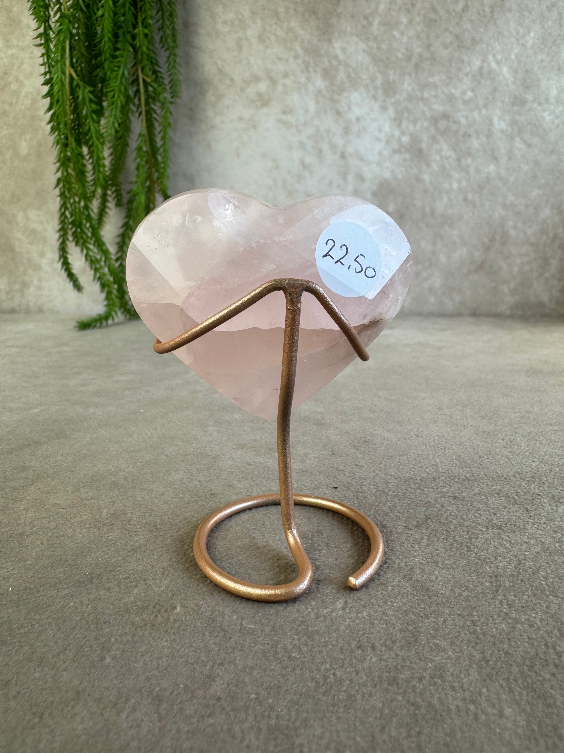 Dit lieve hartje van rozenkwarts staat op een elegante roze-gouden standaard en heeft inclusief standaard een hoogte van 7,7 cm. De zachte roze tinten geven het kristal een warme en liefdevolle uitstraling.