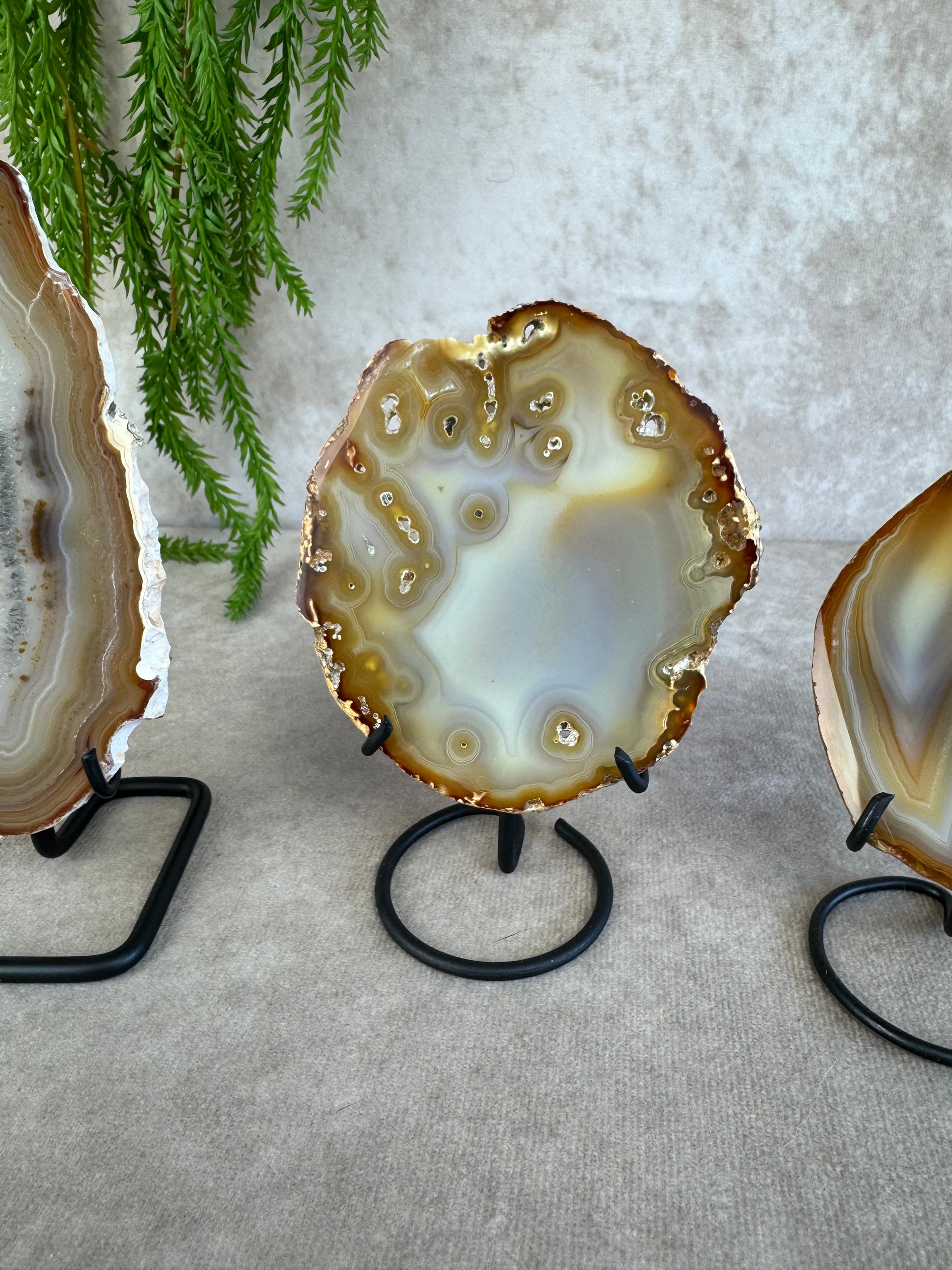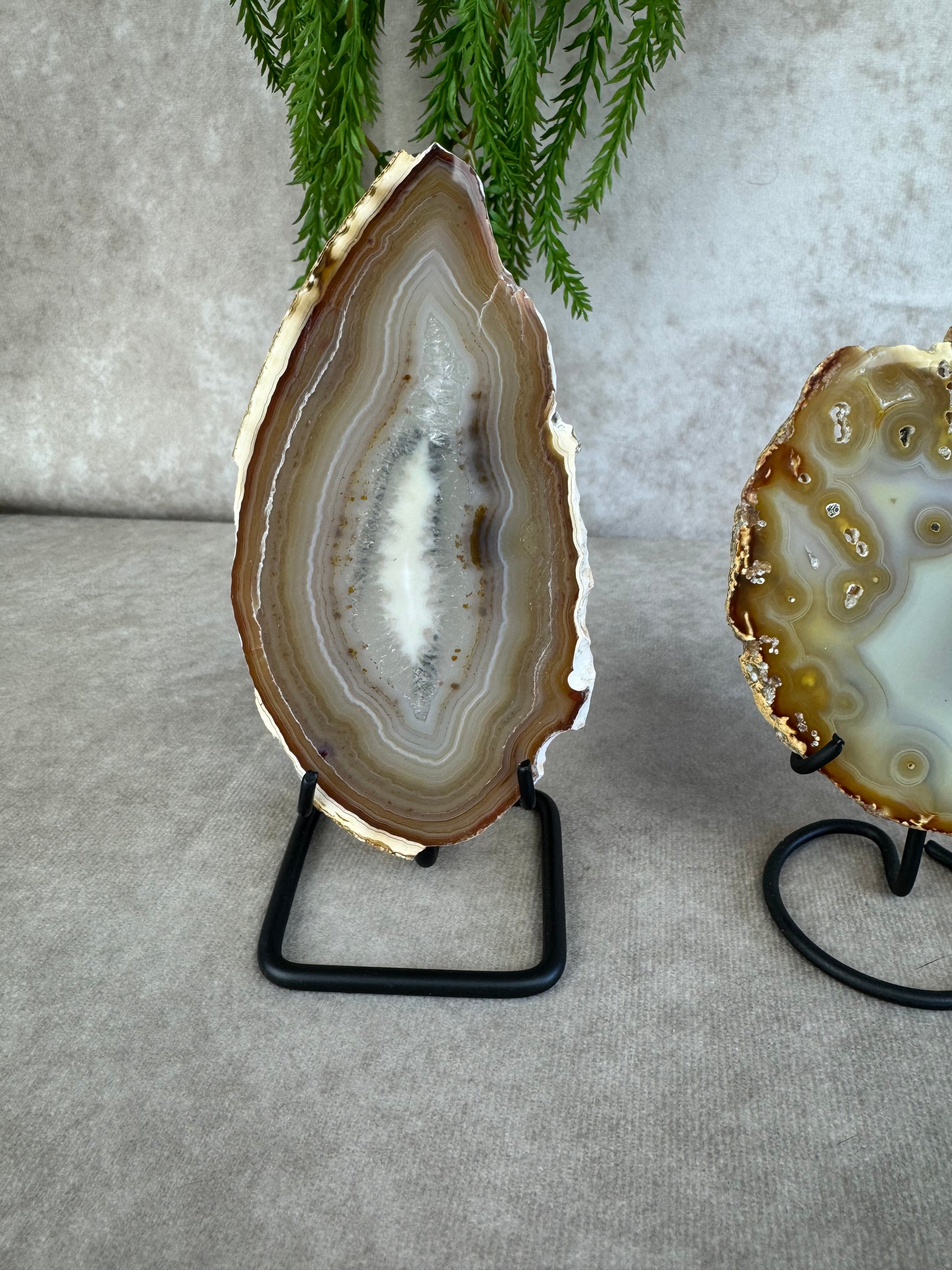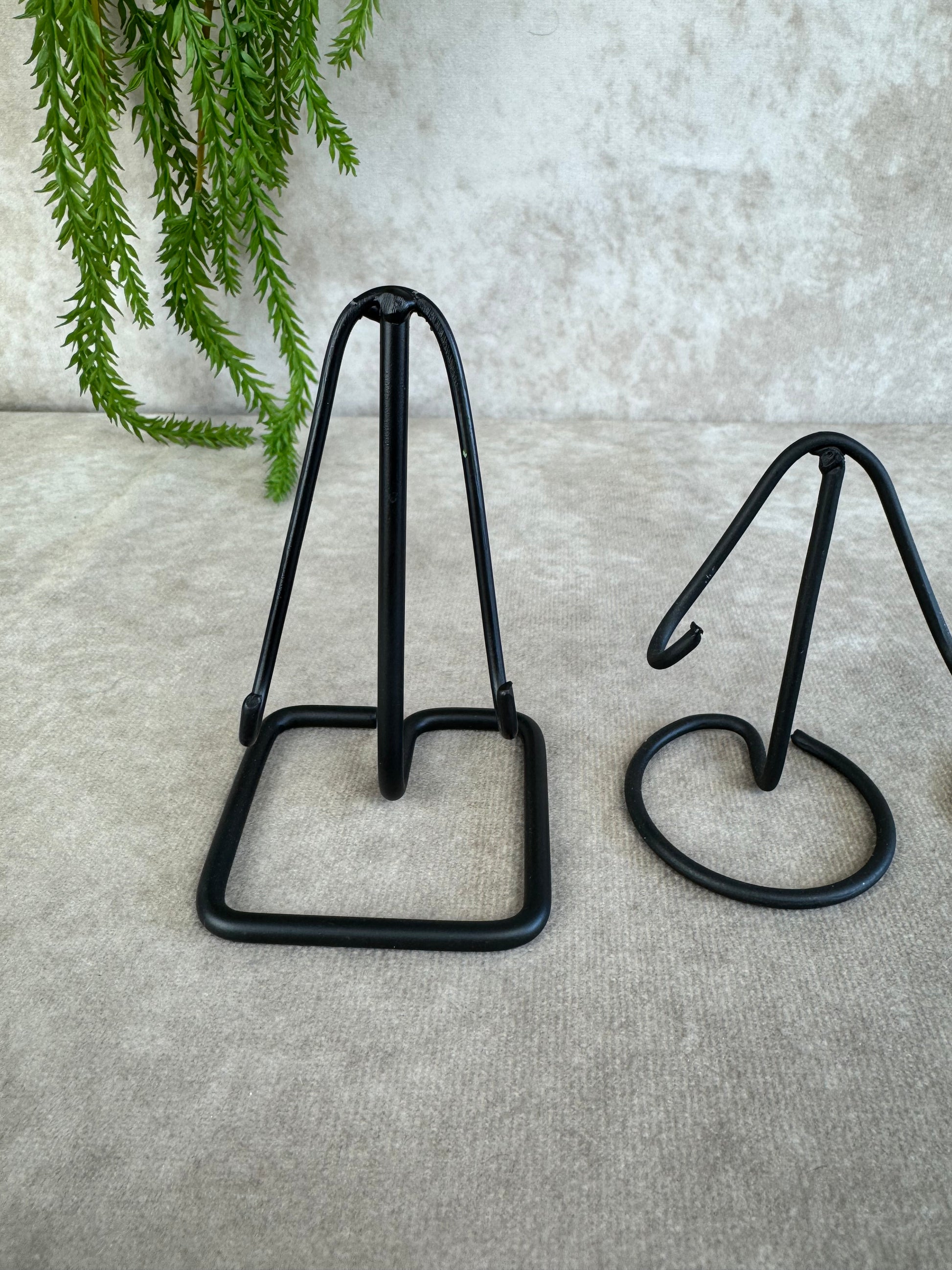Deze elegante zwarte standaarden zijn perfect voor het stijlvol presenteren van je edelsteenschijven of andere decoratieve stenen. Dankzij het stevige ontwerp bieden ze optimale stabiliteit en zorgen ze ervoor dat je schijven prachtig tot hun recht komen.