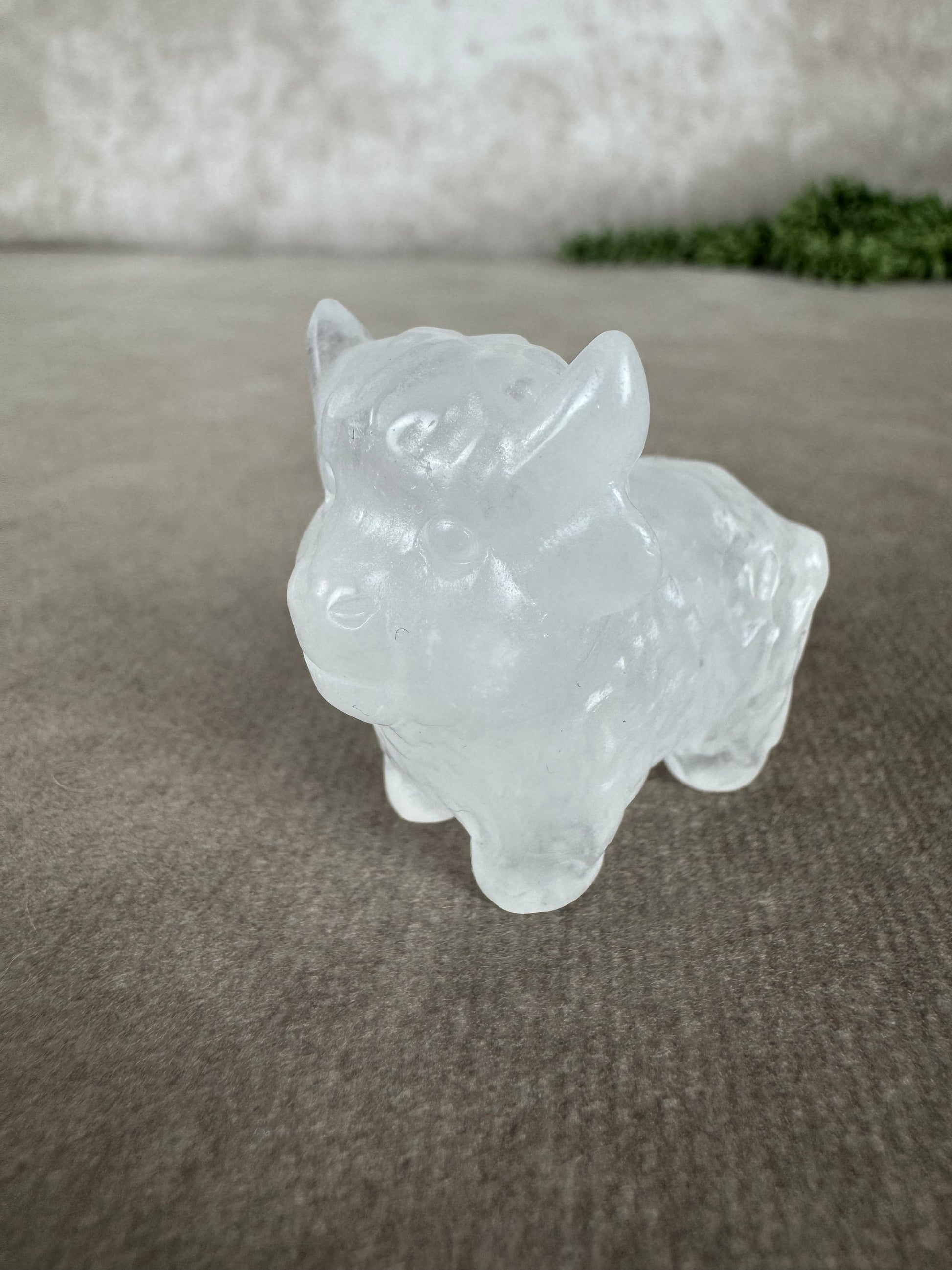 Deze prachtig gecarvde Schotse Hooglander van bergkristal straalt zuiverheid, kracht en helderheid uit. Verkrijgbaar in drie formaten – Small (3,5 cm), Medium (5 cm) en Large (7 cm) – is er voor elke ruimte of gelegenheid een perfect passend exemplaar.