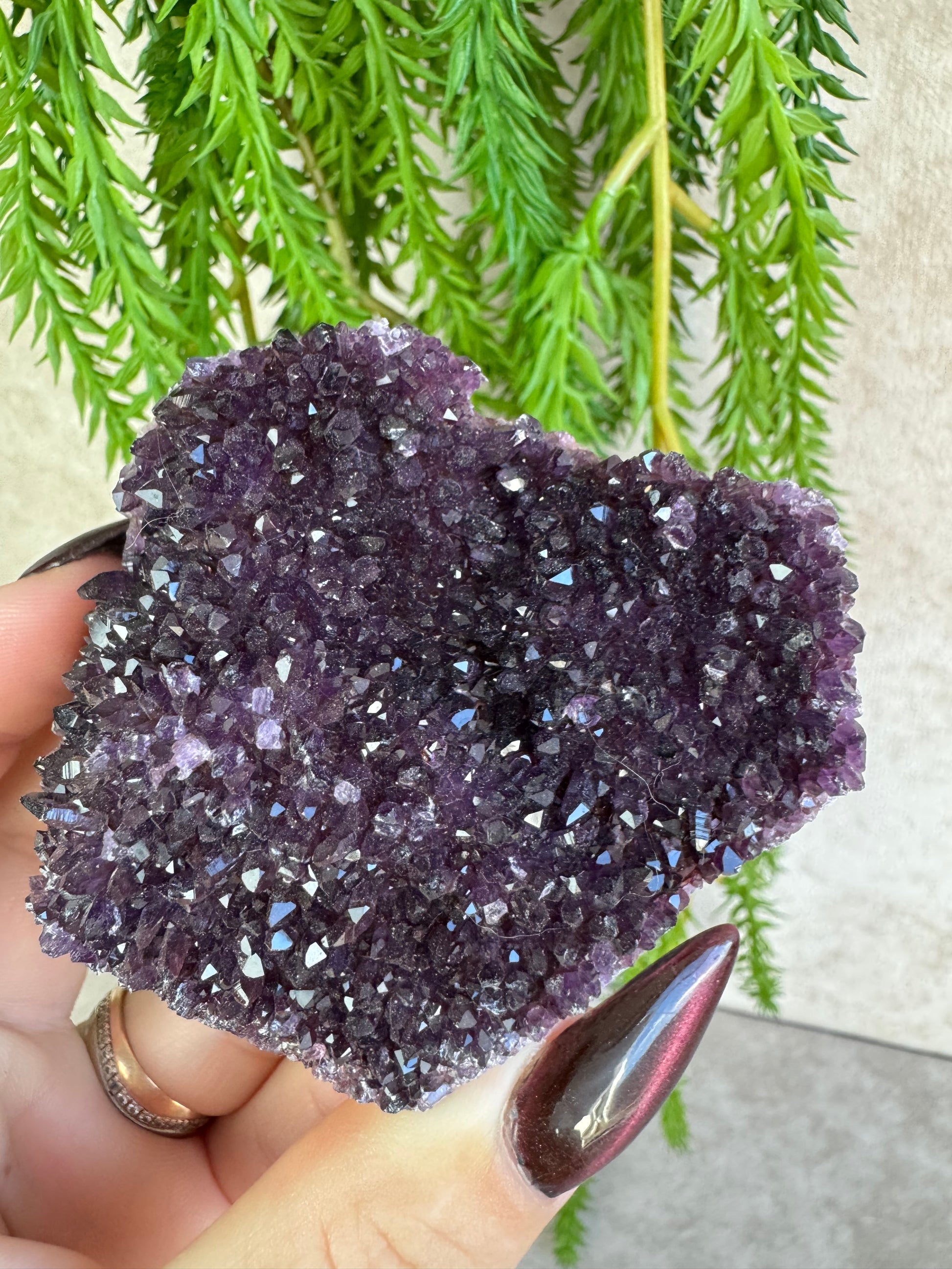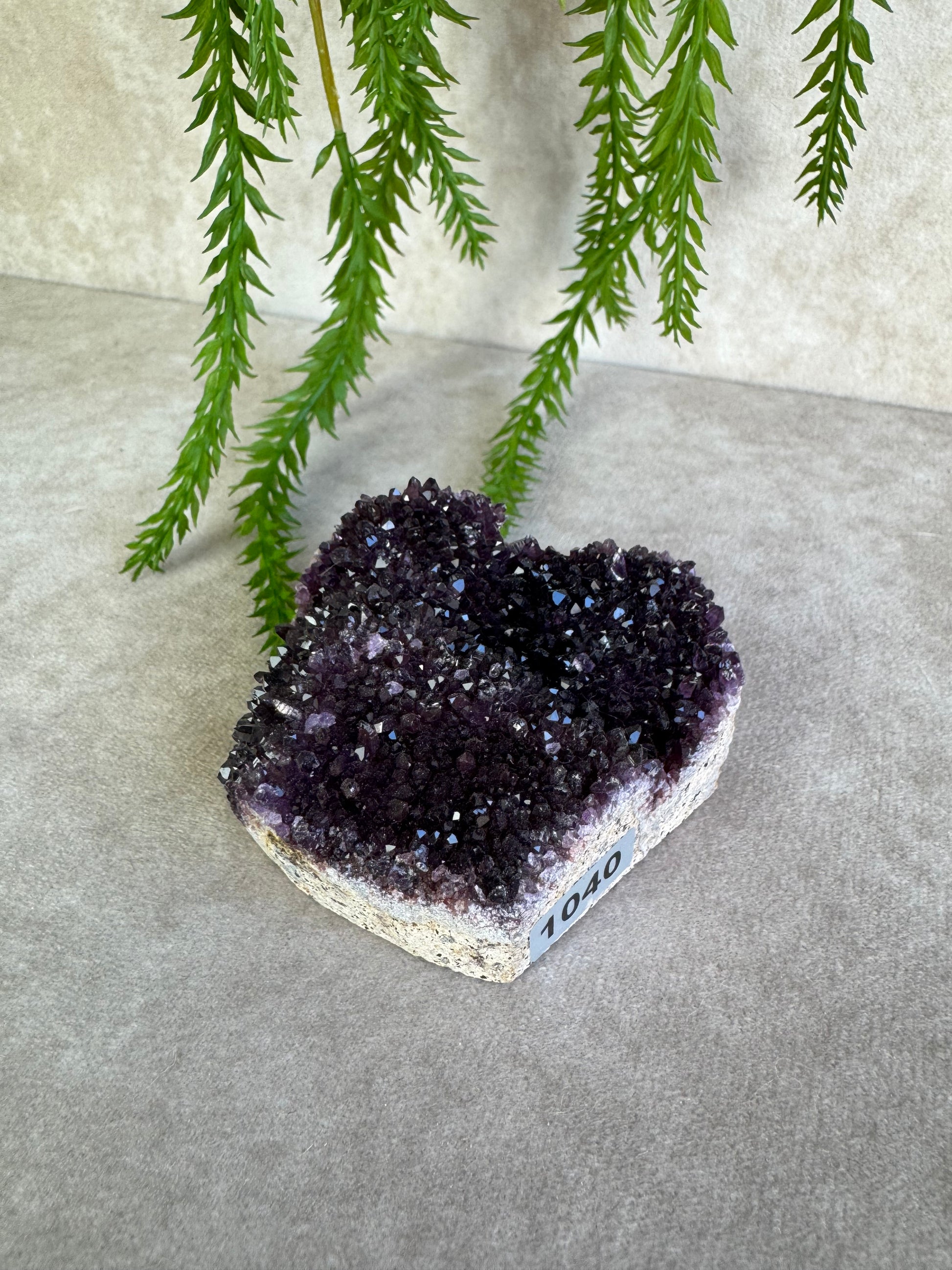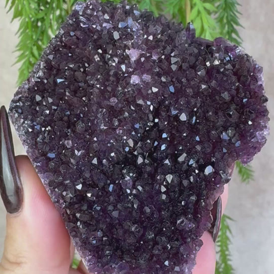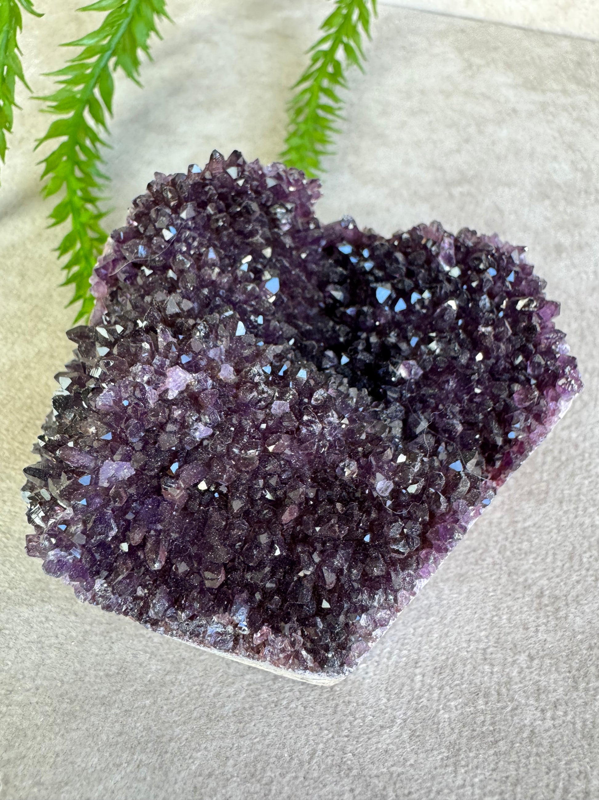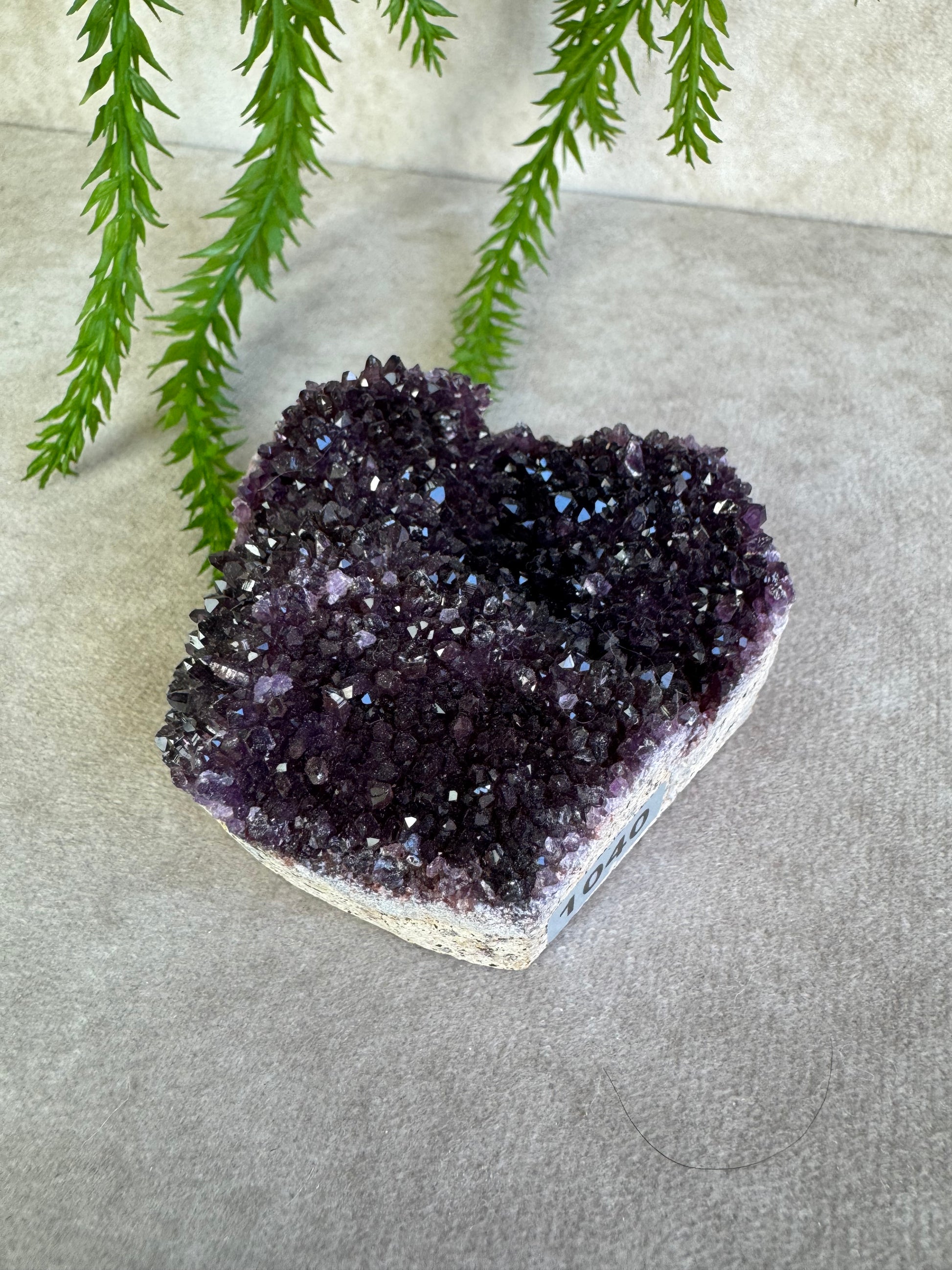Amethist staat bekend om zijn rustgevende en zuiverende werking. Het helpt bij ontspanning, helderheid en balans, en brengt een kalme sfeer in elke ruimte.