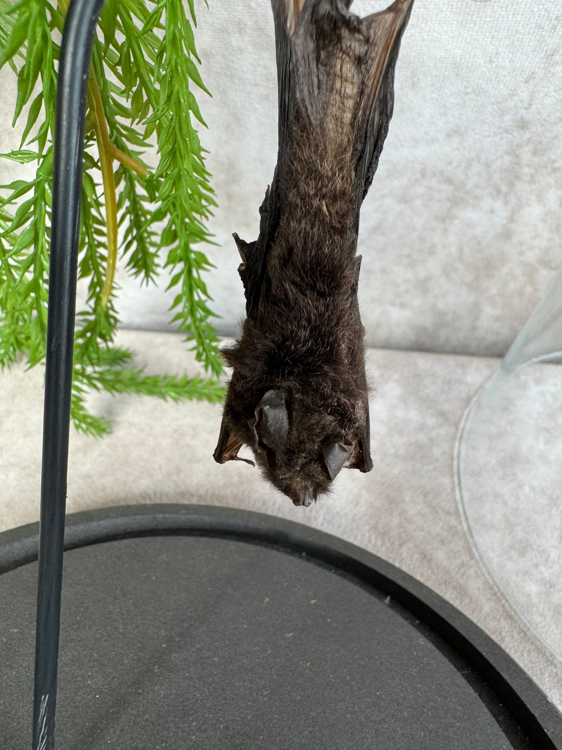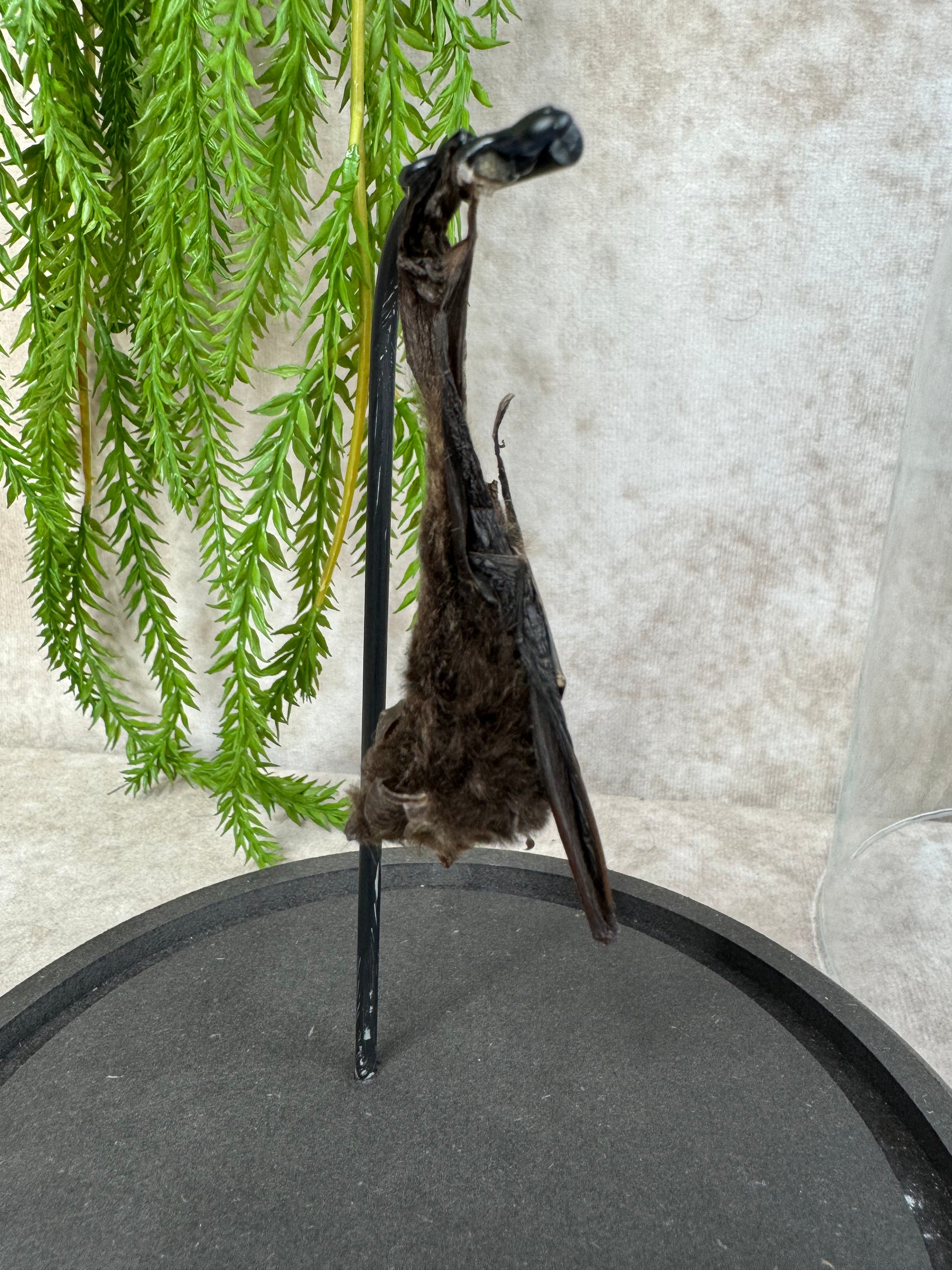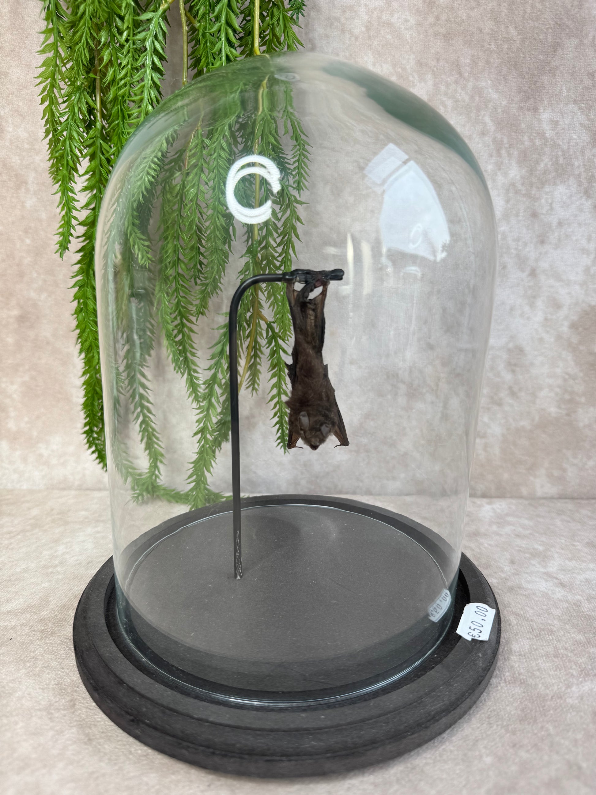 Deze natuurlijke vleermuis in een stijlvolle glazen stolp is 23 cm hoog en voegt een uniek decoratief element toe aan elke ruimte.