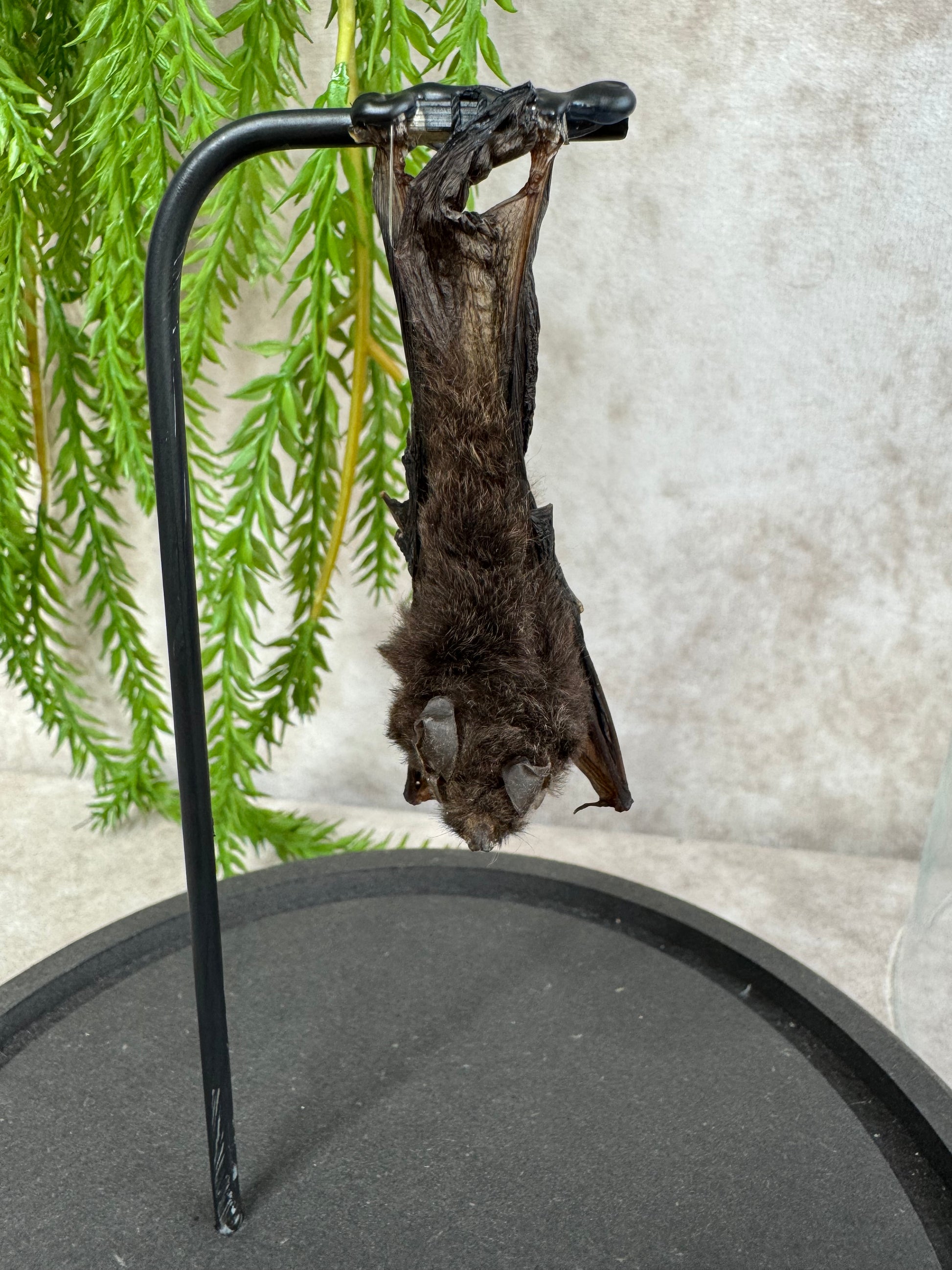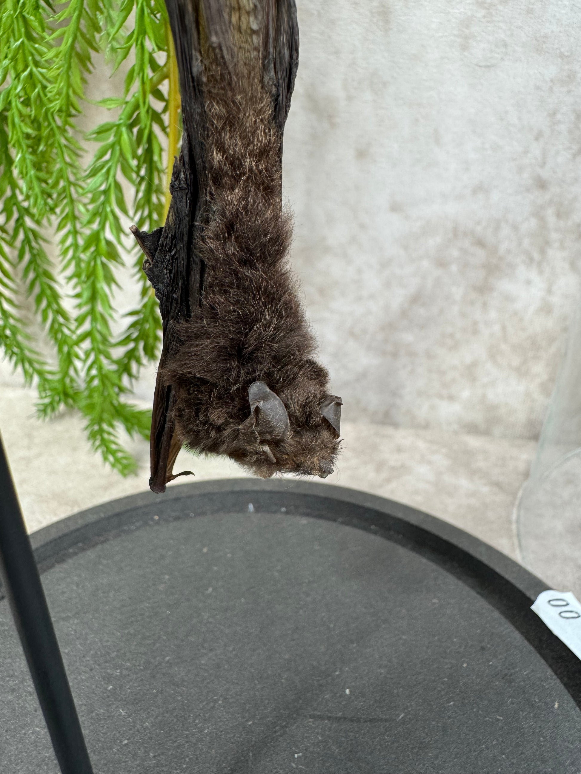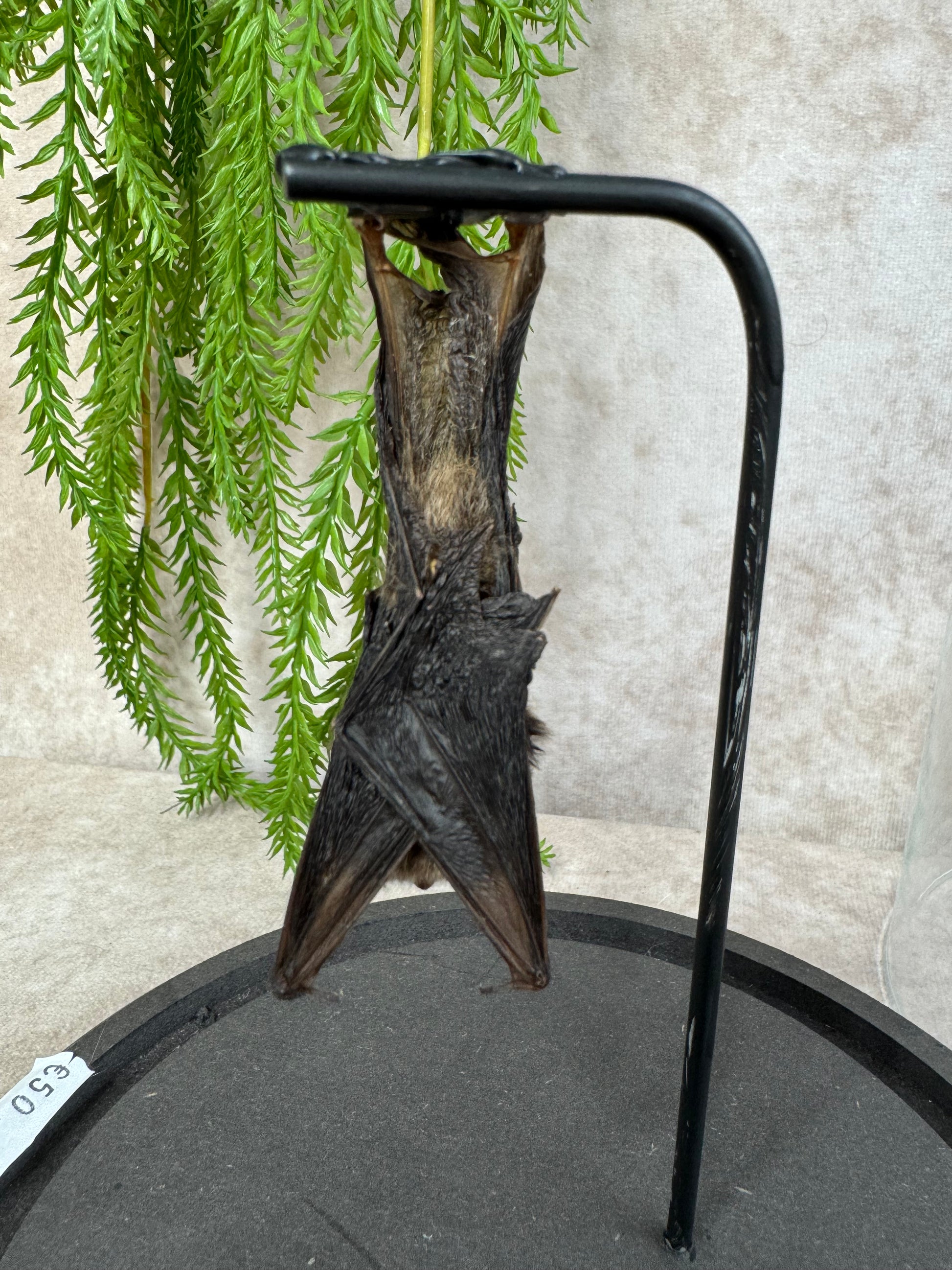 Deze natuurlijke vleermuis in een stijlvolle glazen stolp is 23 cm hoog en voegt een uniek decoratief element toe aan elke ruimte.