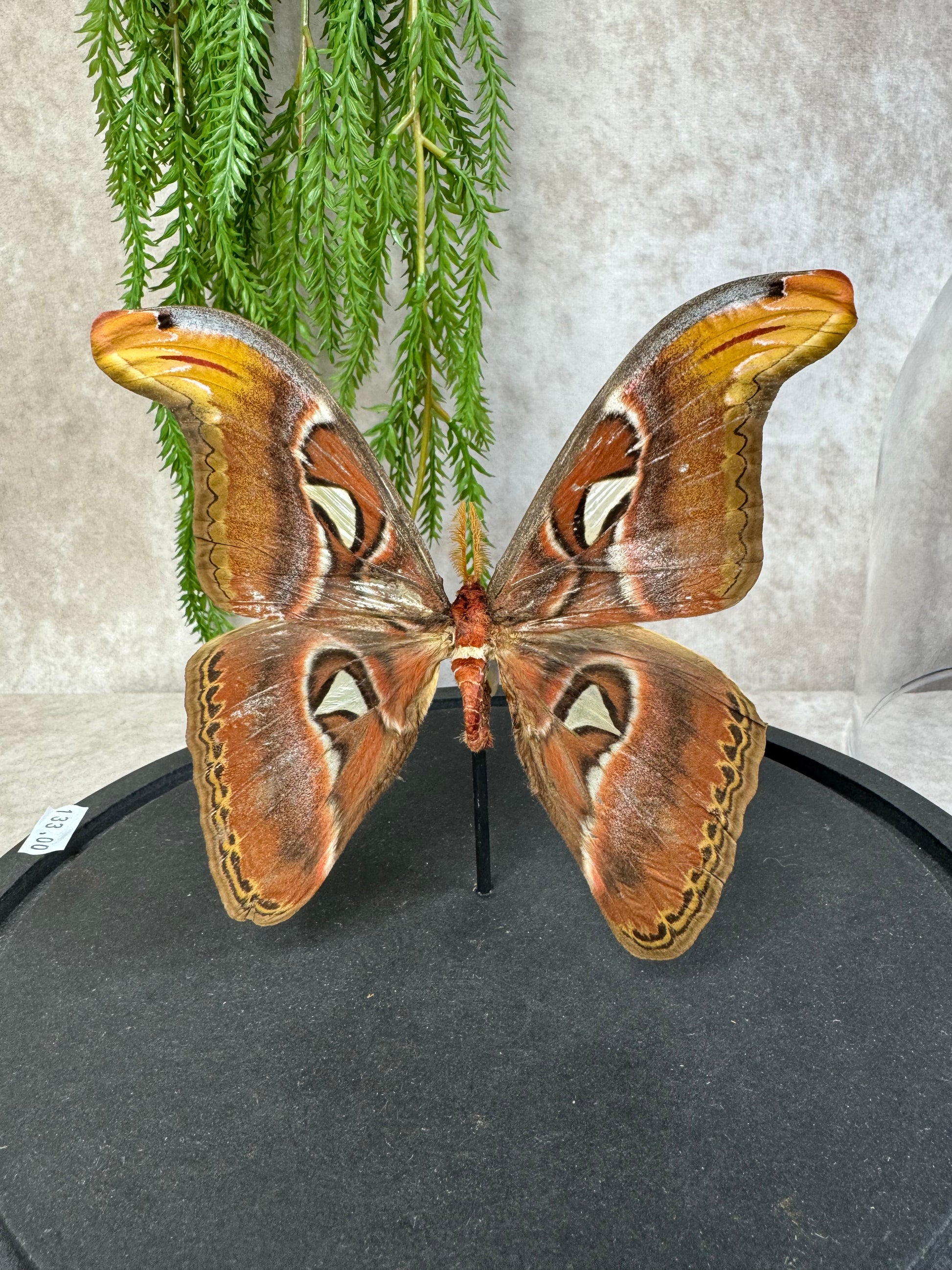 Deze natuurlijke vlinder in een stijlvolle glazen stolp is 24 cm hoog en voegt een uniek decoratief element toe aan elke ruimte.