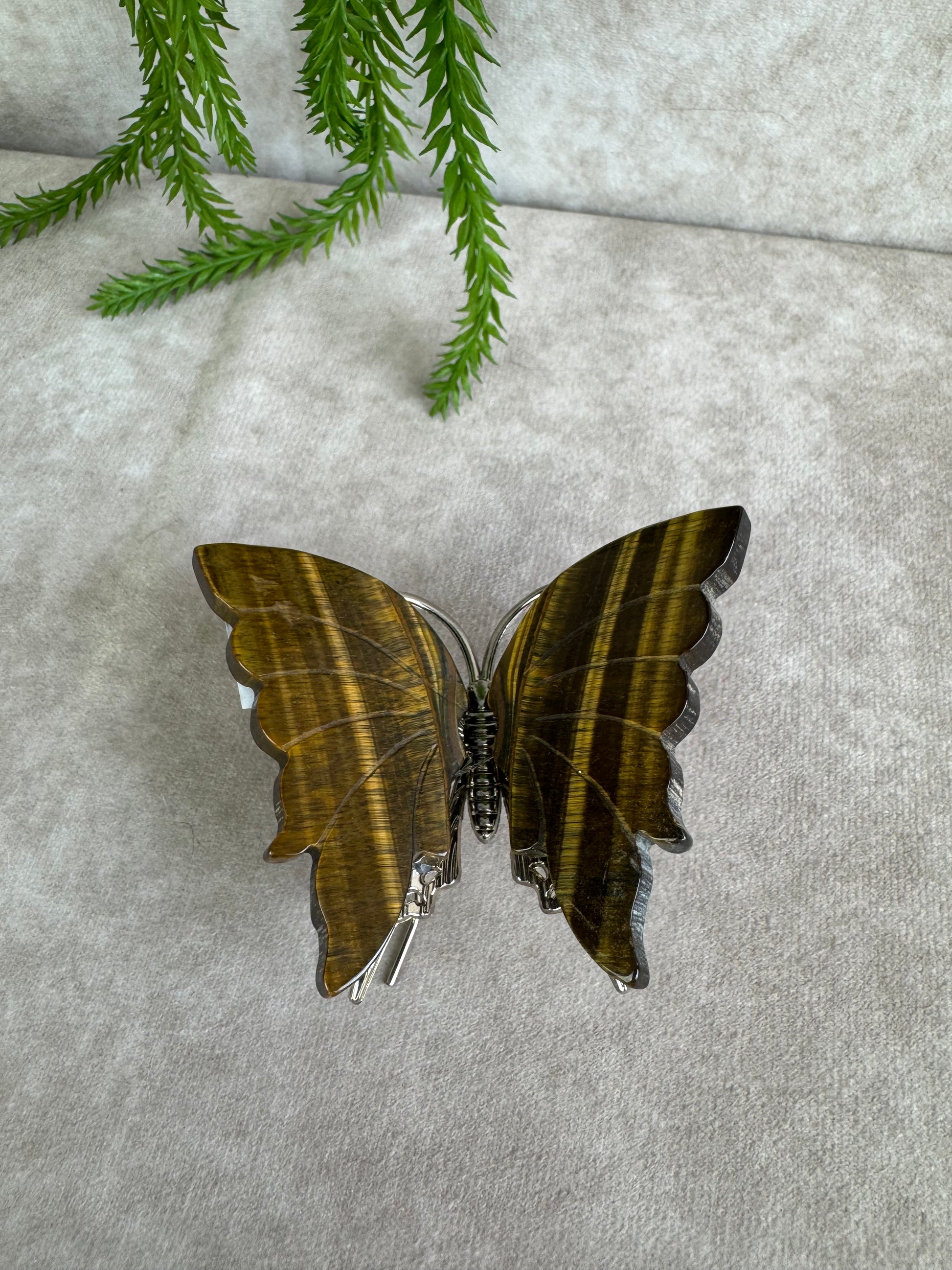 Tijgeroog stimuleert zelfvertrouwen, moed en focus. In de vorm van een vlinder het symbool van transformatie, vrijheid en persoonlijke groei versterkt deze steen zijn werking en betekenis.